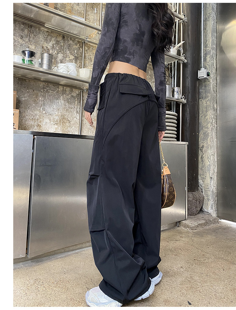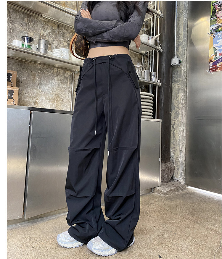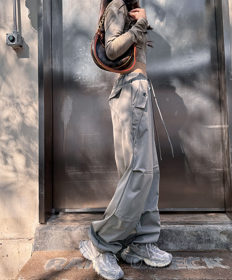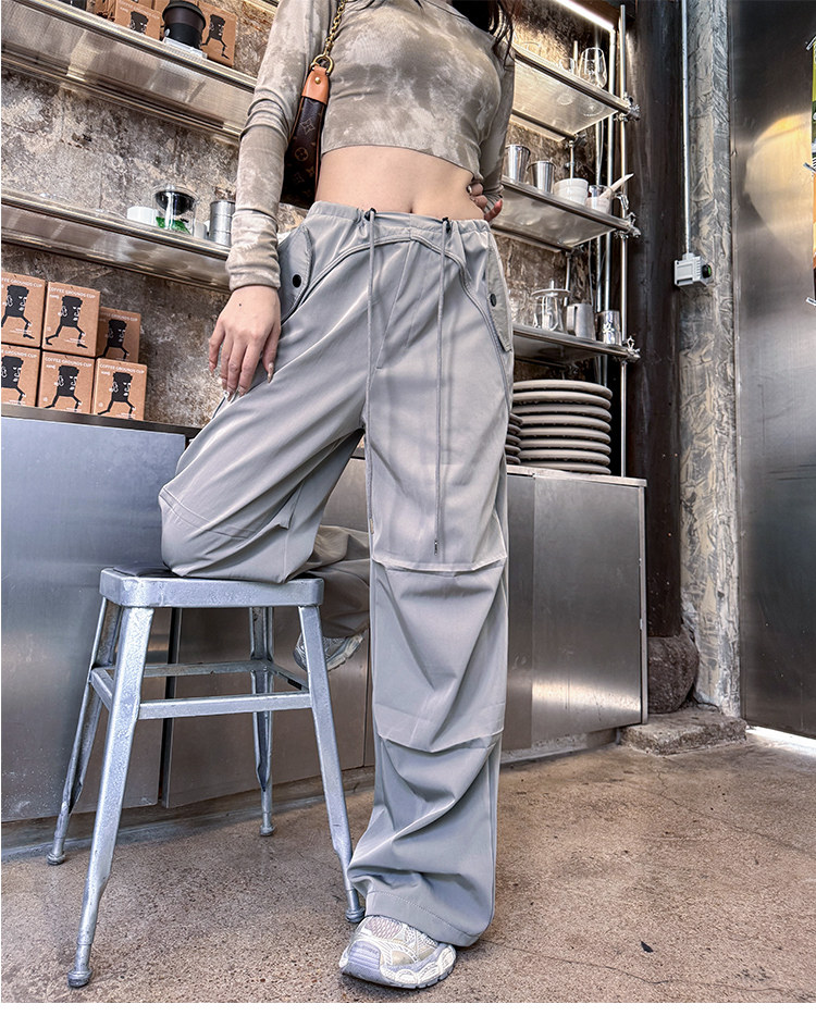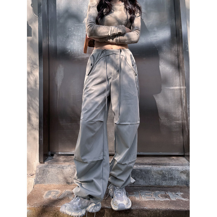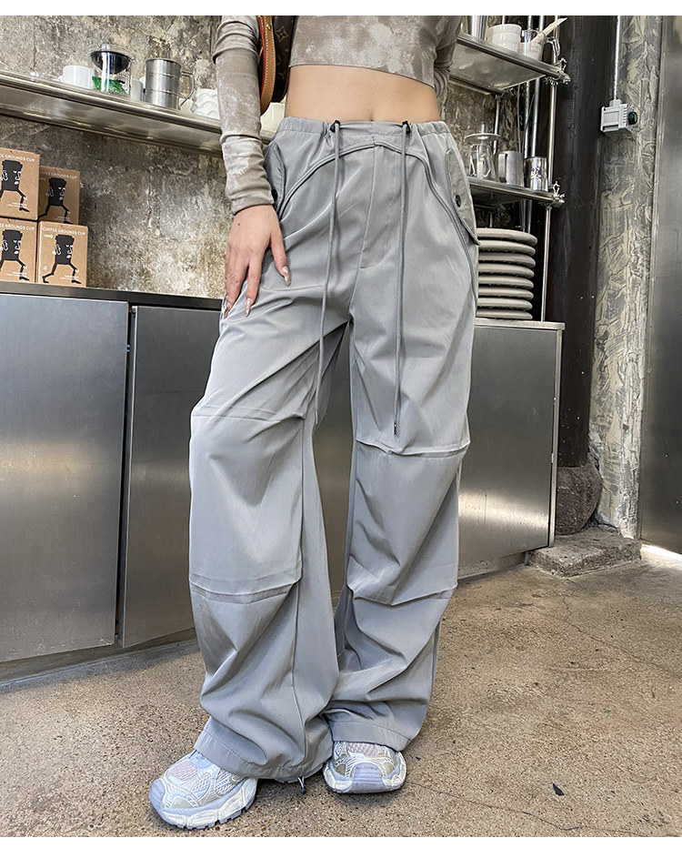 美式復古工裝褲女春秋2025新款濶腿褲寬鬆休閒降落傘兵直筒褲子