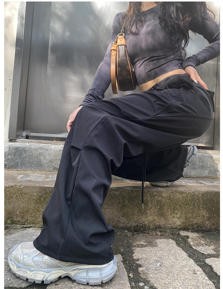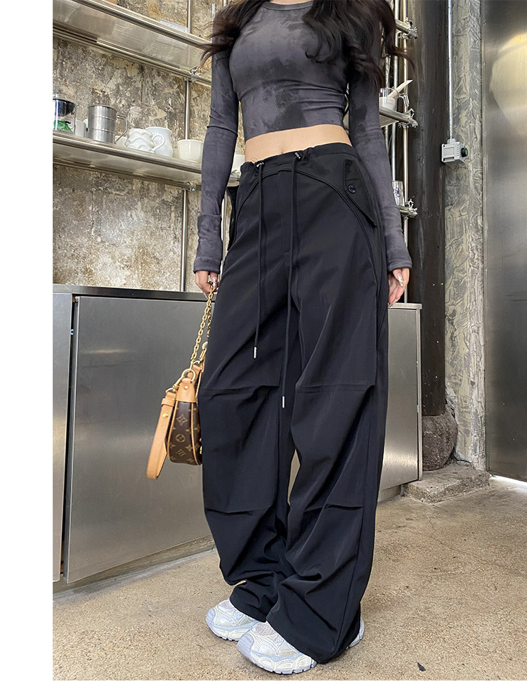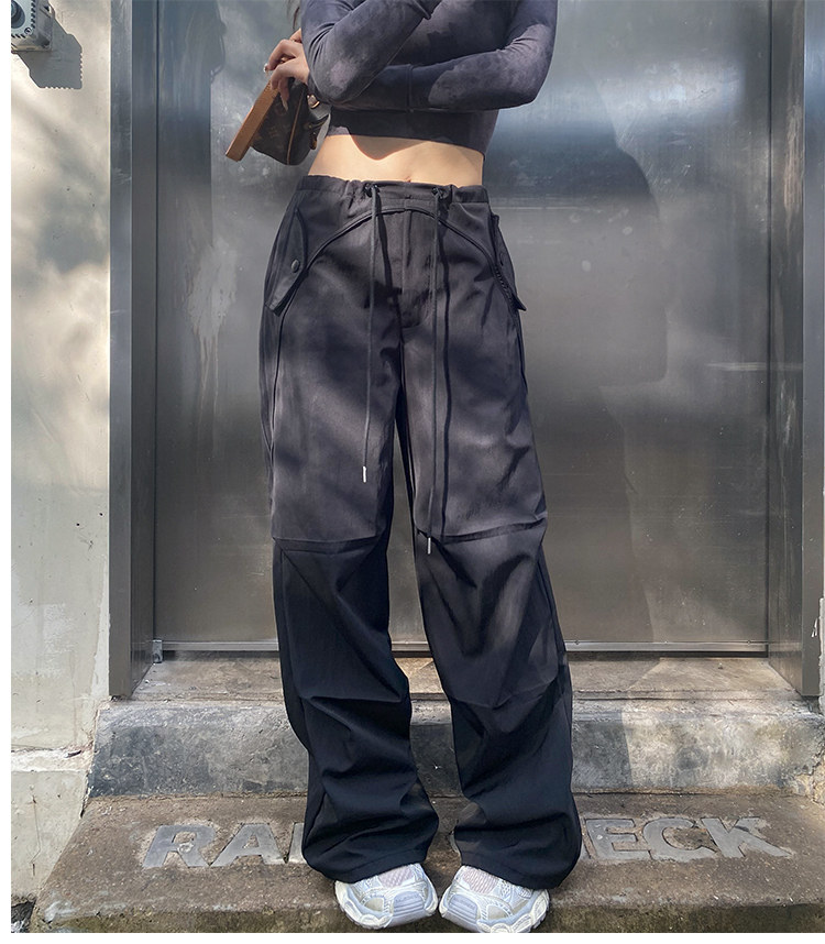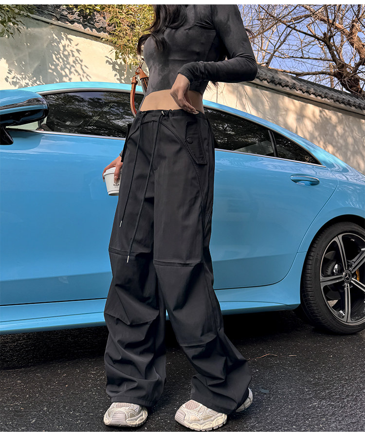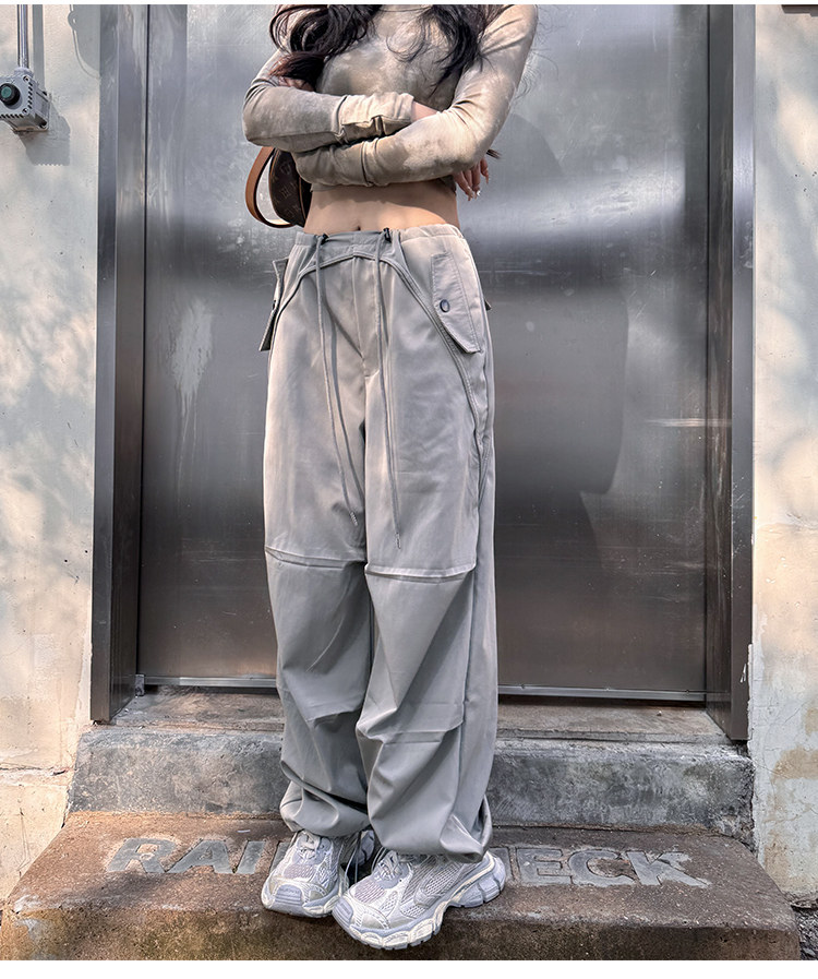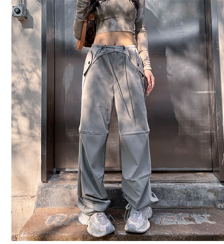 美式復古工裝褲女春秋2025新款濶腿褲寬鬆休閒降落傘兵直筒褲子