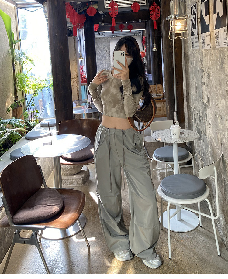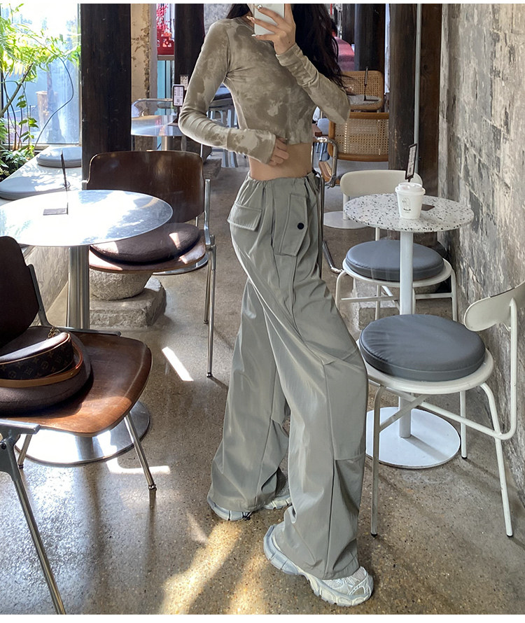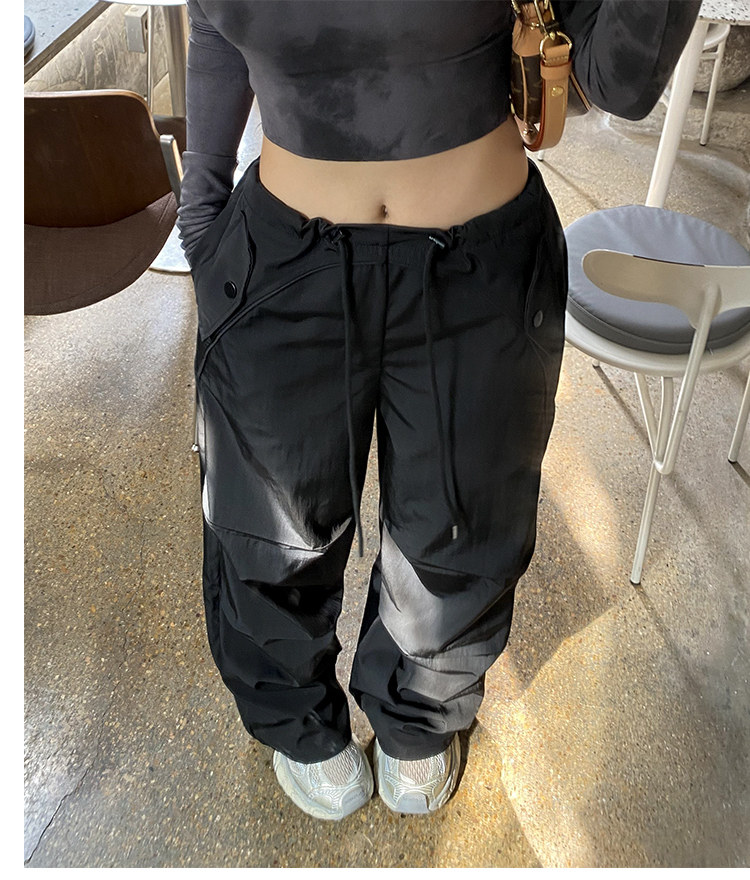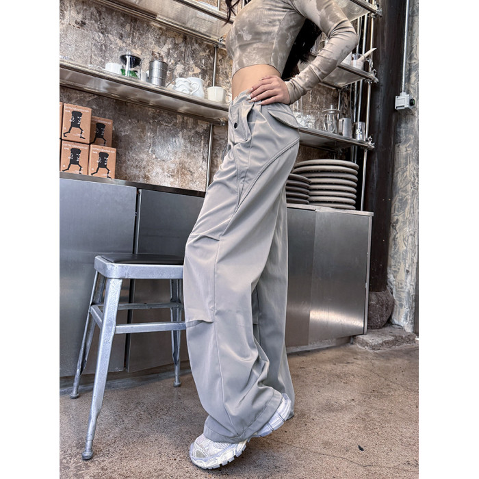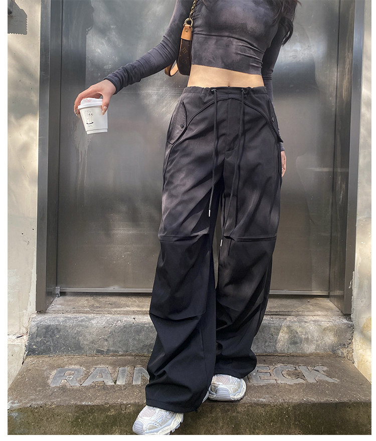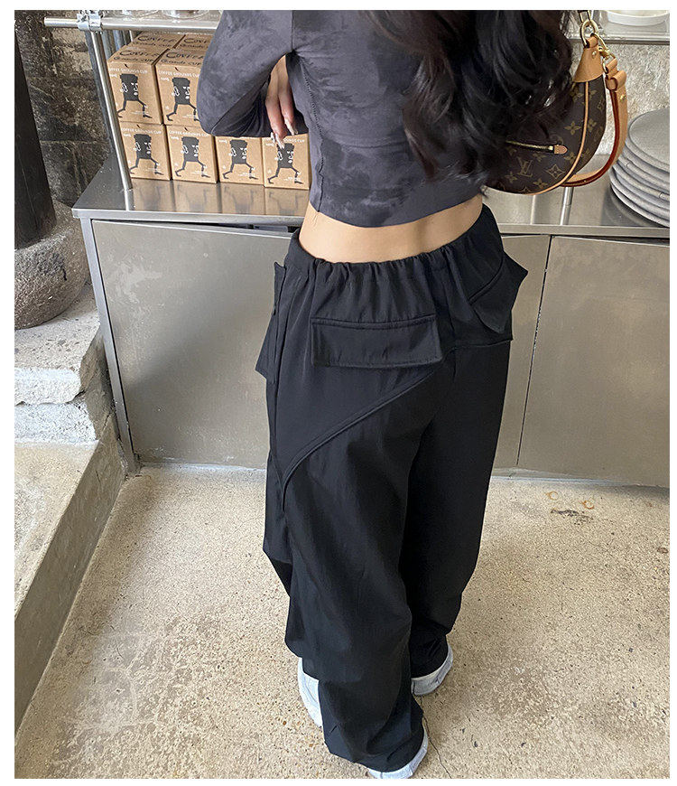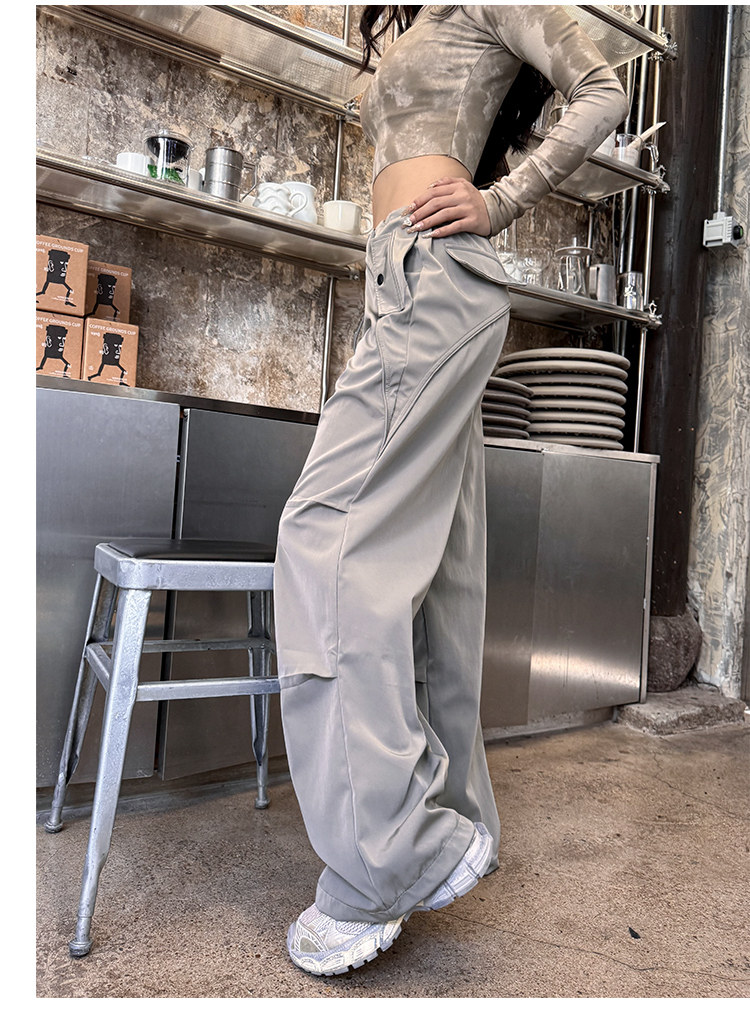美式復古工裝褲女春秋2025新款濶腿褲寬鬆休閒降落傘兵直筒褲子
