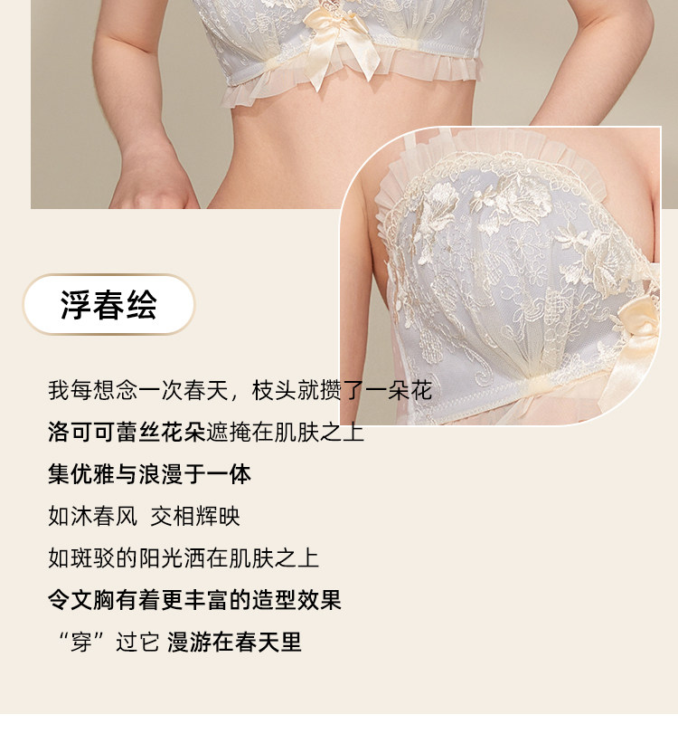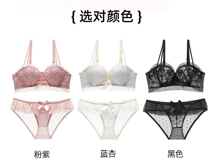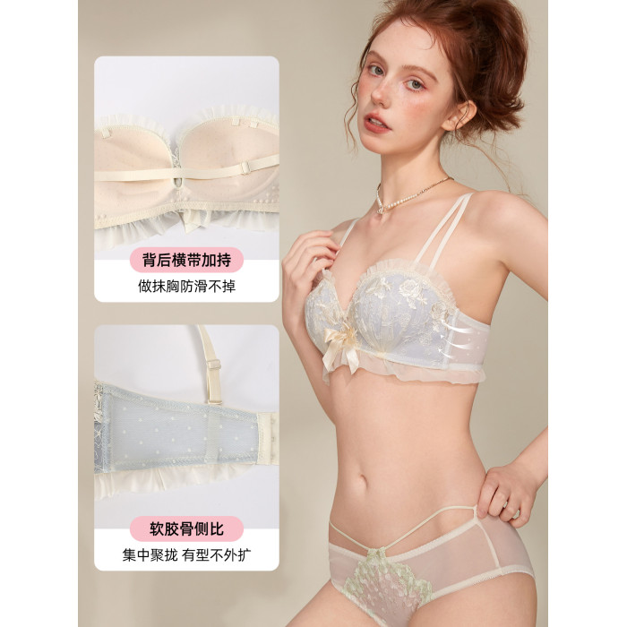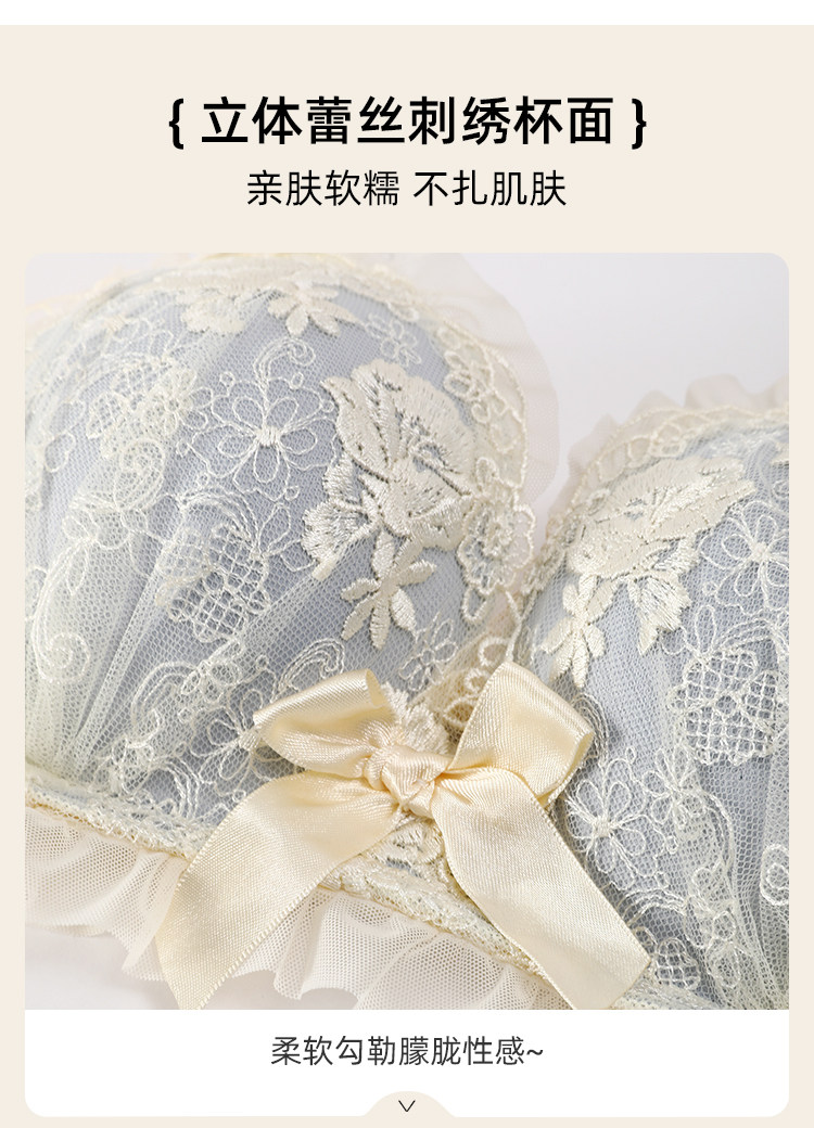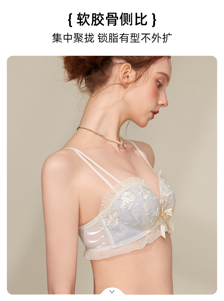 六隻兔子蕾絲內衣女小胸聚攏顯大防外擴側收副乳無鋼圈文胸罩套裝