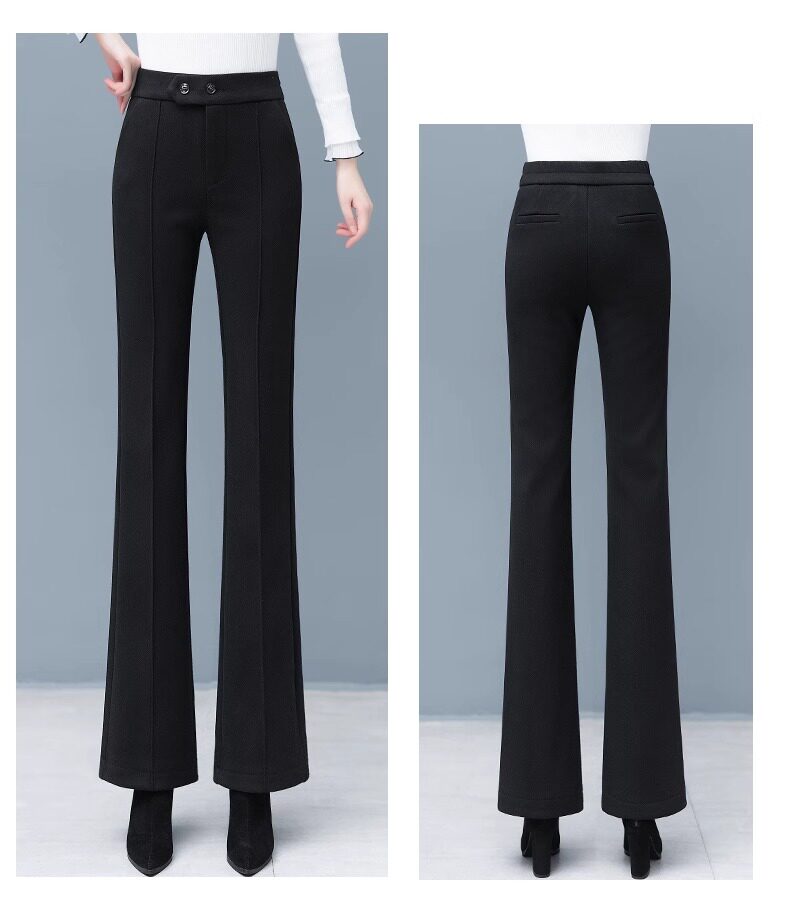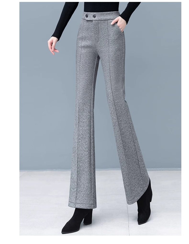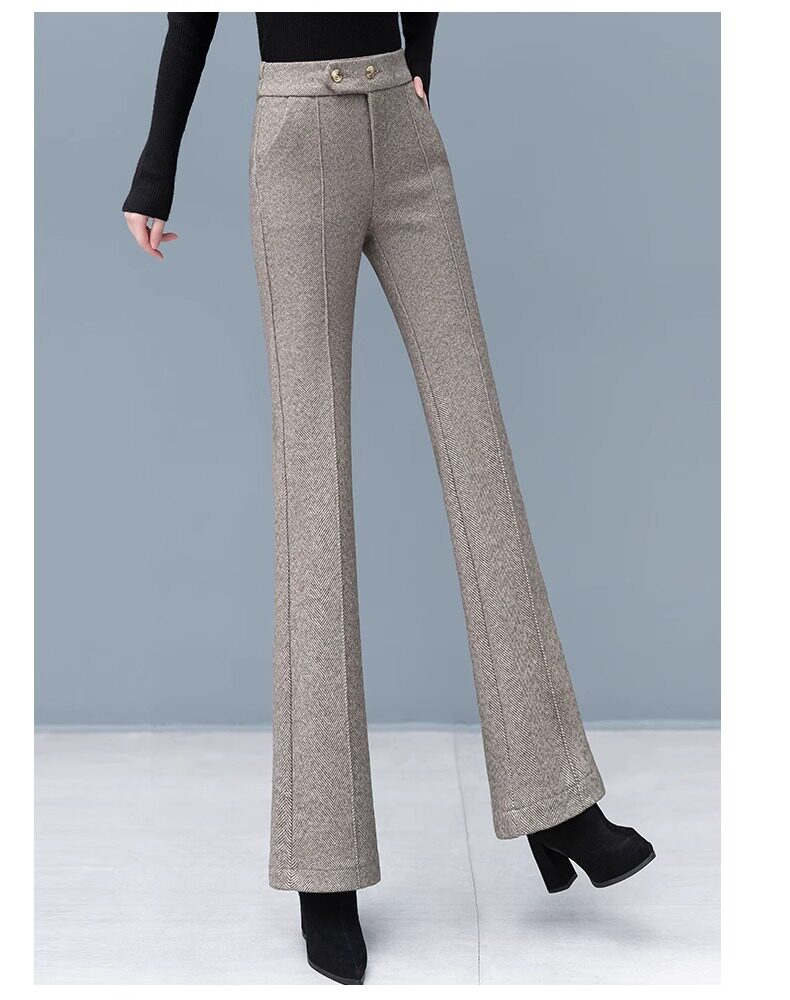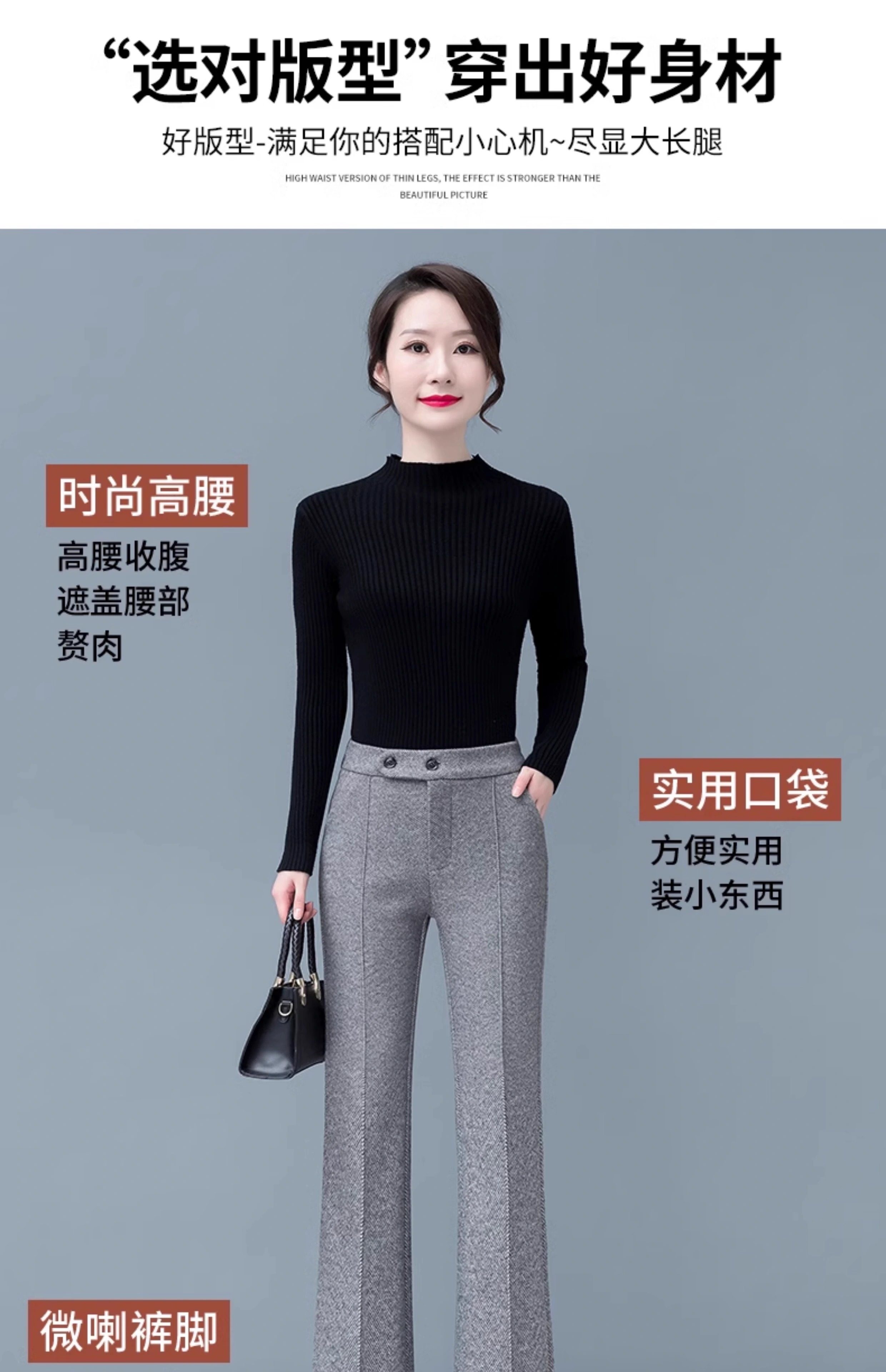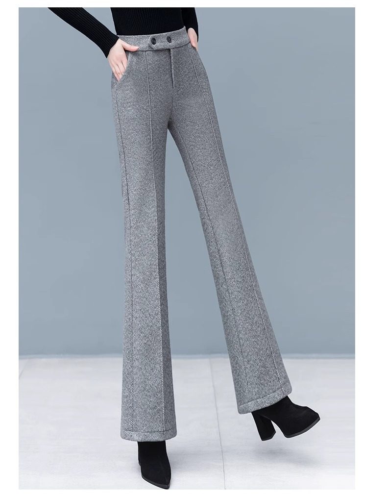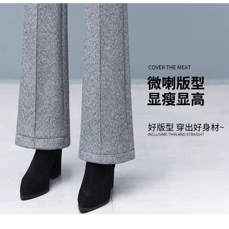 毛呢喇叭褲女秋冬2025新款高腰毛呢褲子加絨加厚保暖休閒微喇褲子