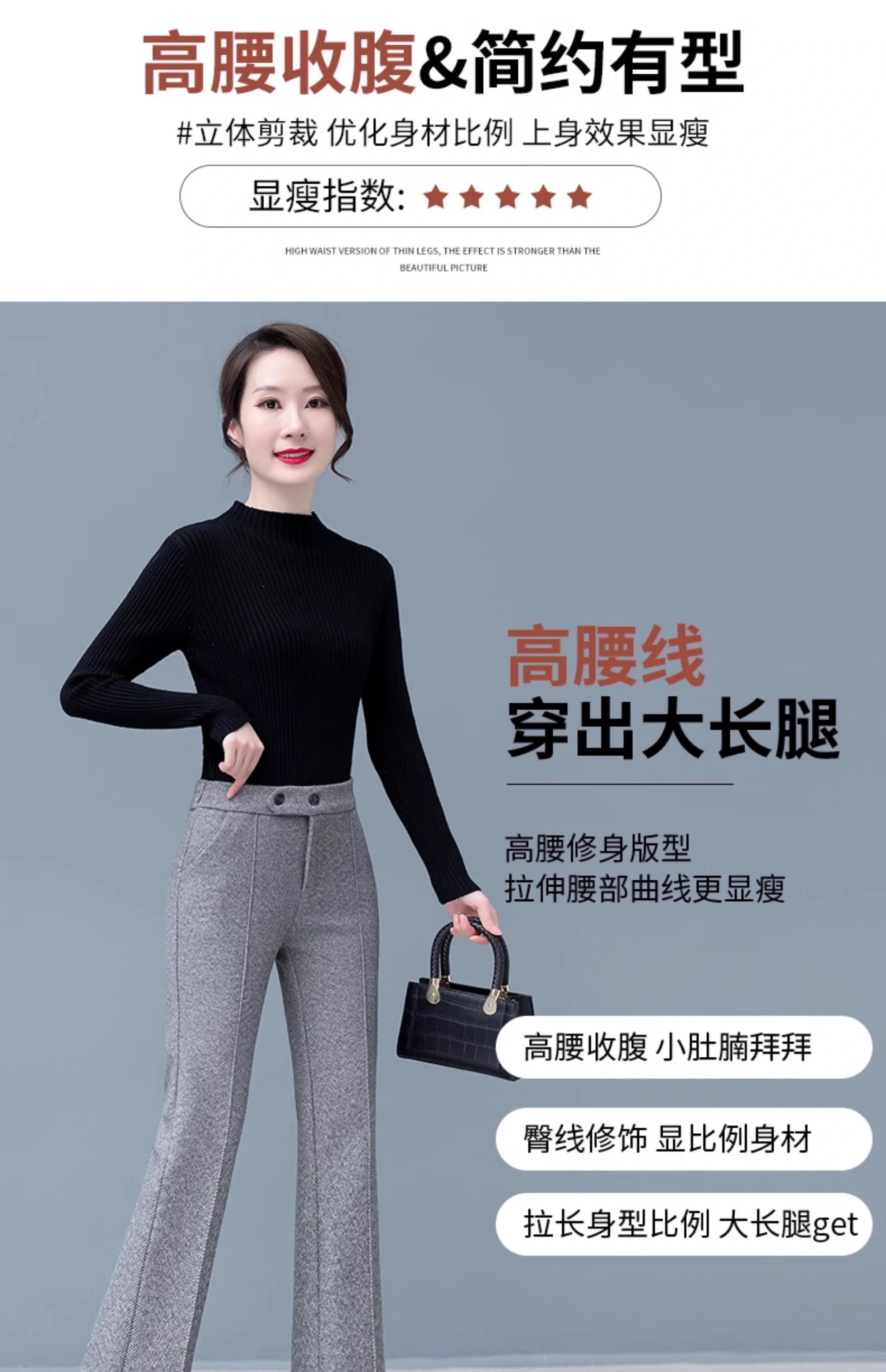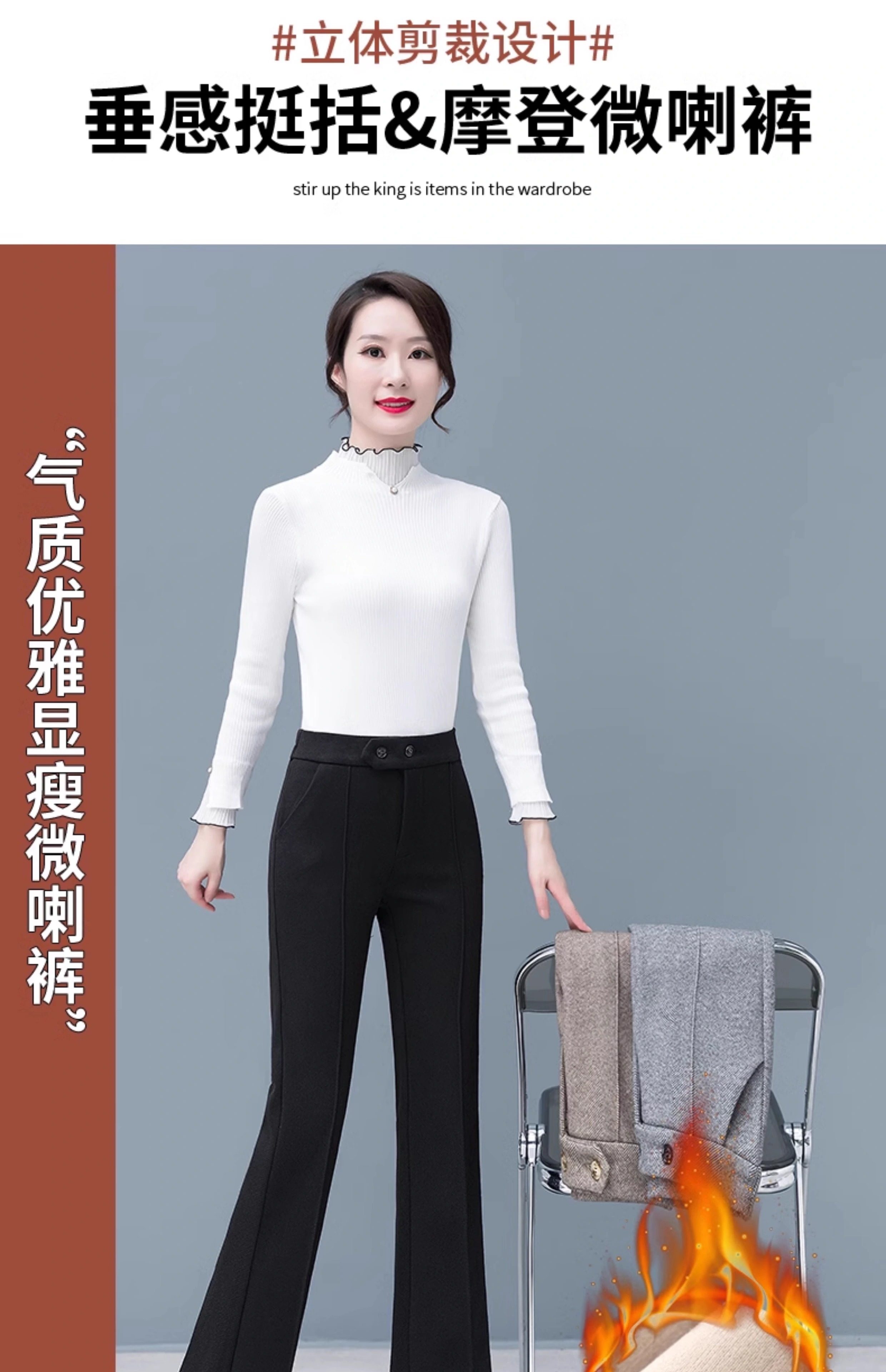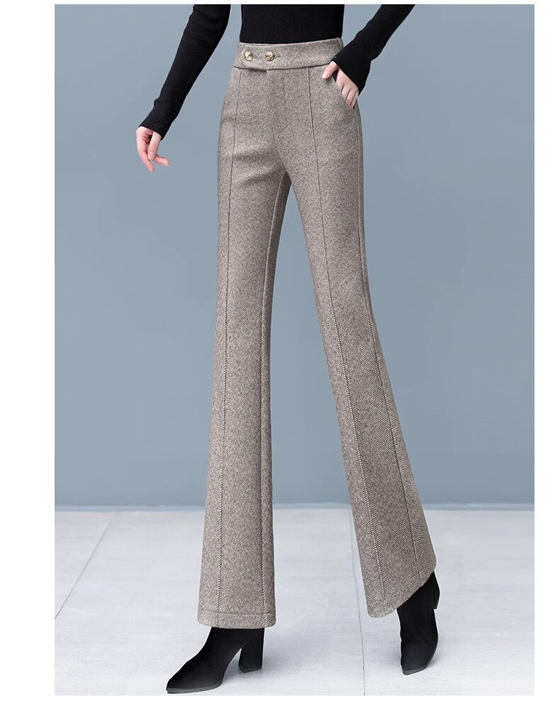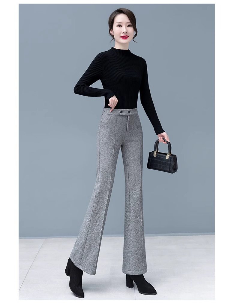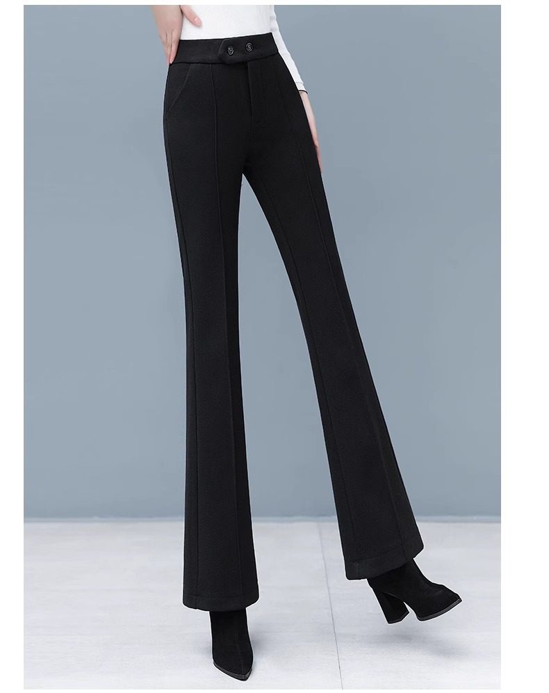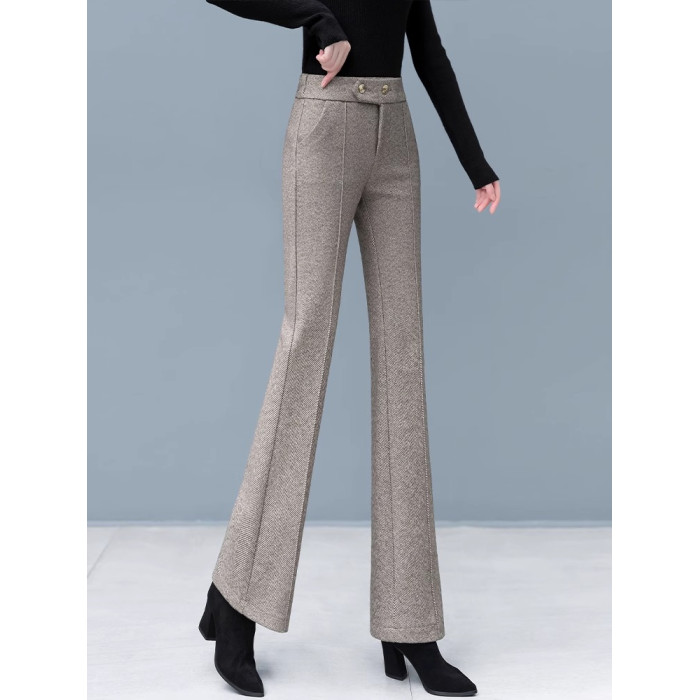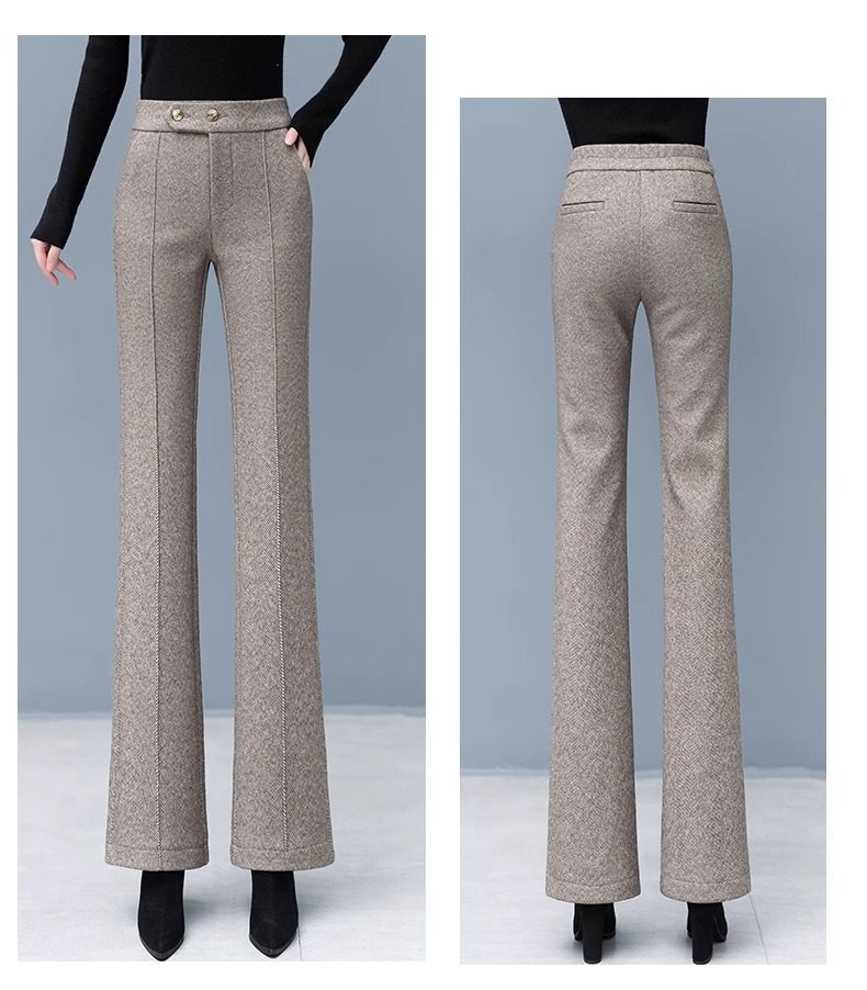 毛呢喇叭褲女秋冬2025新款高腰毛呢褲子加絨加厚保暖休閒微喇褲子