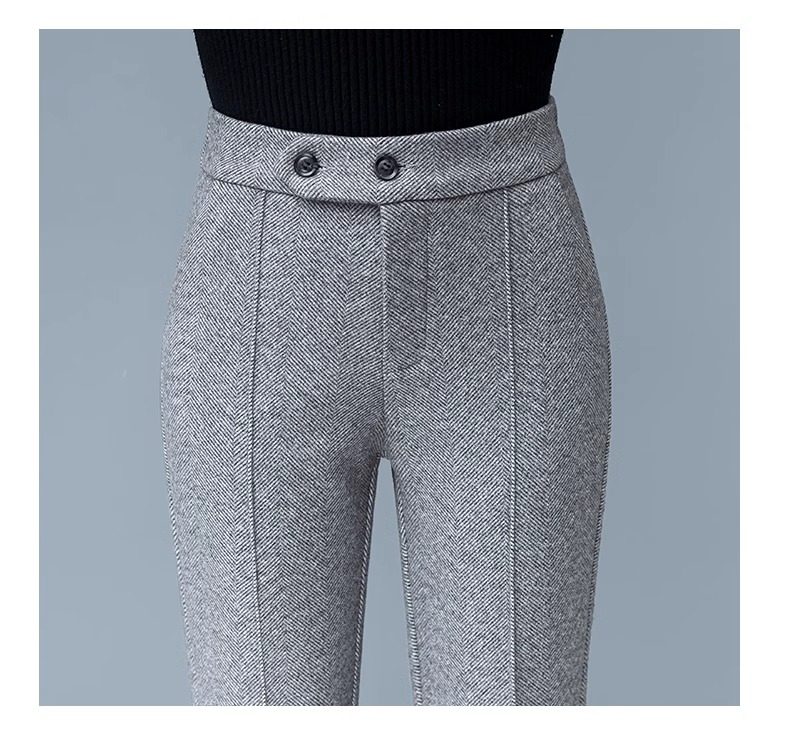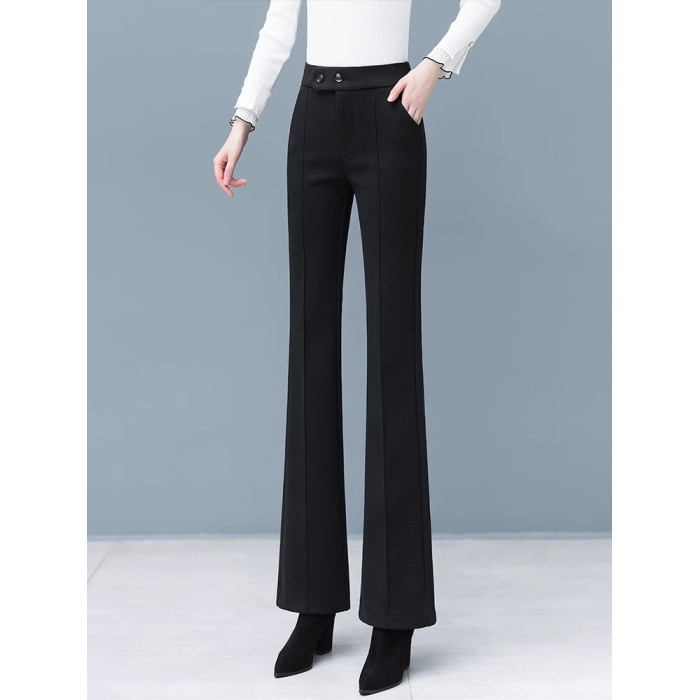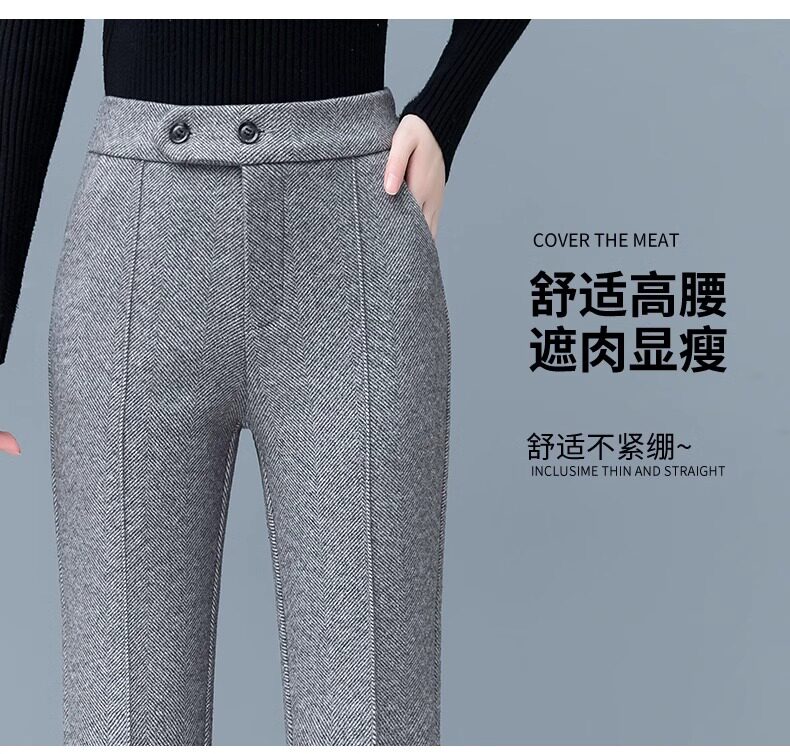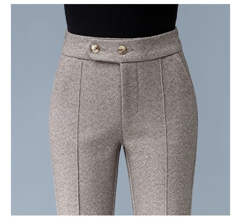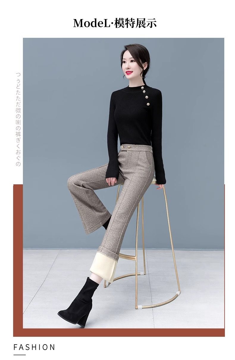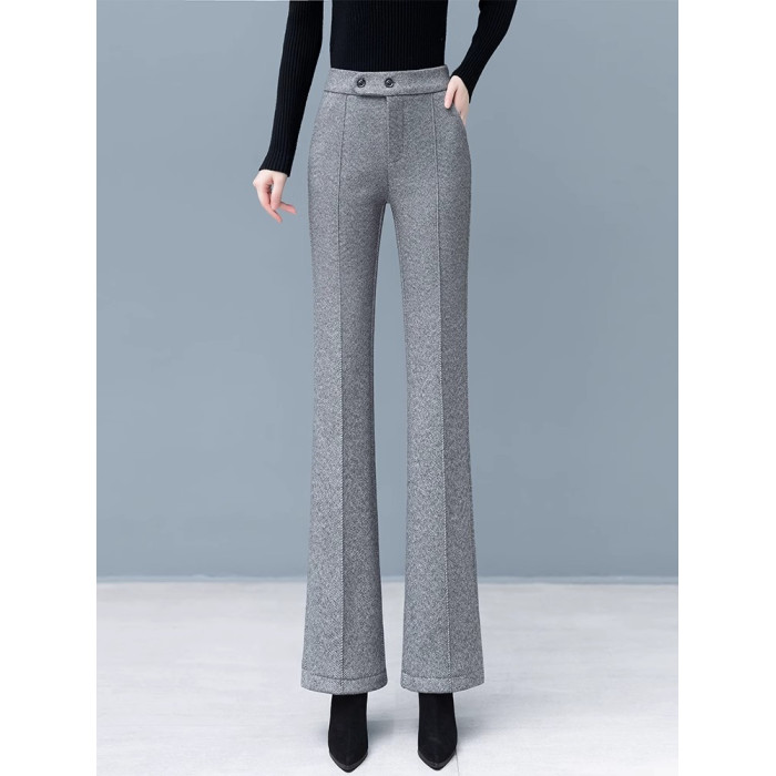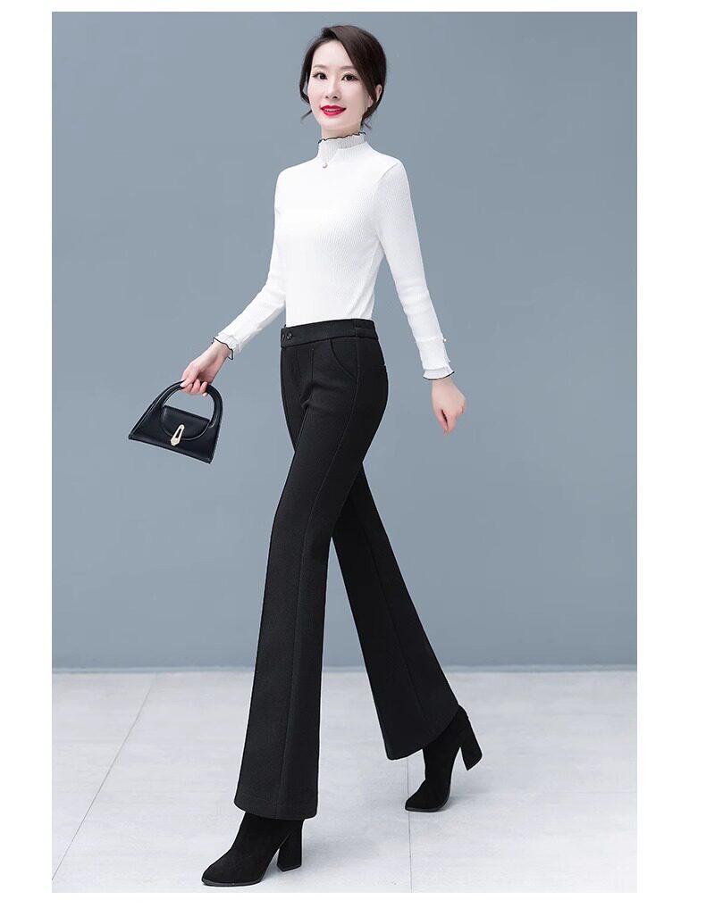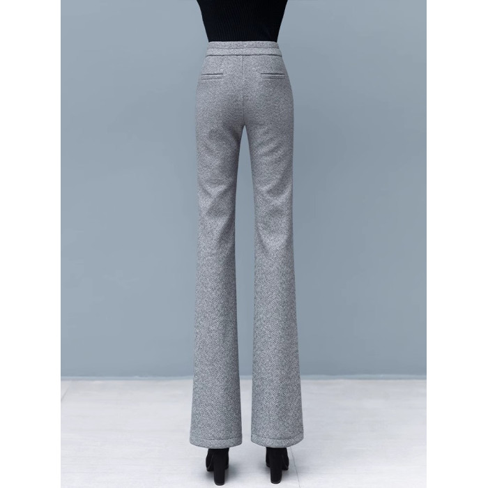 毛呢喇叭褲女秋冬2025新款高腰毛呢褲子加絨加厚保暖休閒微喇褲子