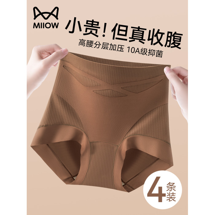 貓人高腰收腹內褲女2025新款抗菌收小肚子大碼無痕提臀塑型三角褲