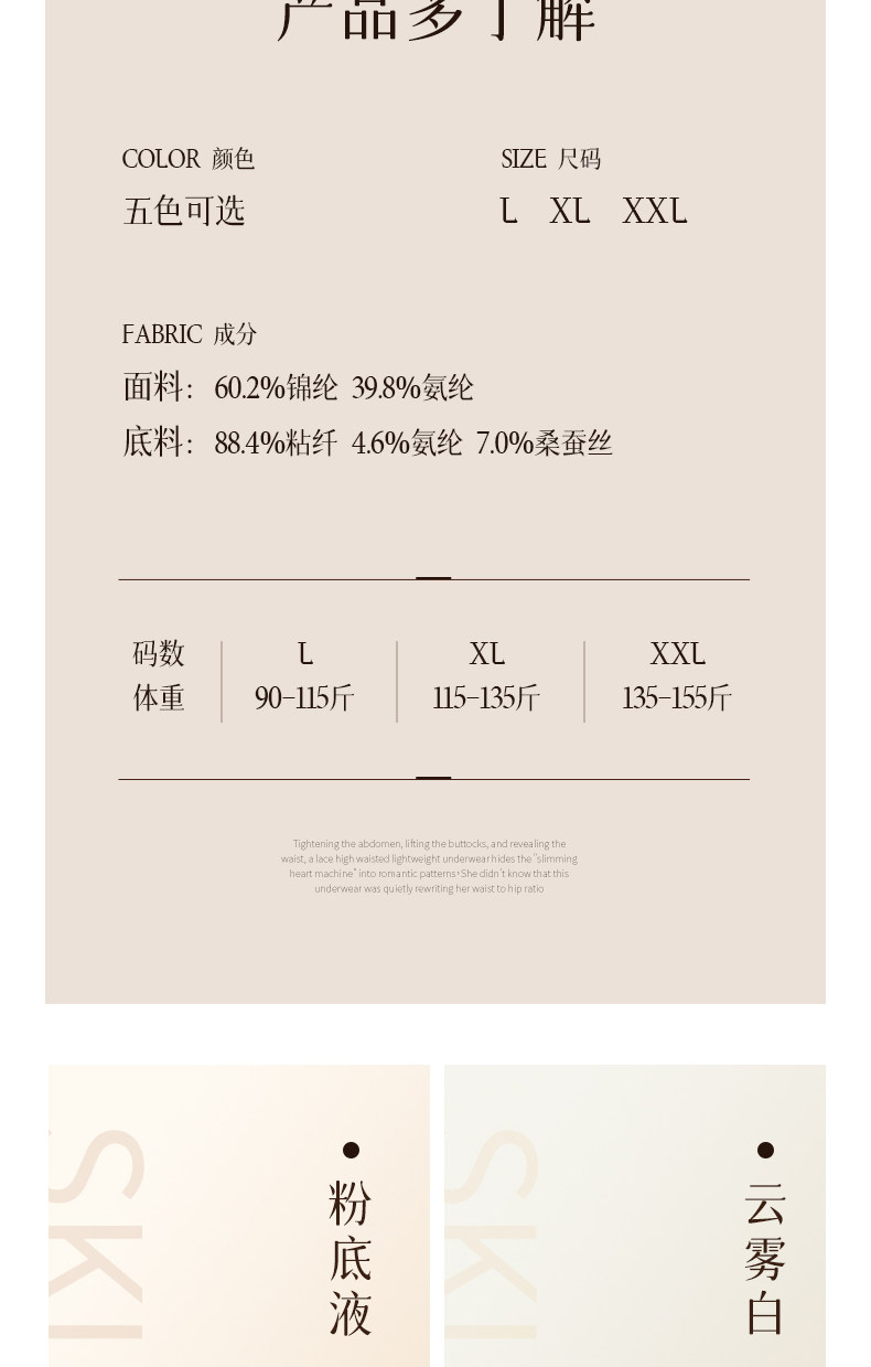 | 襠部材質成分 | 粘膠纖維(粘纖)88.4% 桑蠶絲7% 聚氨酯彈性纖維(氨綸)4.6% |