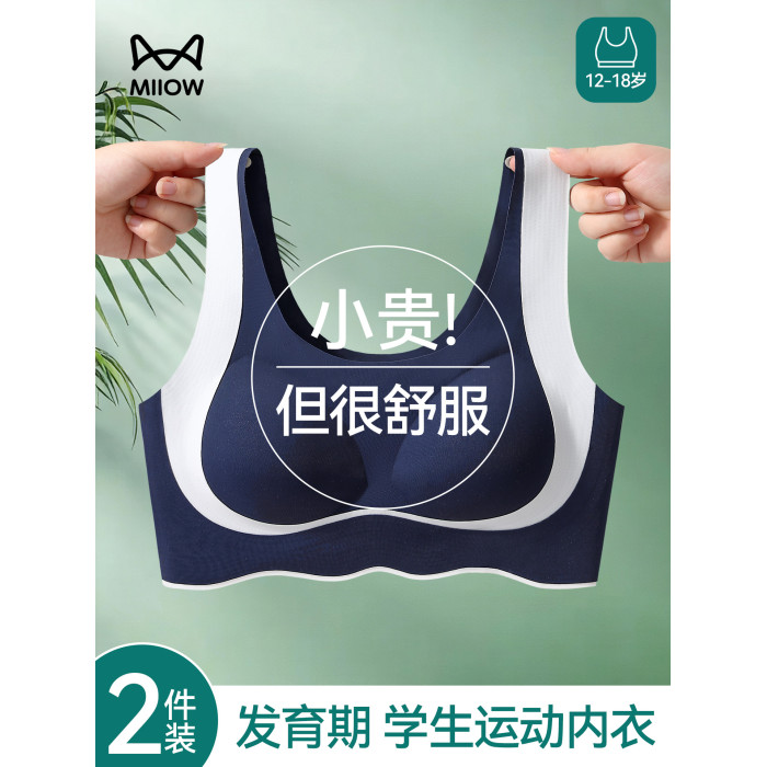 貓人發育期少女內衣初高中二三階段青春期運動防震無痕女大童背心