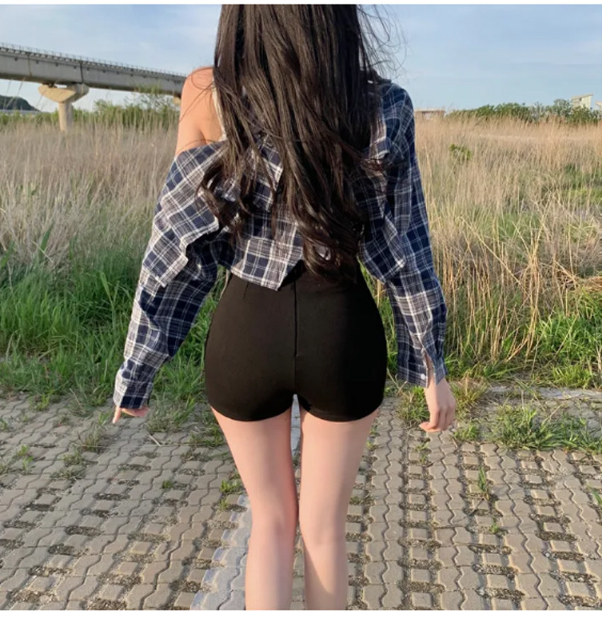 黑色高腰短褲外穿女春秋彈力緊身包臀辣妹休閒褲性感百搭網紅熱褲