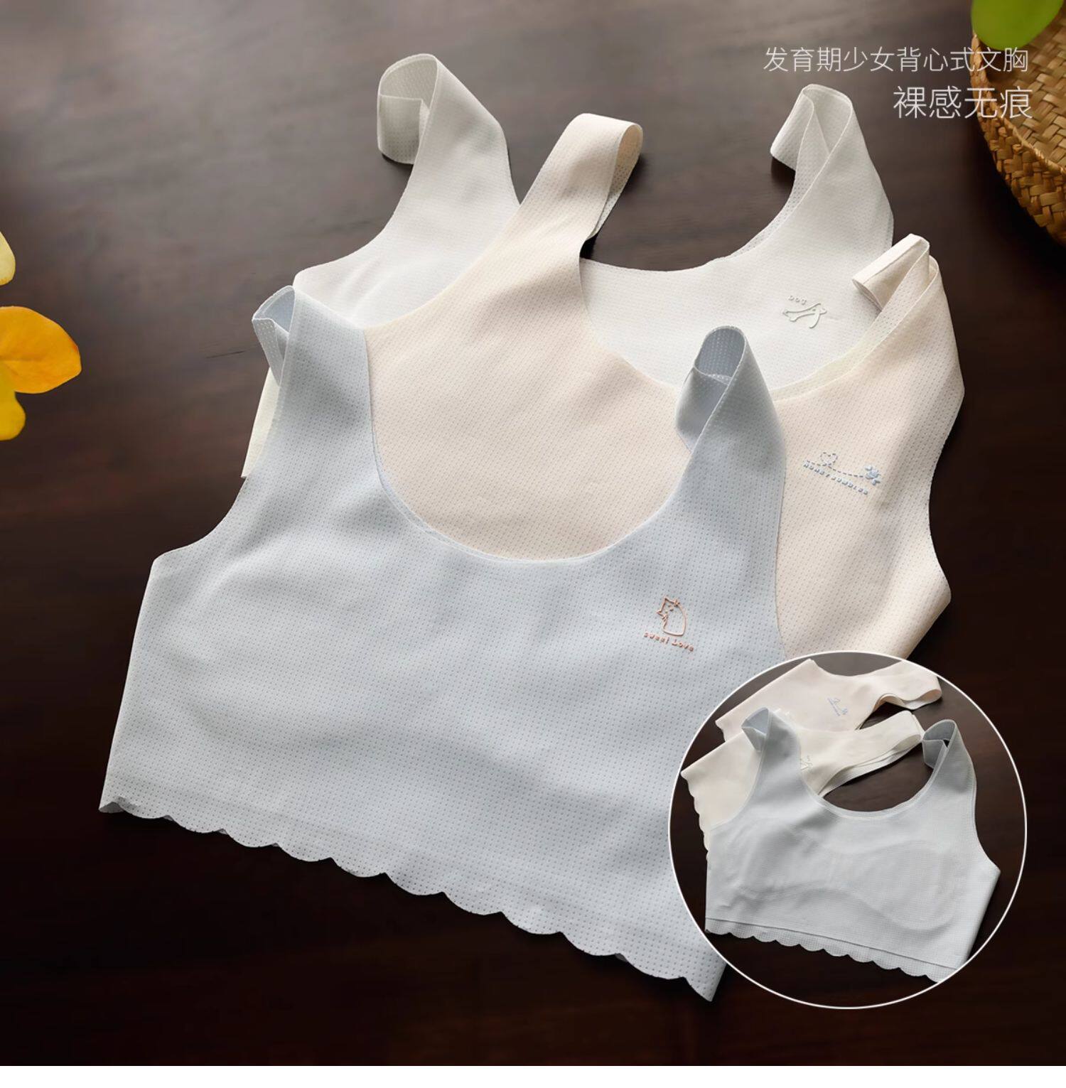 A類一二階段 女童發育期少女文胸 固定胸墊內衣彈力薄款無痕背心