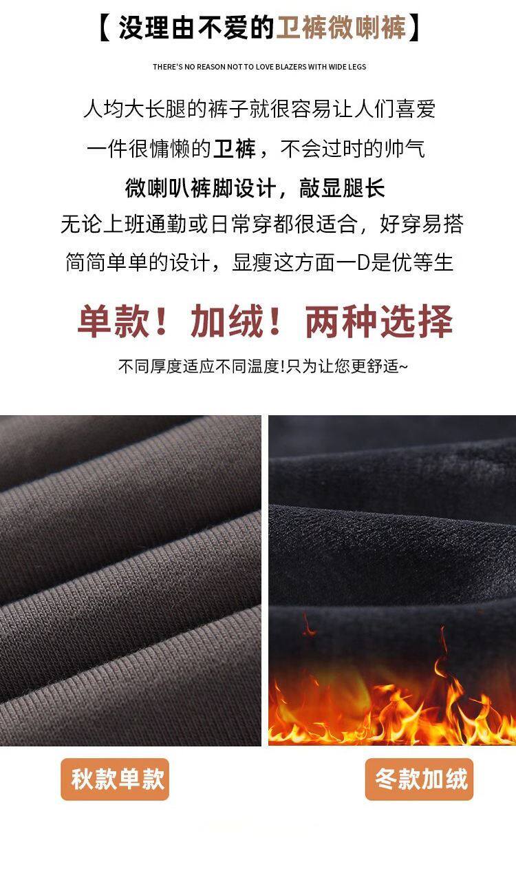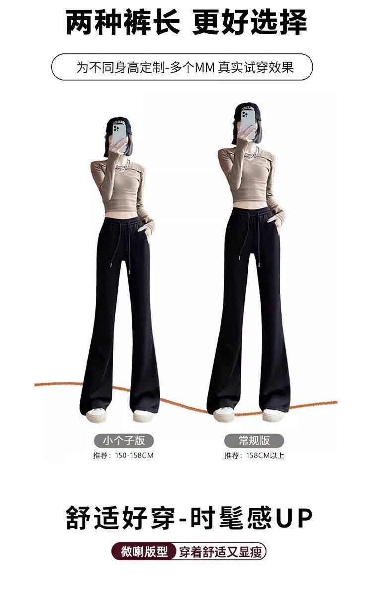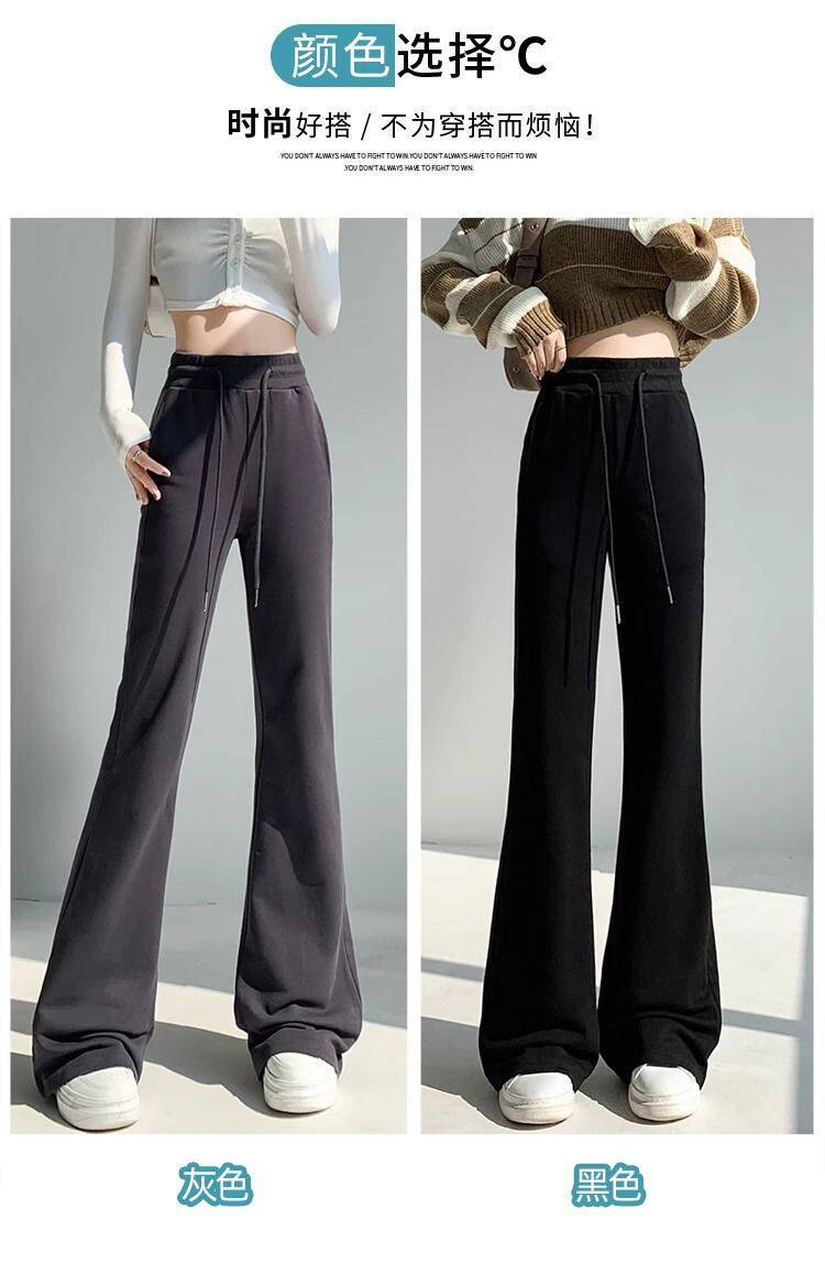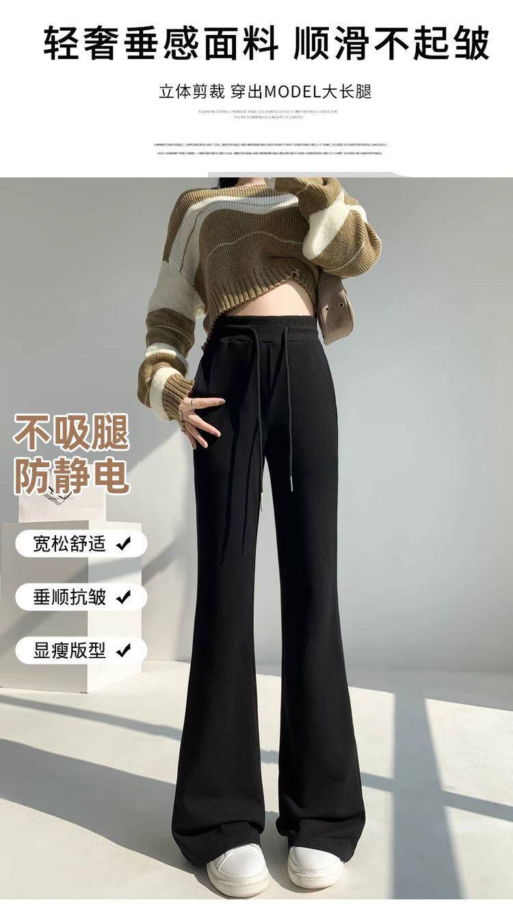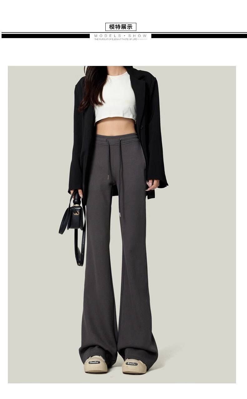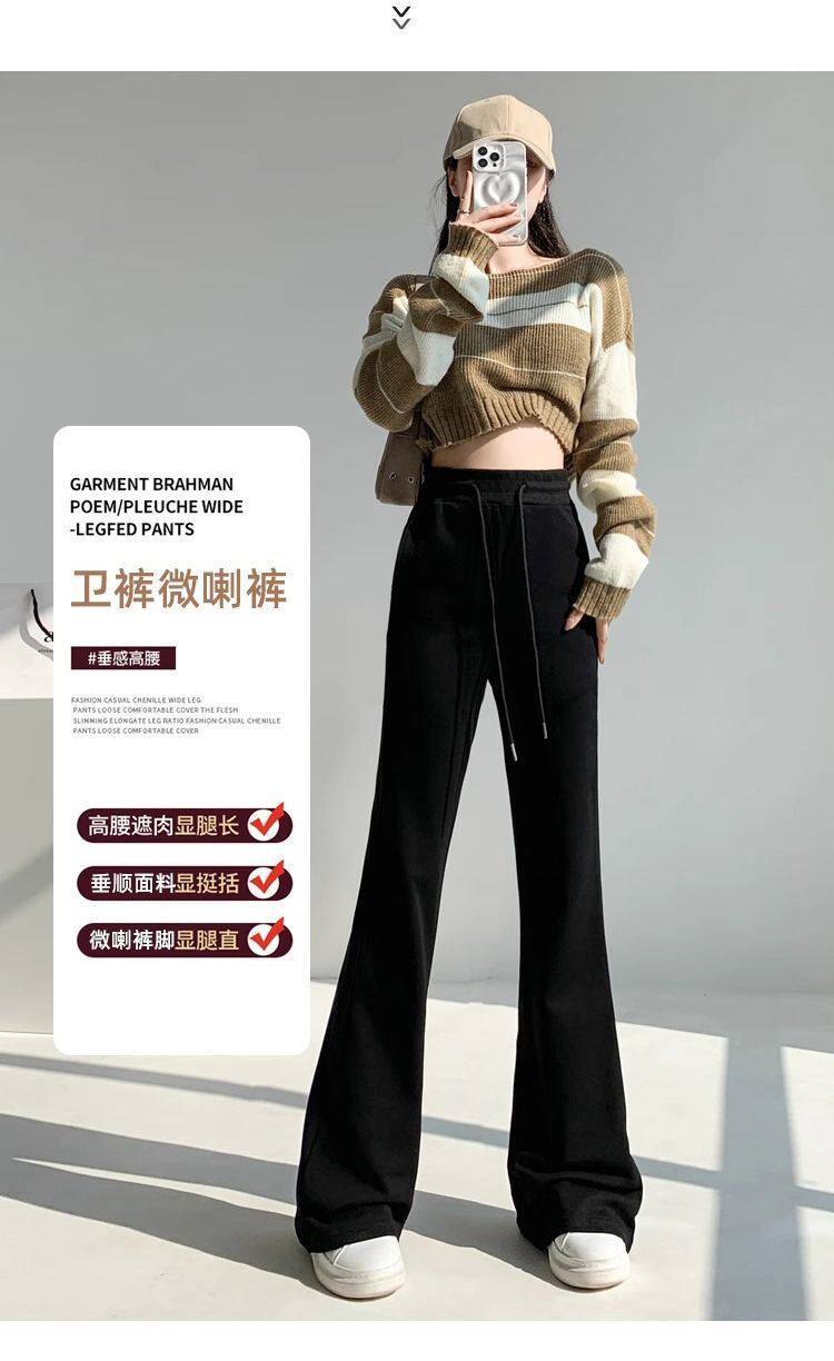 單/兩件 純色高腰微喇叭馬蹄褲女春秋百搭垂感顯瘦休閒拖地衛褲
