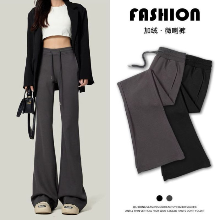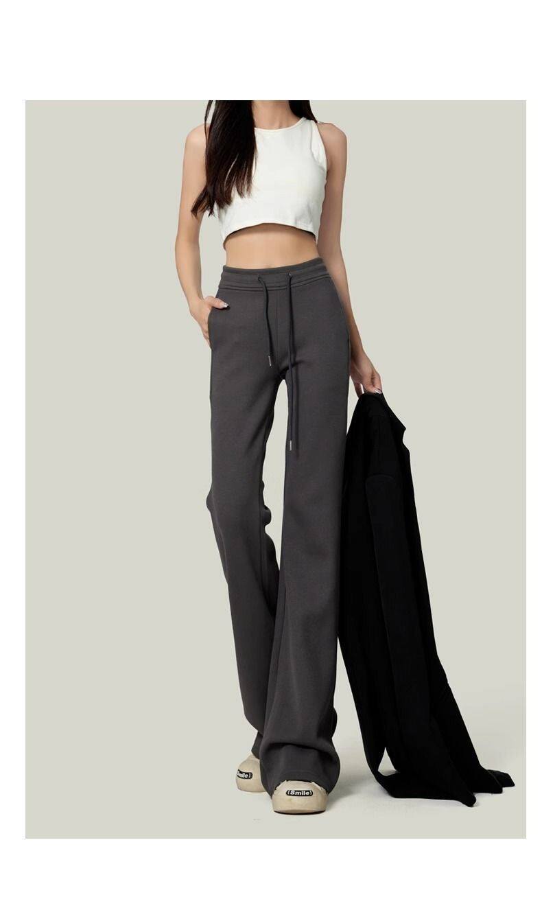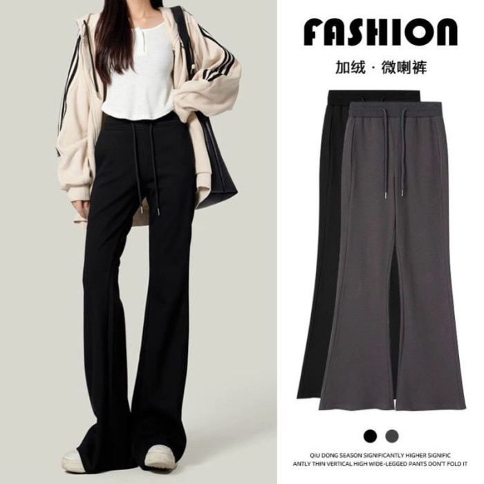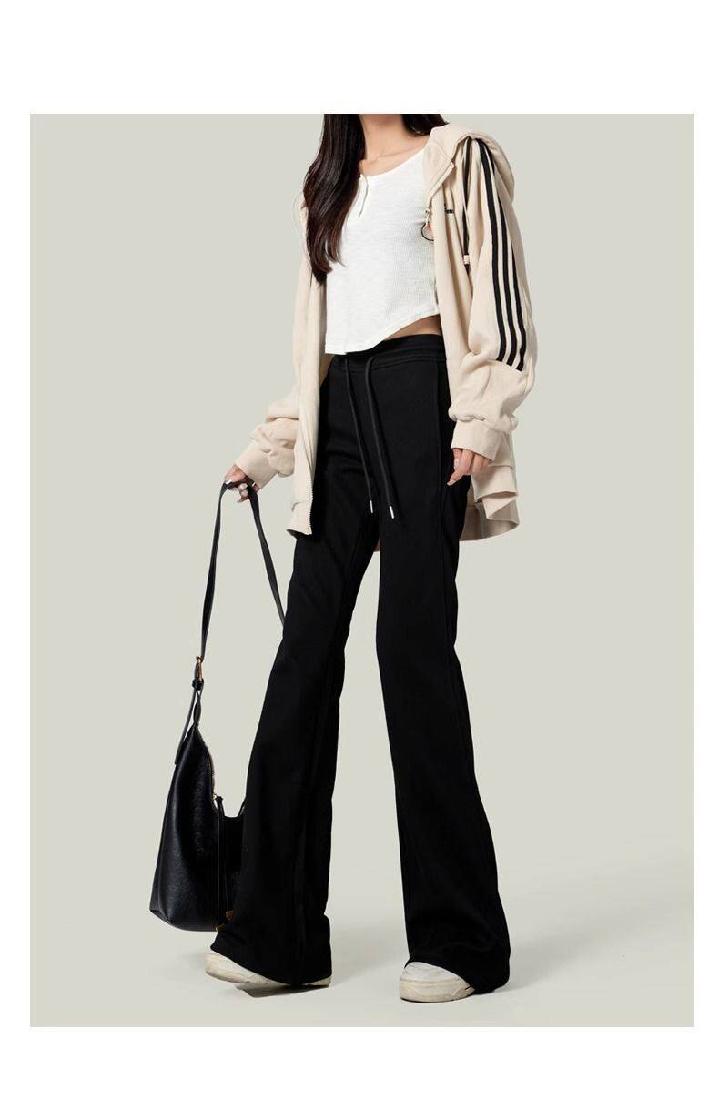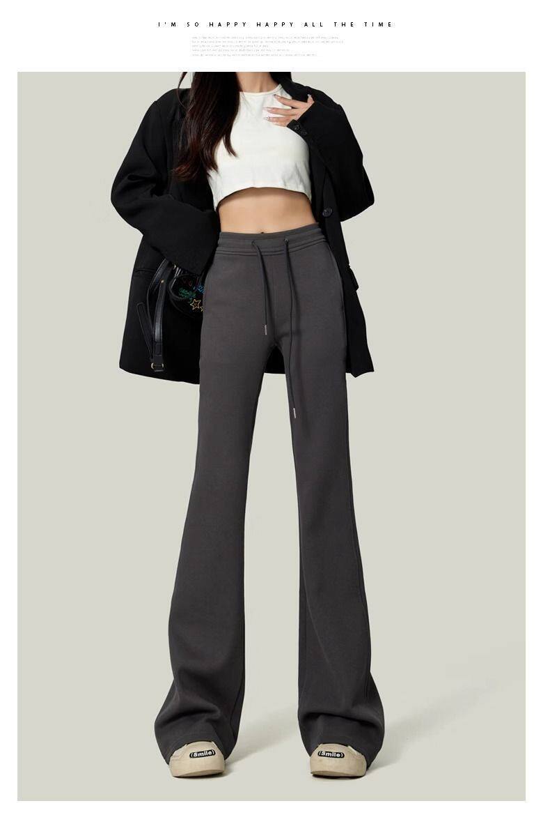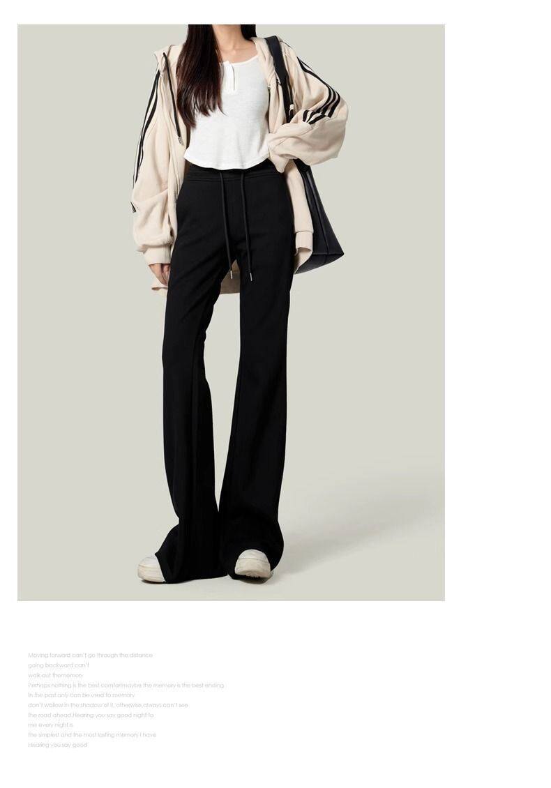 單/兩件 純色高腰微喇叭馬蹄褲女春秋百搭垂感顯瘦休閒拖地衛褲