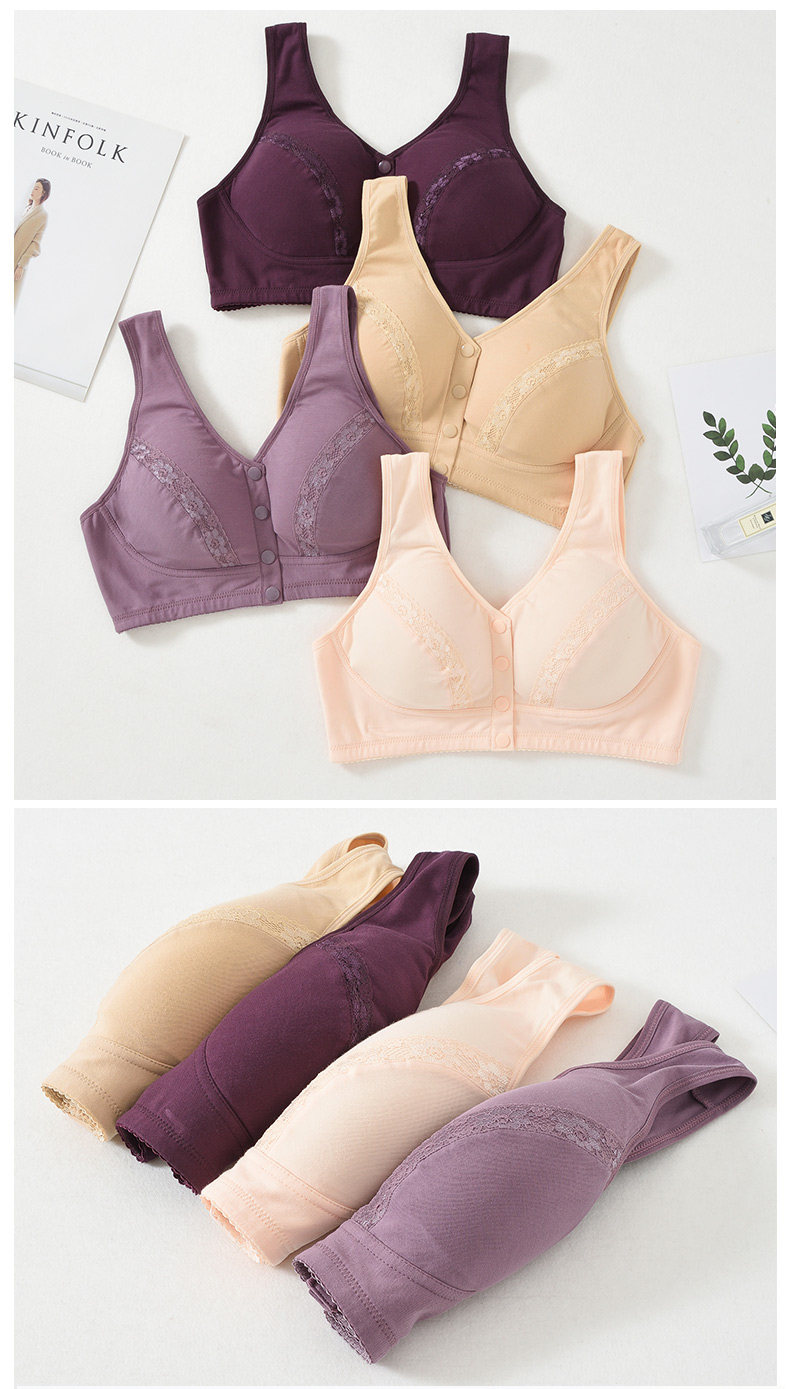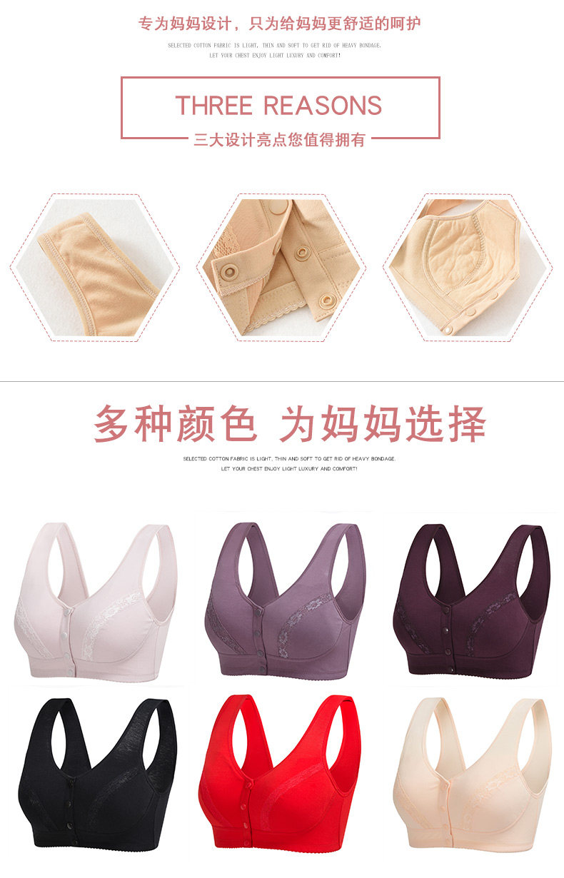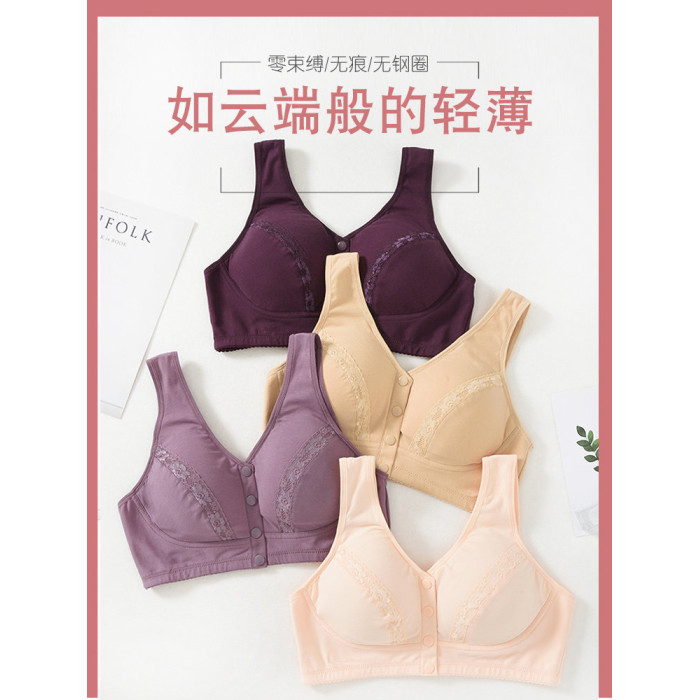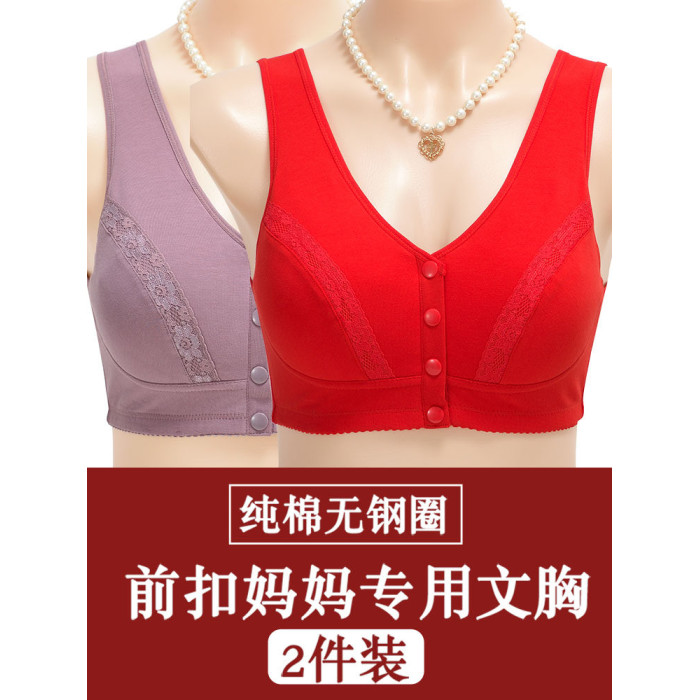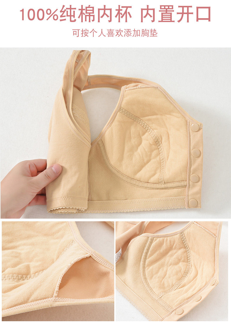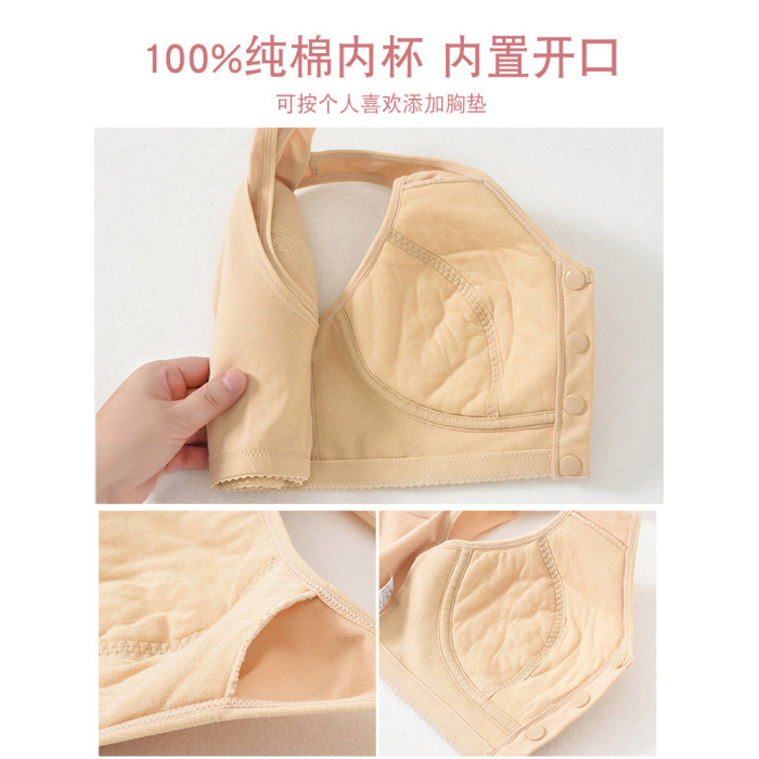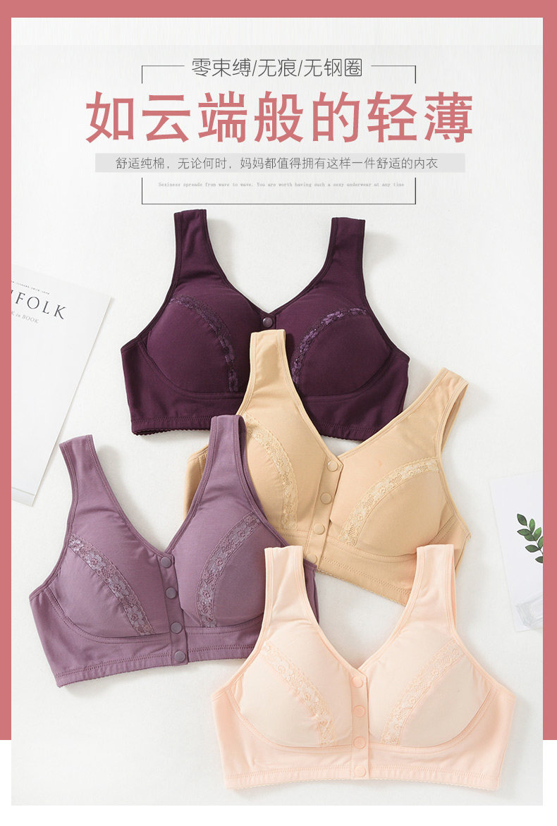 媽媽內衣文胸中老年專用女無鋼圈純棉中年婦女背心式前釦大碼胸罩