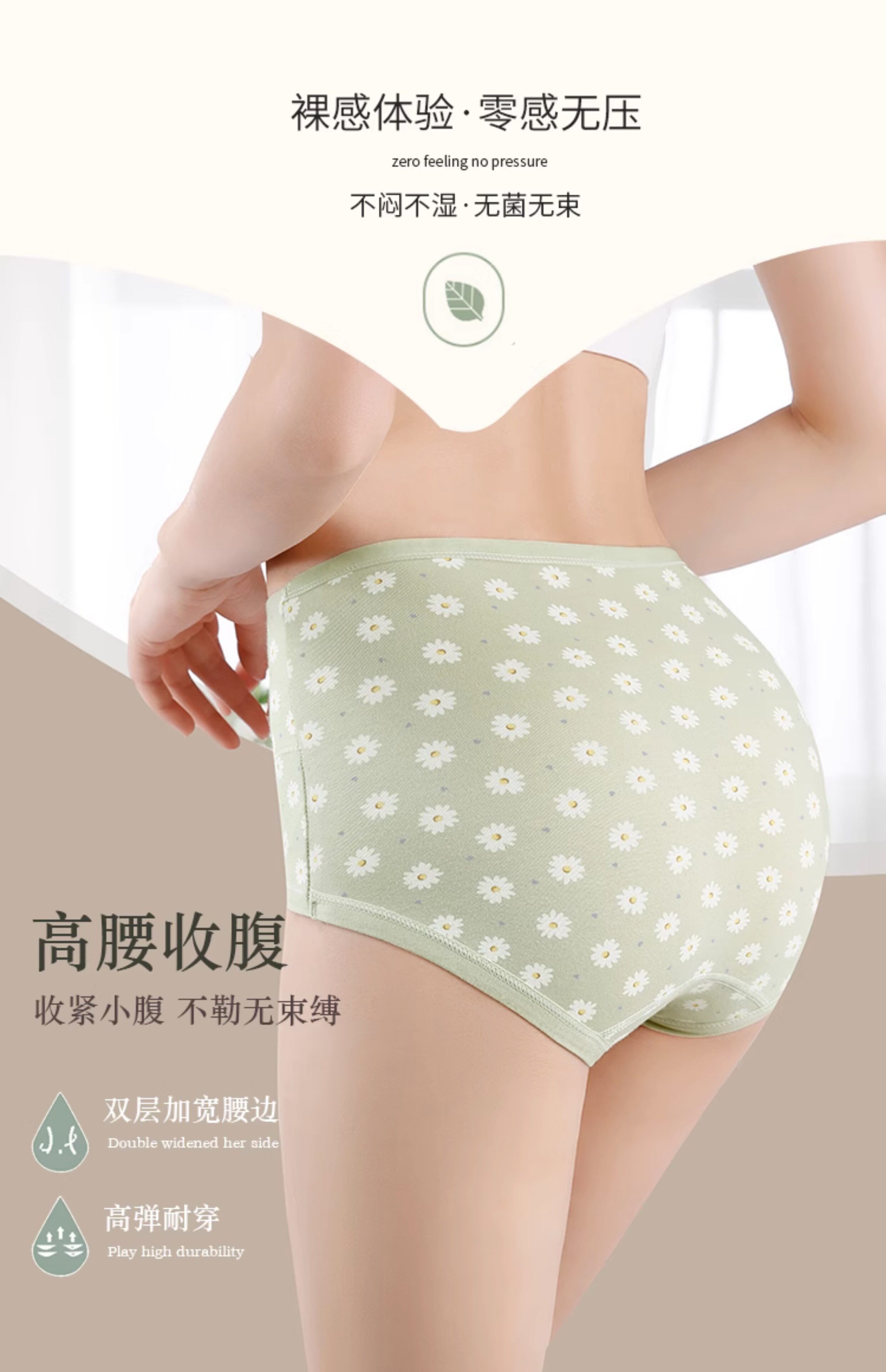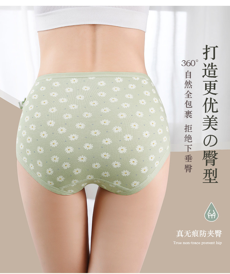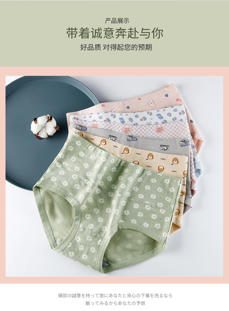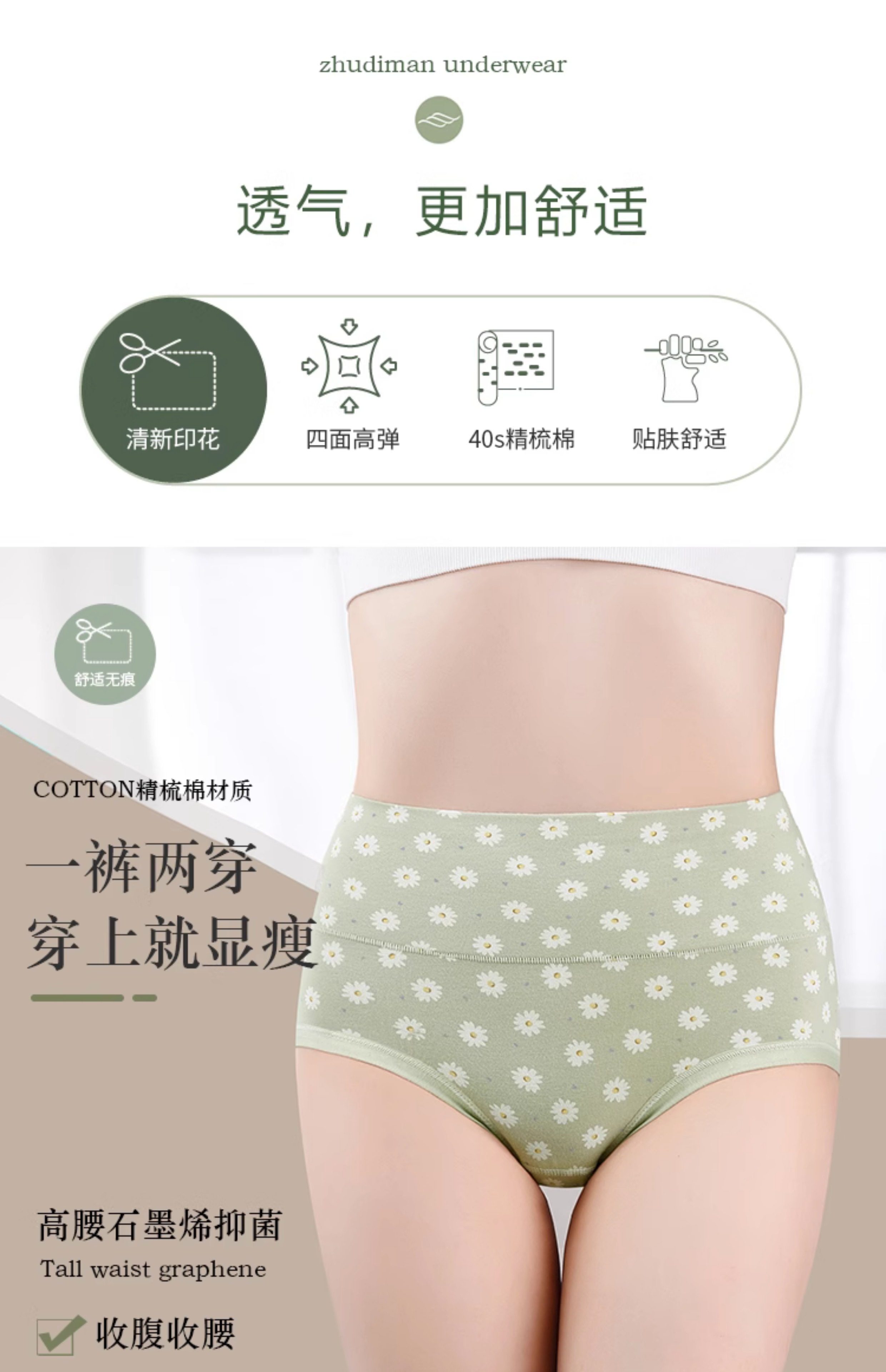 內褲女純棉高腰收腹提臀少女士大碼印花透氣抗菌全棉三角短褲新款