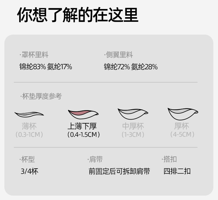 | 罩杯款式 | 3/4罩杯 |