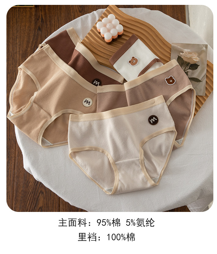 5條裝美拉德A類純棉內褲女生抗菌全棉檔少女學生秋冬中腰三角短褲