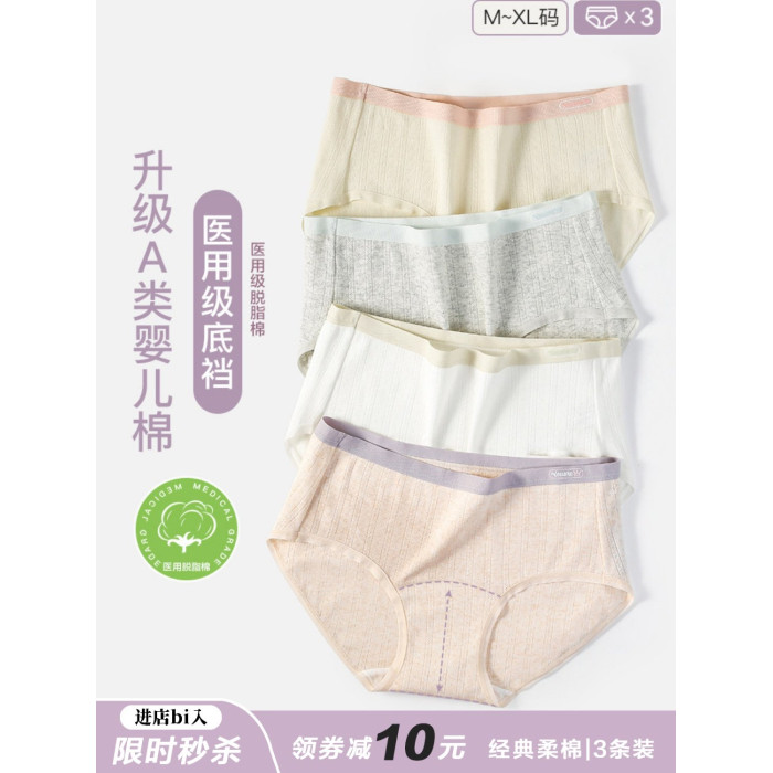 輕盈呼吸感~醫用級A類嬰兒棉女士內褲透氣提花純棉襠7A抑菌全棉