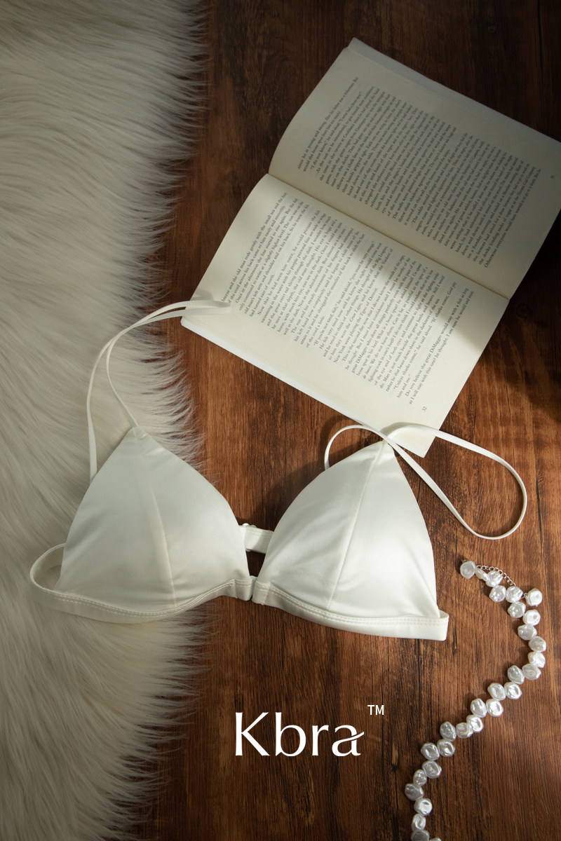 Kbra珠光絲法式三角杯內衣女超薄款夏季美背細肩帶前釦文胸罩緞面
