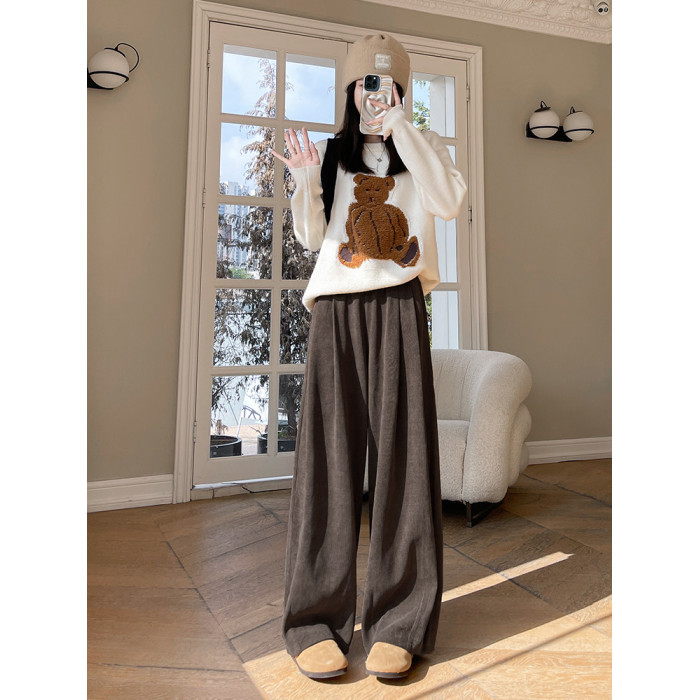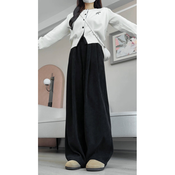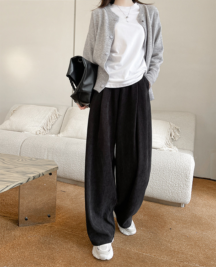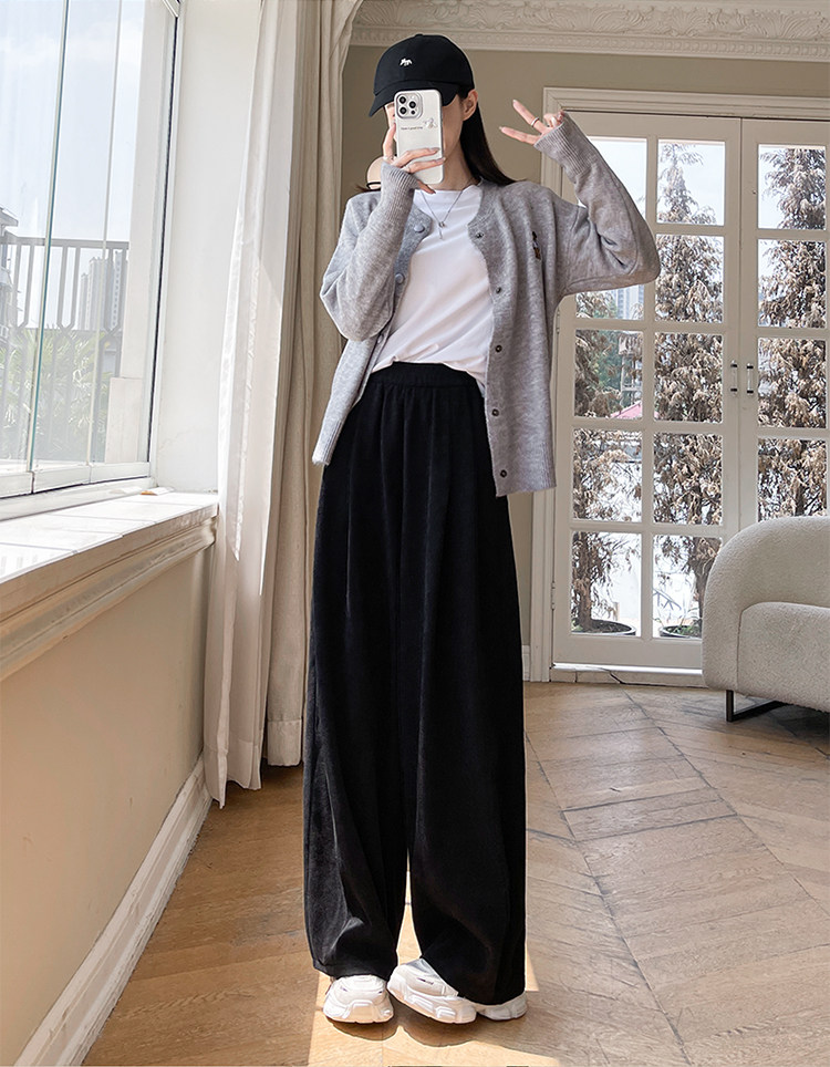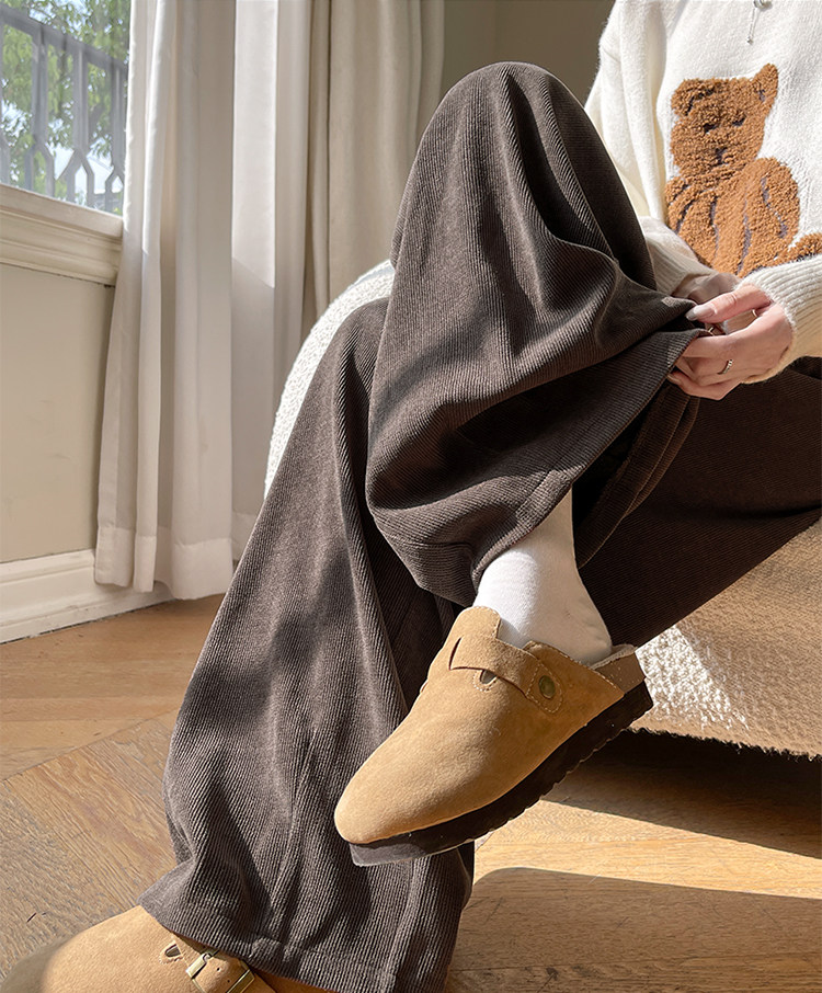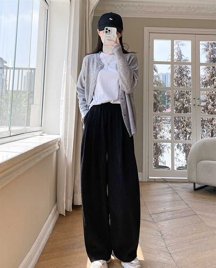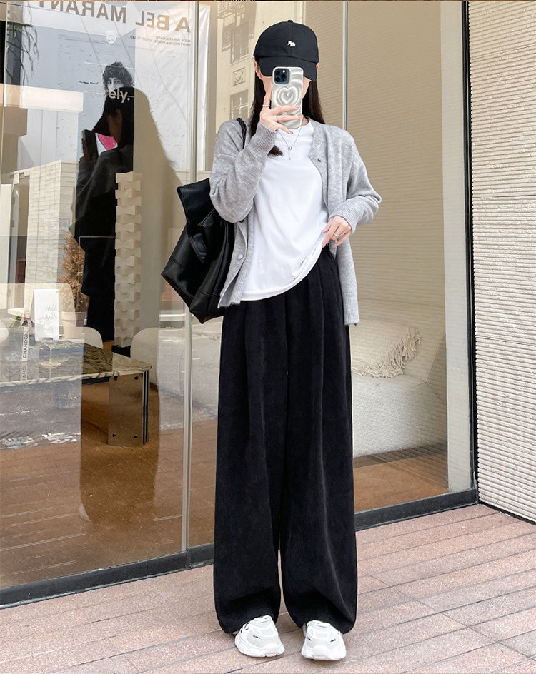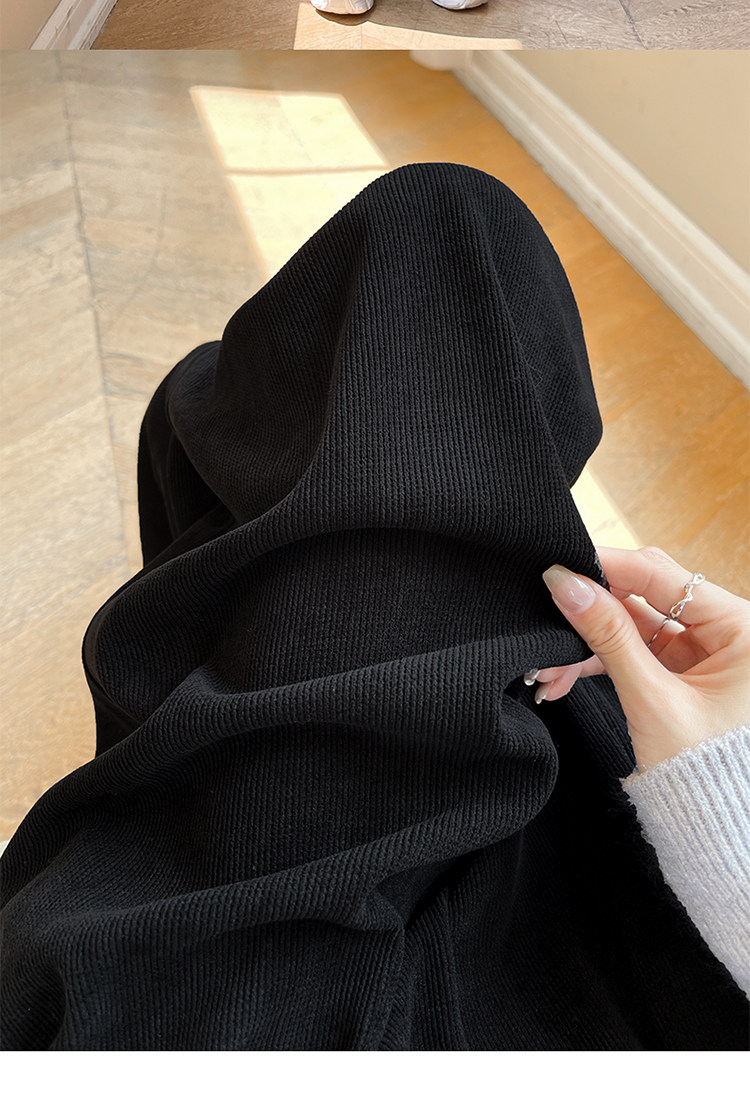 小個子山本褲女2025新款秋冬季加絨濶腿褲寬鬆直筒黑色燈芯絨褲子