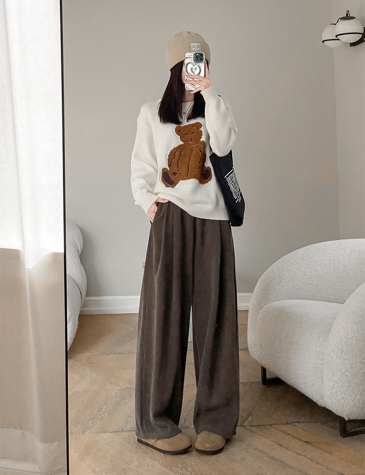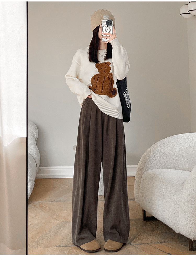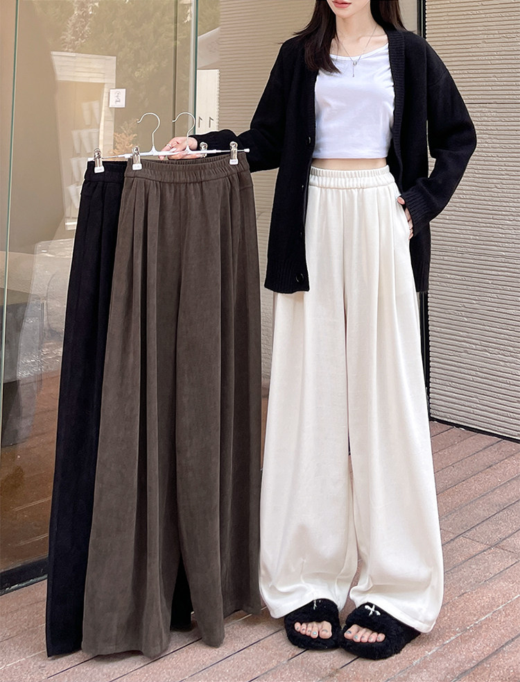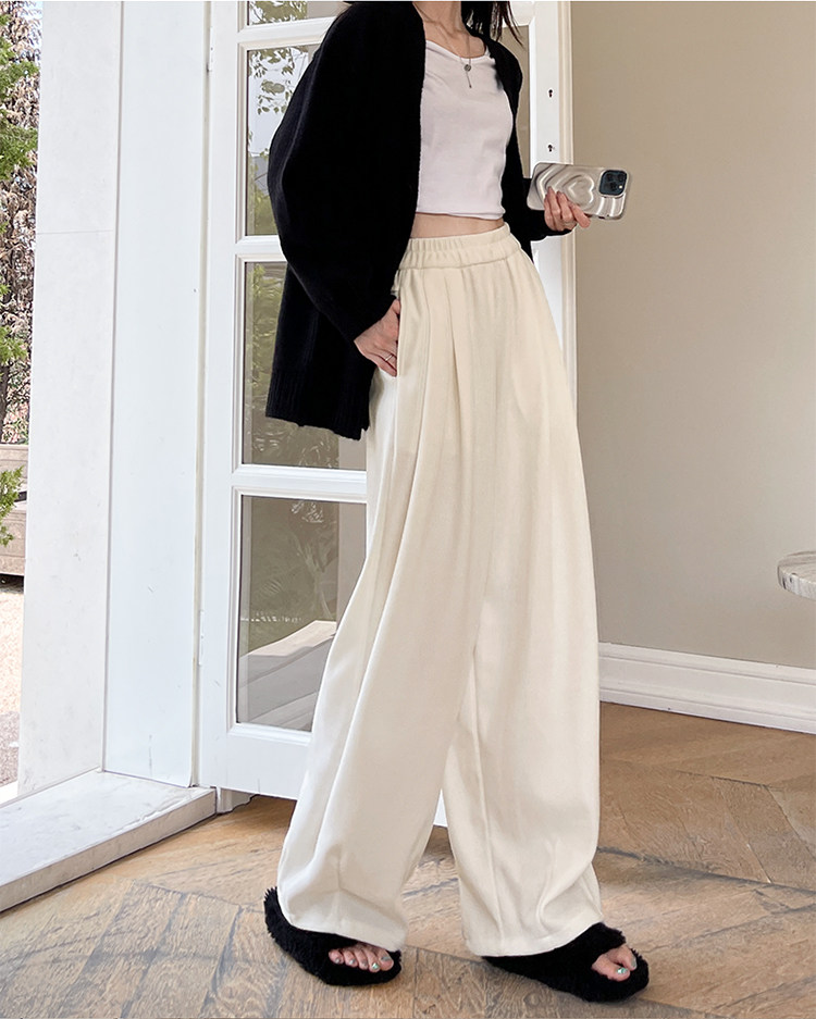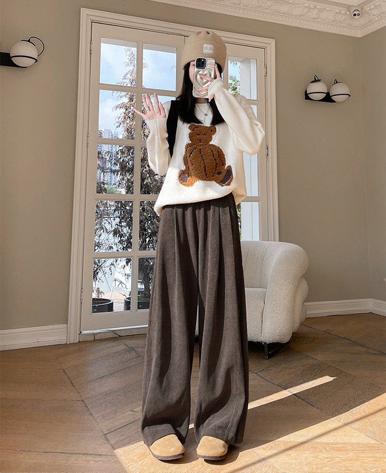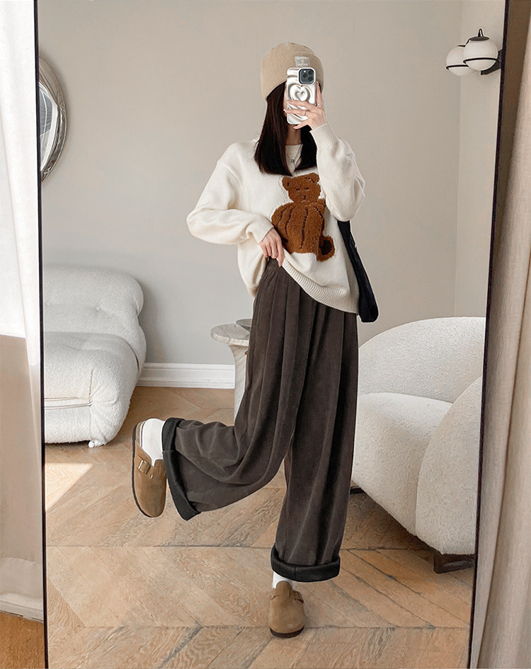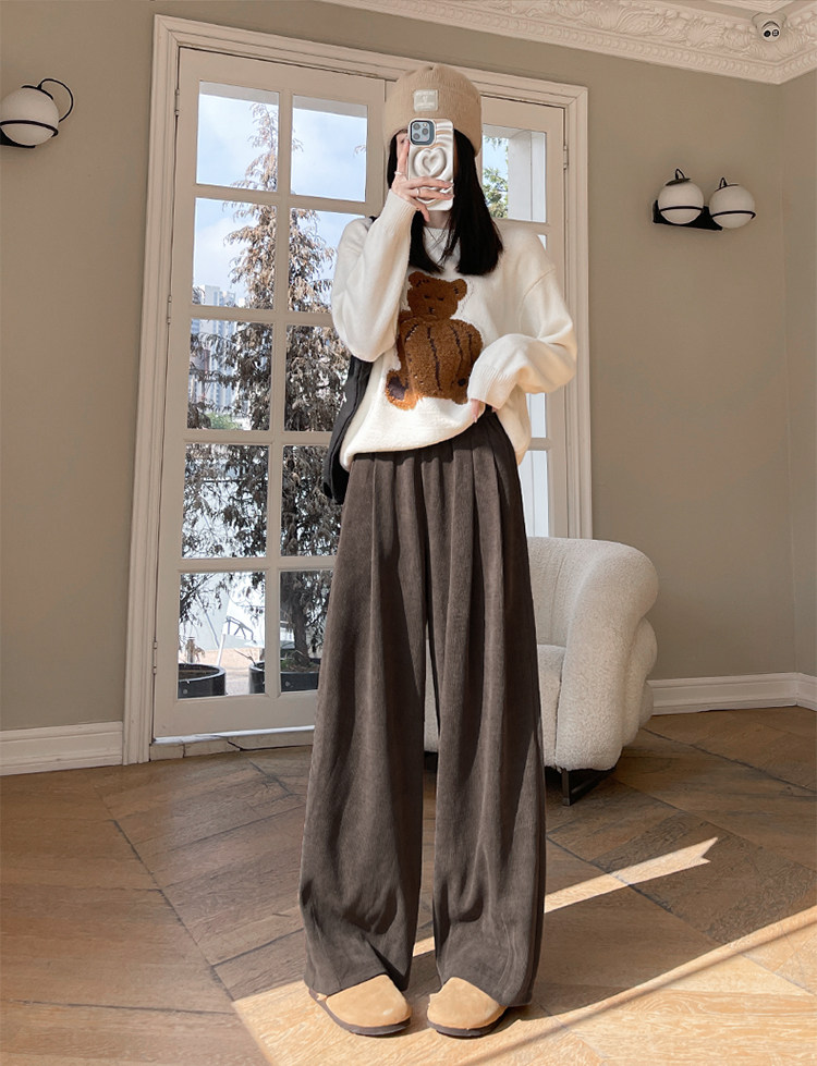 小個子山本褲女2025新款秋冬季加絨濶腿褲寬鬆直筒黑色燈芯絨褲子