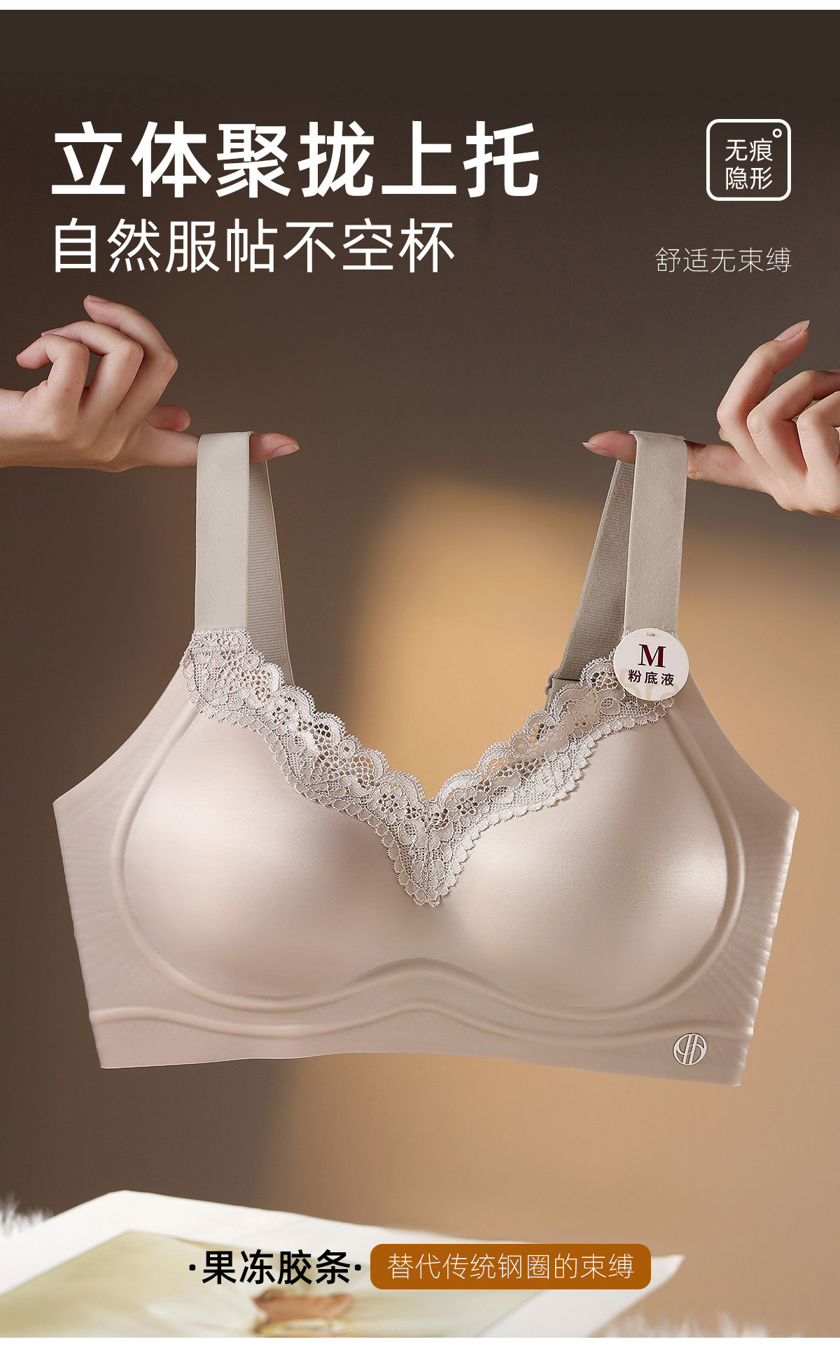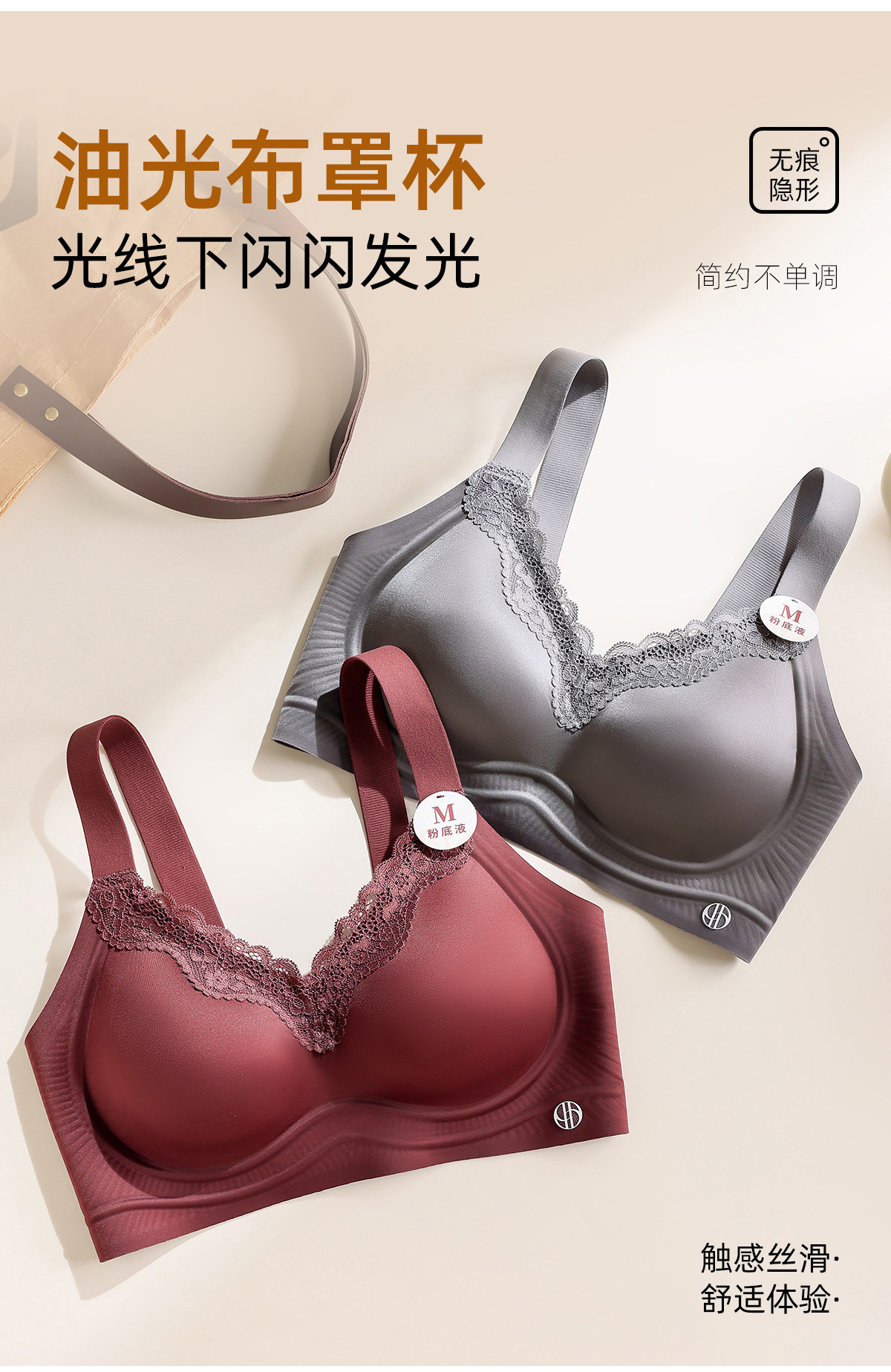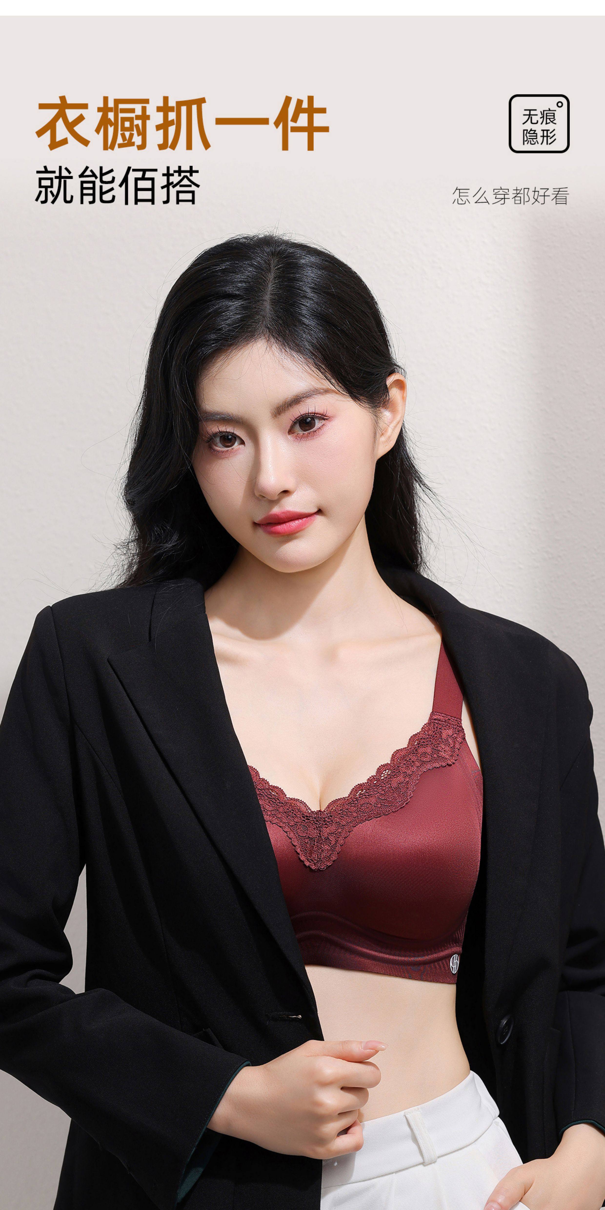 油光緞面一體式固定杯光面無痕內衣聚攏收副乳防下垂無鋼圈文胸罩