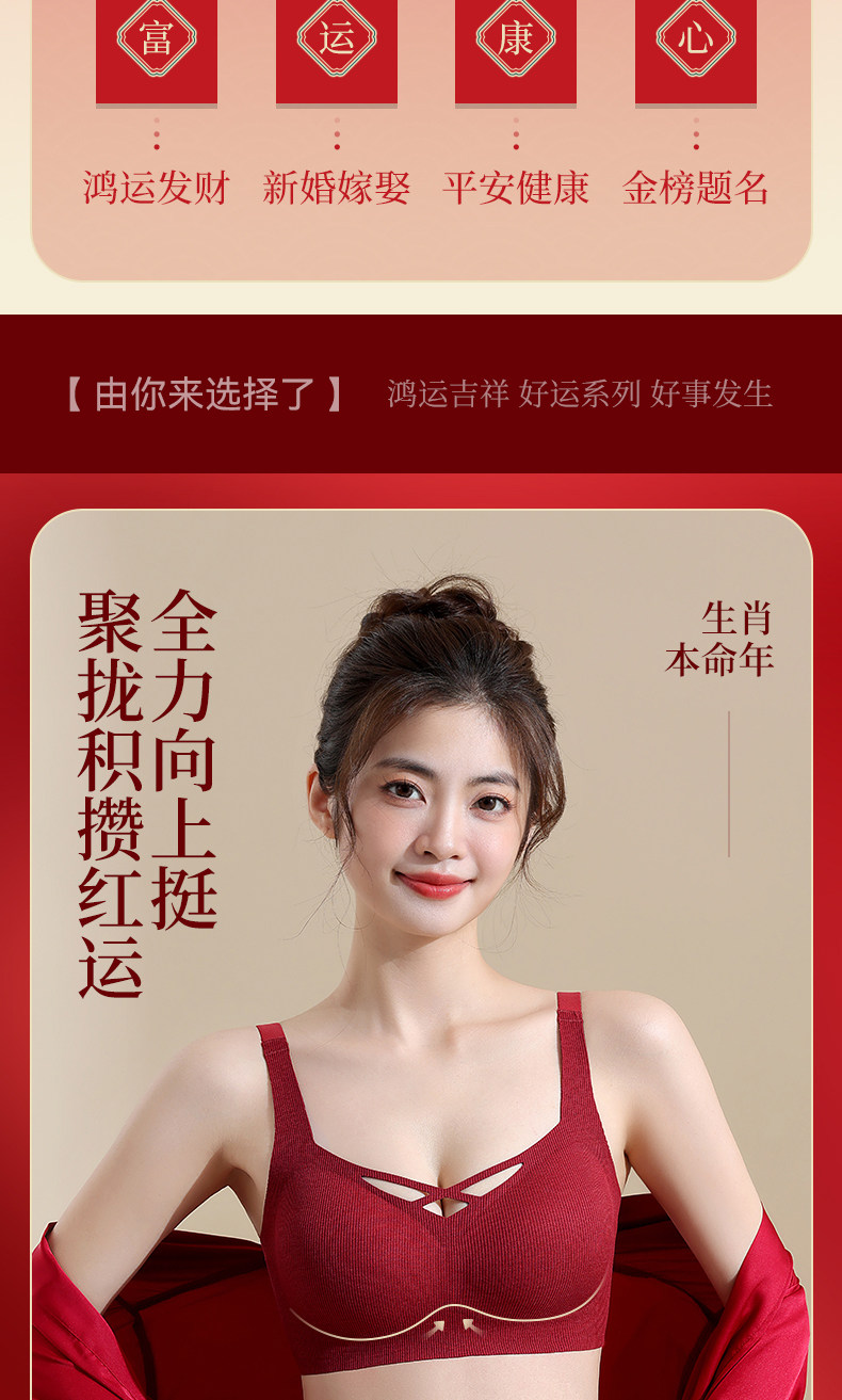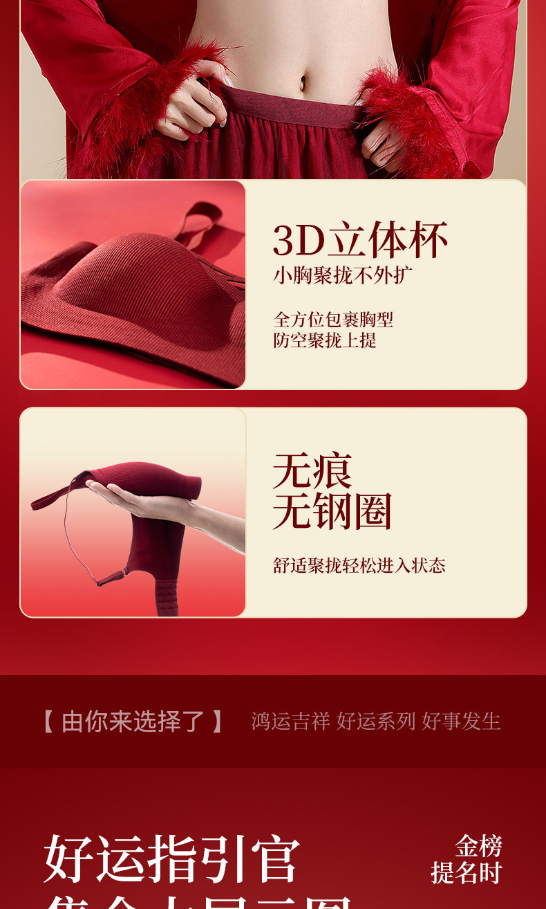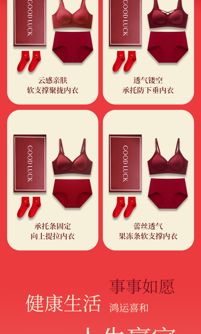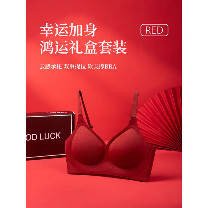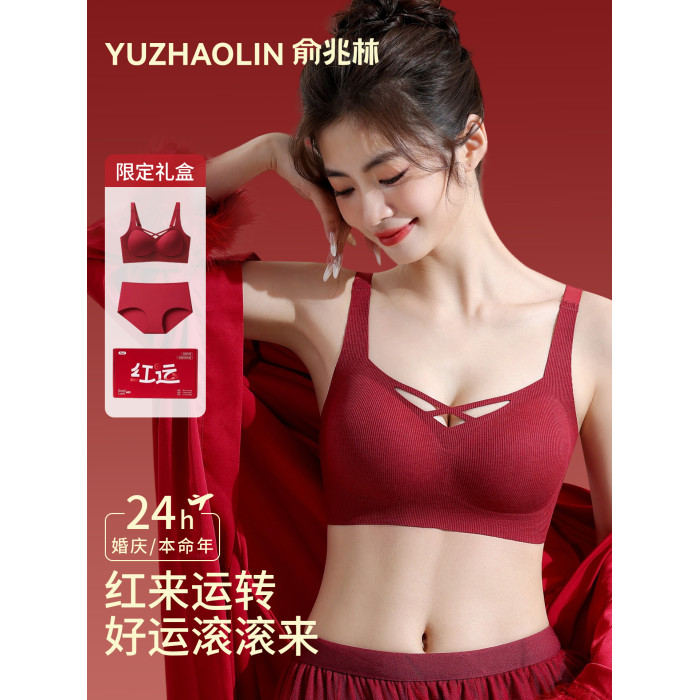 俞兆林本命年紅色內衣套裝女小胸聚攏收副乳結婚新娘內褲文胸禮盒