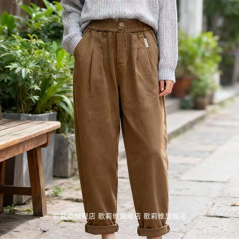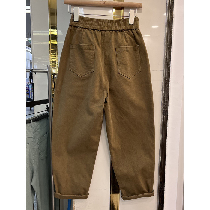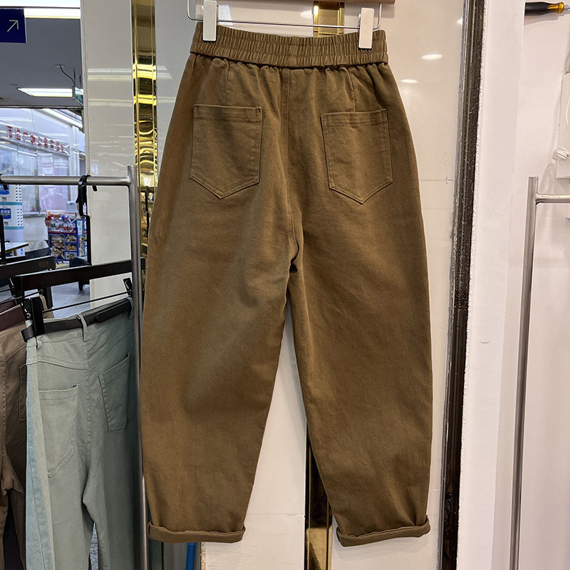 哈倫蘿蔔褲九分日系繙邊休閒老爹褲韓版工裝松緊腰顯瘦復古女秋冬