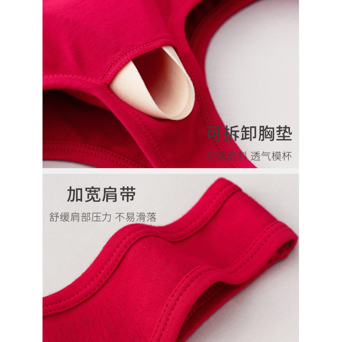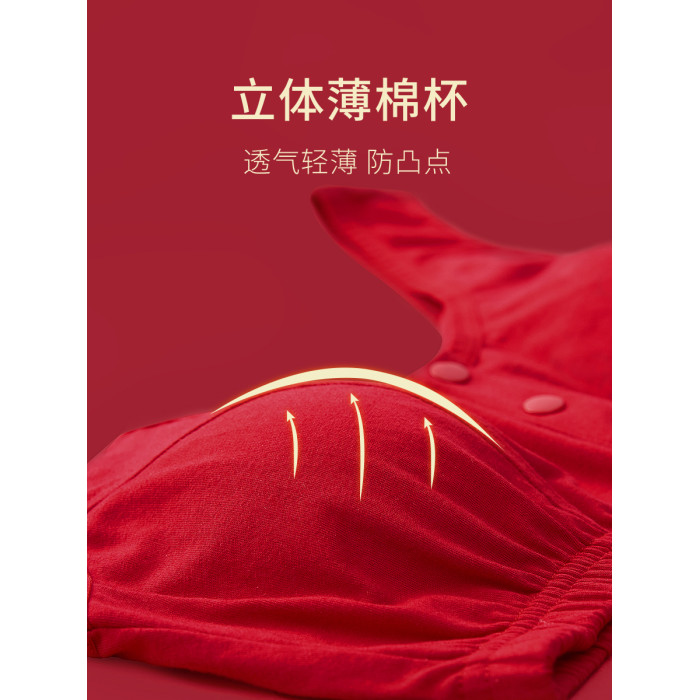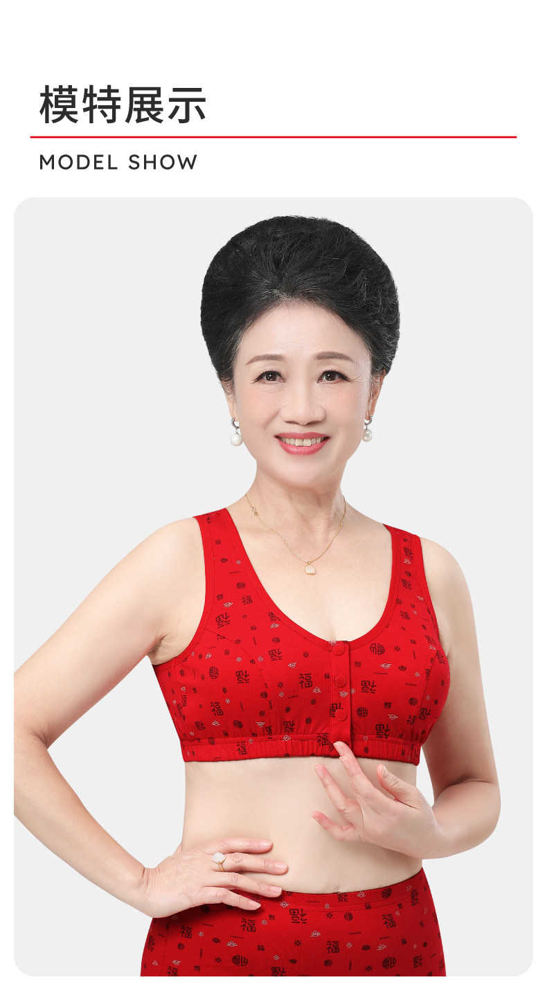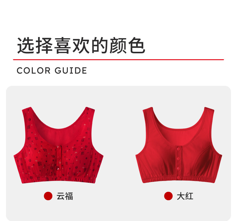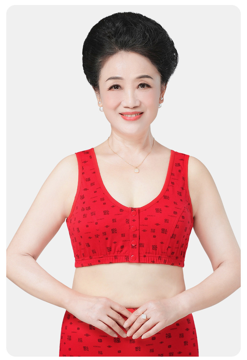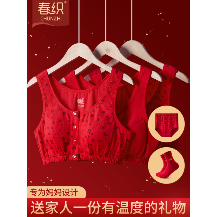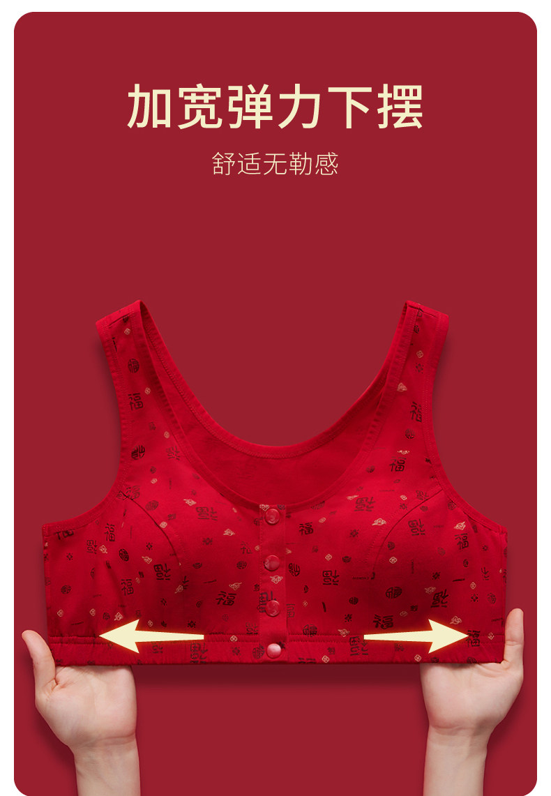 本命年媽媽內衣女純棉中老年人前開釦老人文胸無鋼圈大紅色胸罩