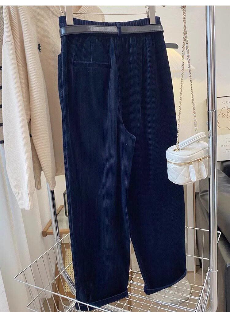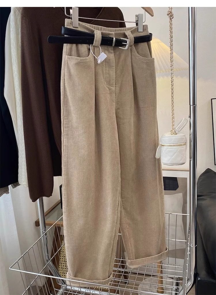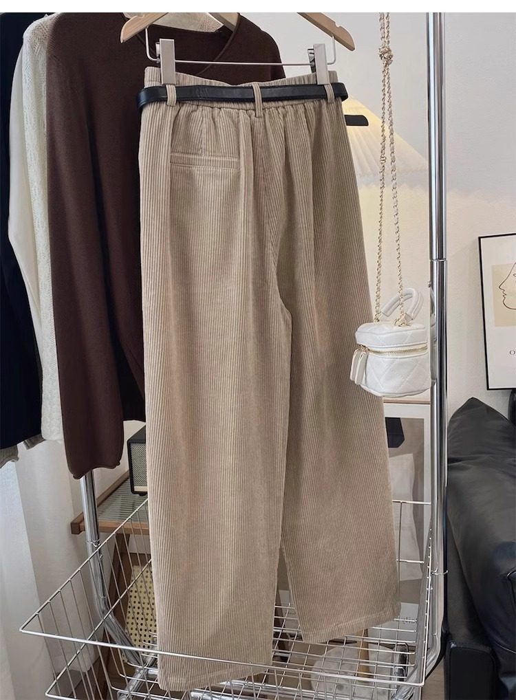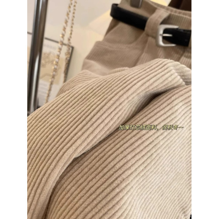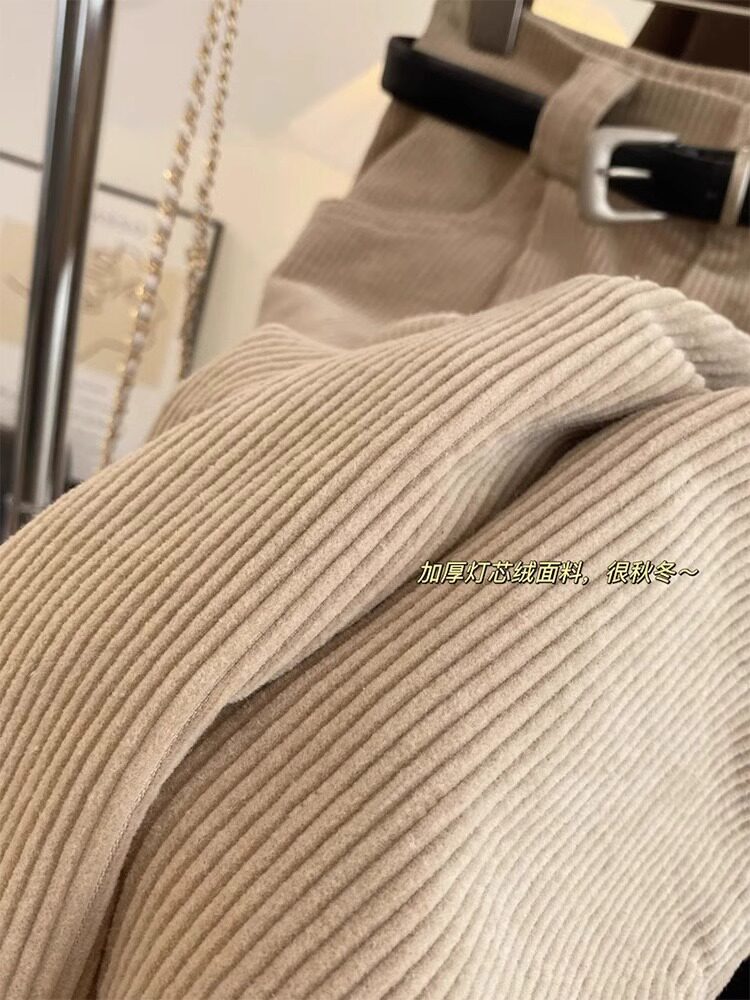 2025冬季加絨直筒燈芯絨休閒褲女大碼胖mm梨形身材高腰顯瘦濶腿褲