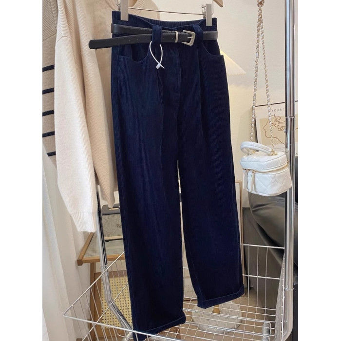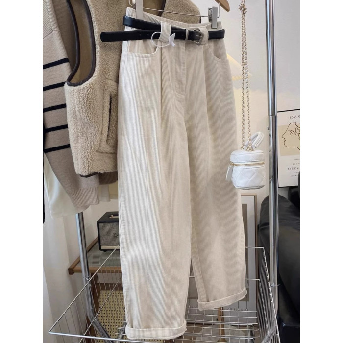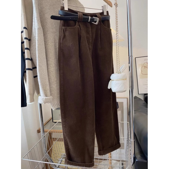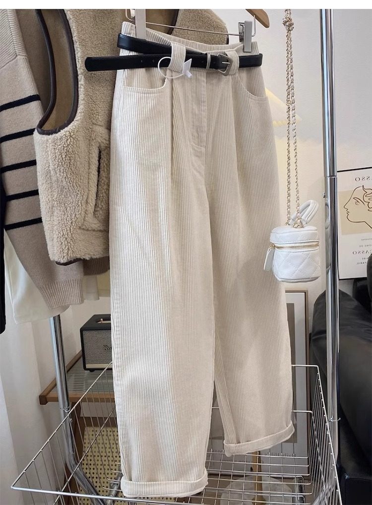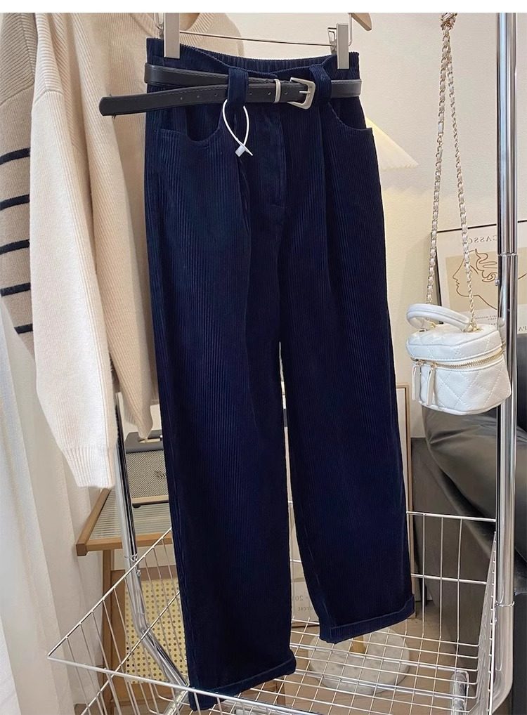2025冬季加絨直筒燈芯絨休閒褲女大碼胖mm梨形身材高腰顯瘦濶腿褲