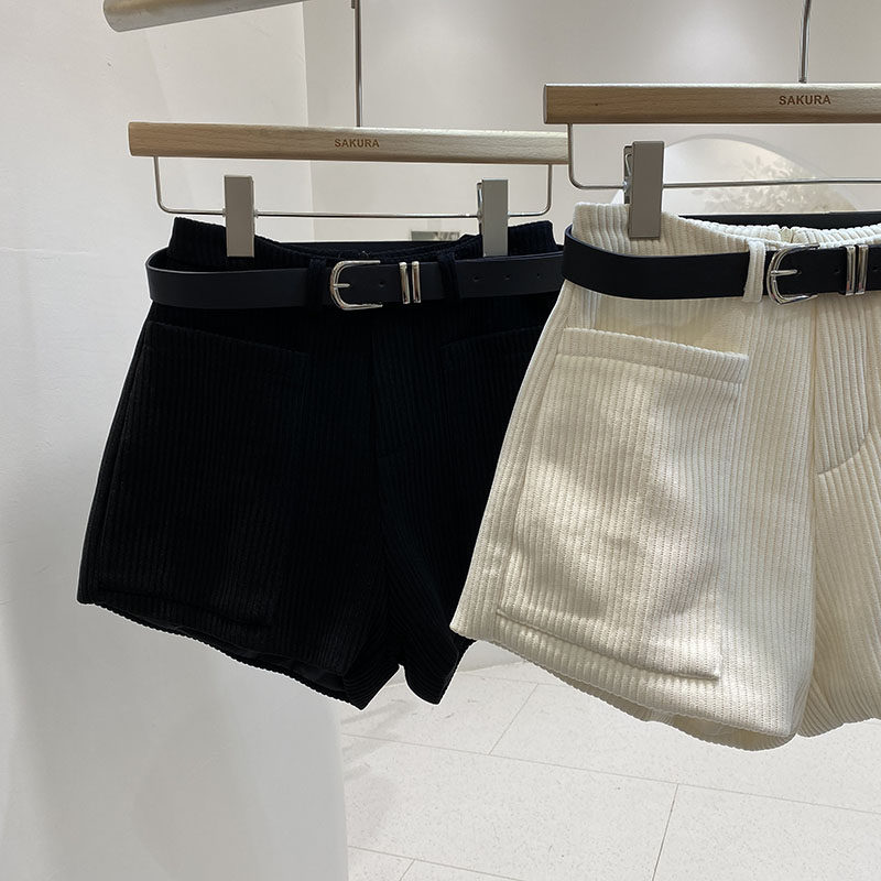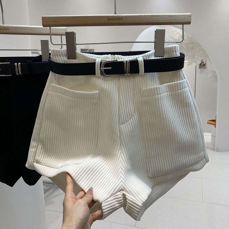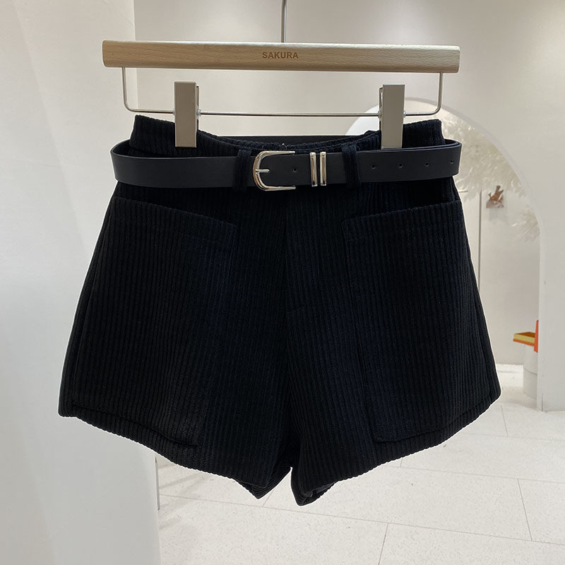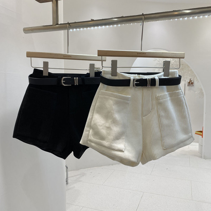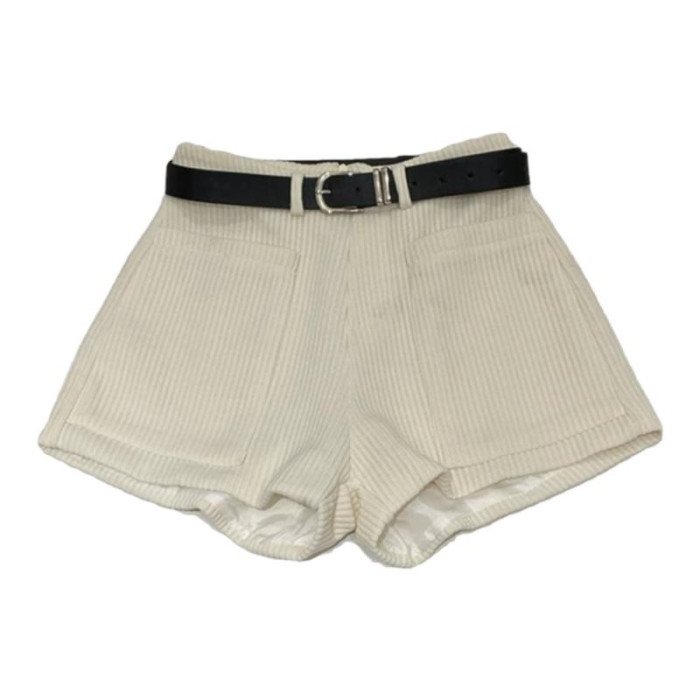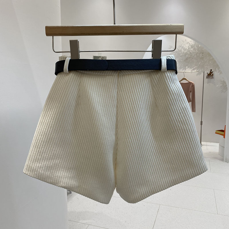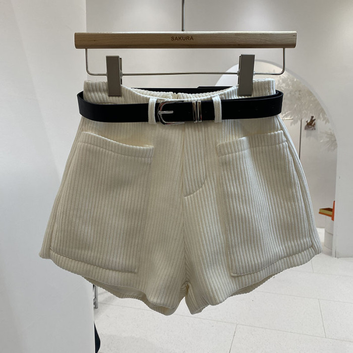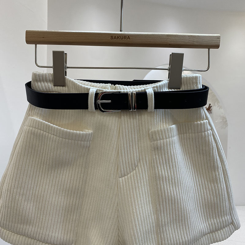 燈芯絨百搭休閒短褲女2024年春秋季新款韓版顯瘦高腰濶腿褲配腰帶