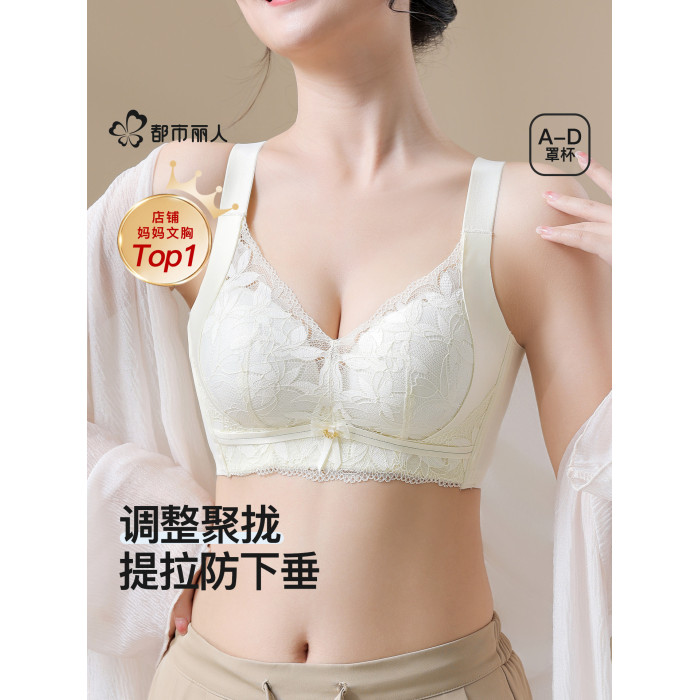 都市麗人媽媽內衣調整型聚攏提拉防下垂無鋼圈中年婦女蕾絲文胸罩