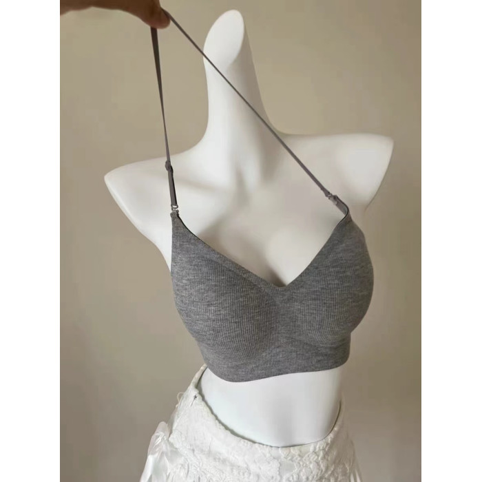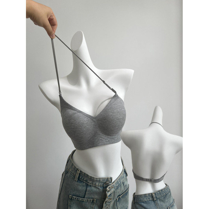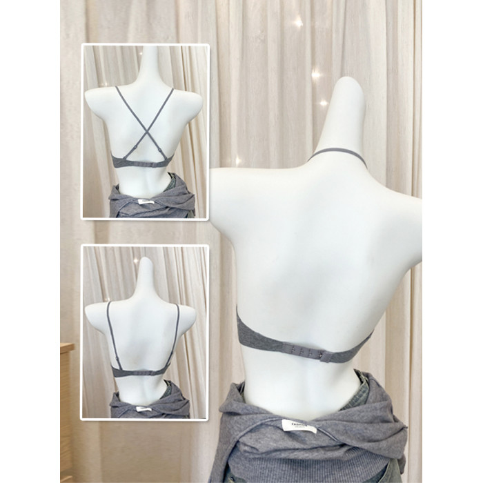 掛脖吊帶美背小胸顯大聚攏內衣女細肩帶無痕交叉露背大u型文胸罩