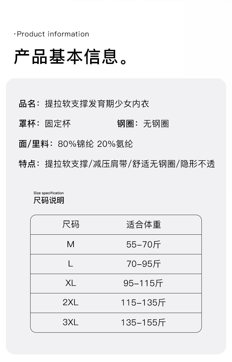高中生少女背心內衣女學生初中發育期定型青少年女孩運動文胸女童