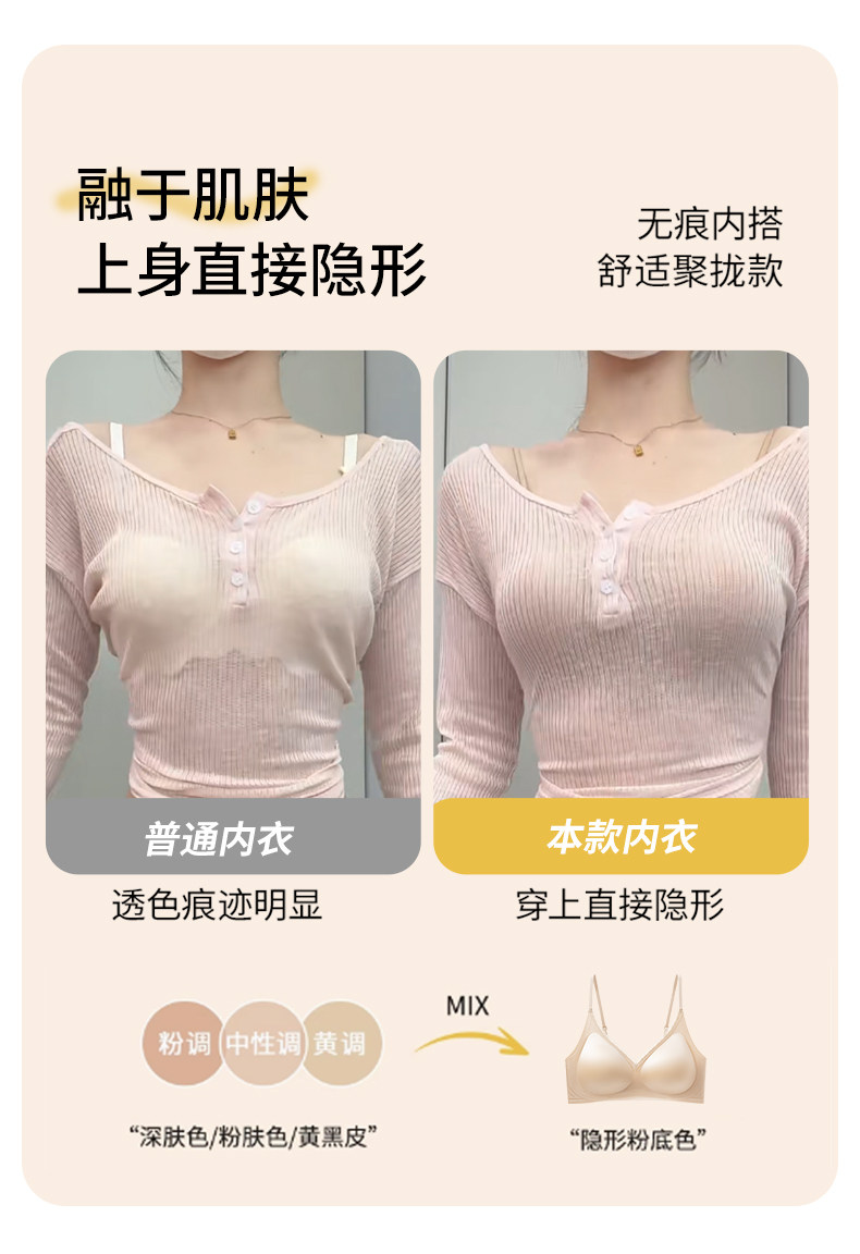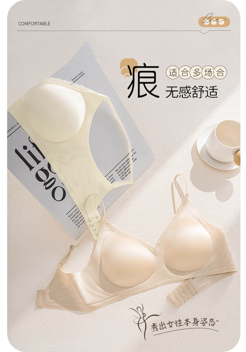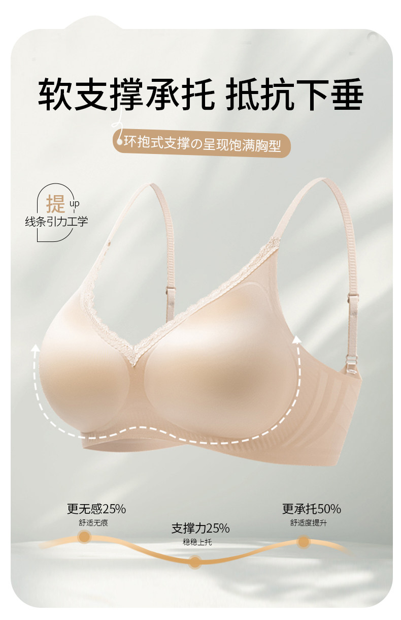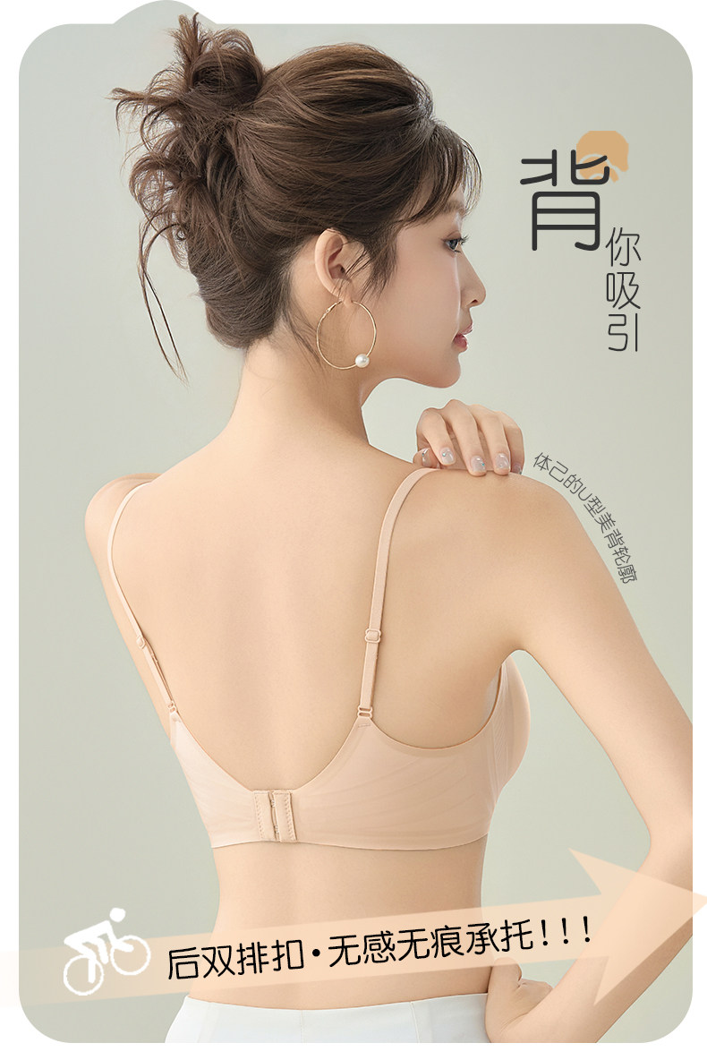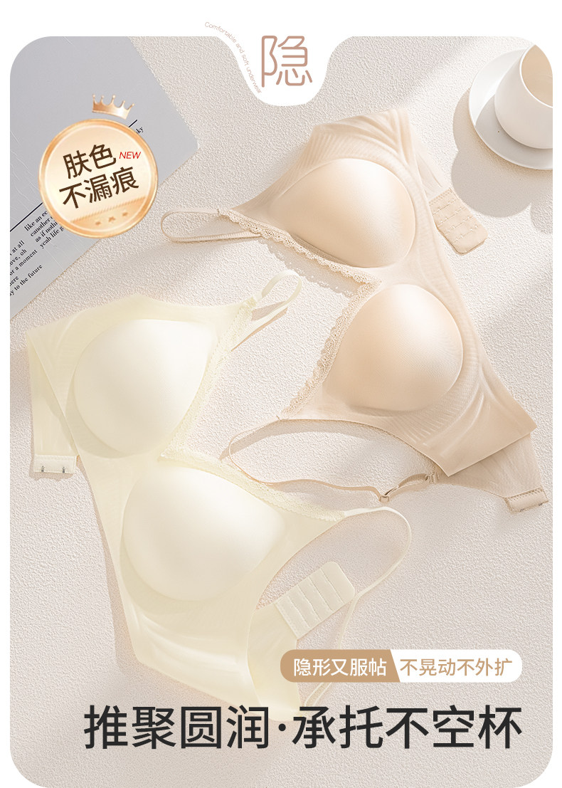 細肩帶無痕內衣女士小胸聚攏收副乳防下垂外擴顯大粉底液文胸罩