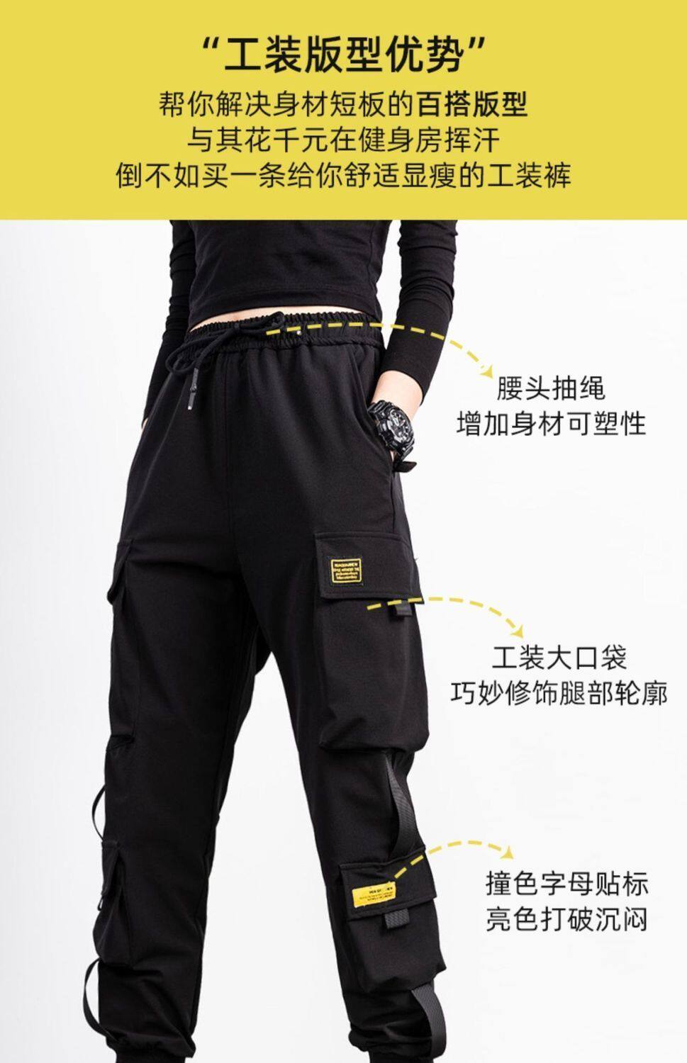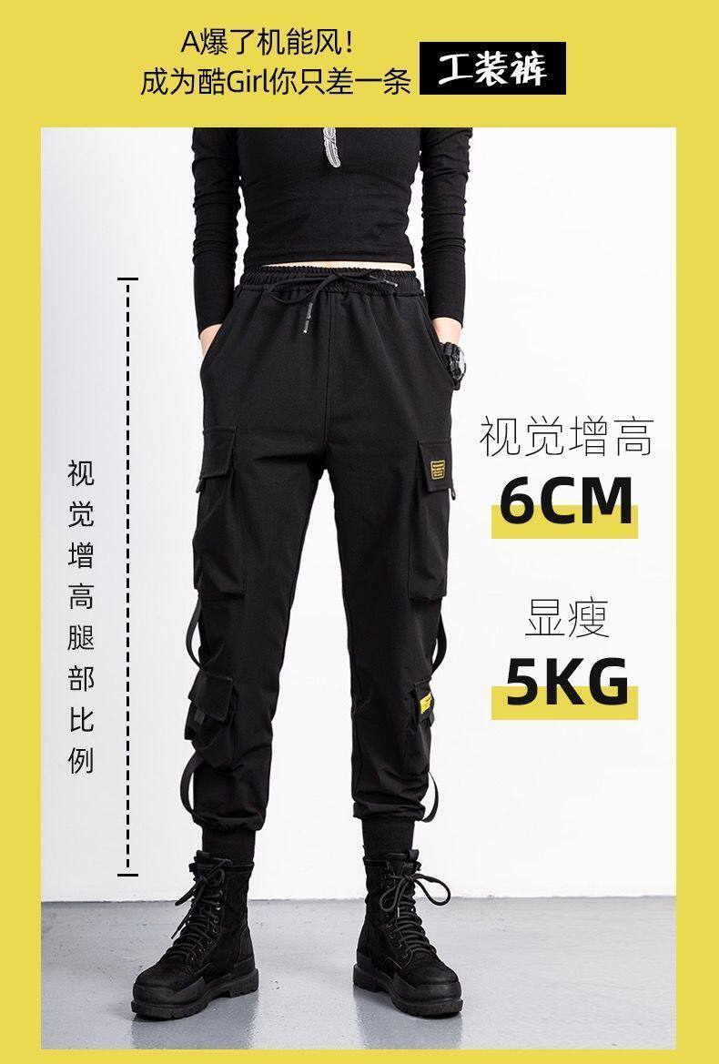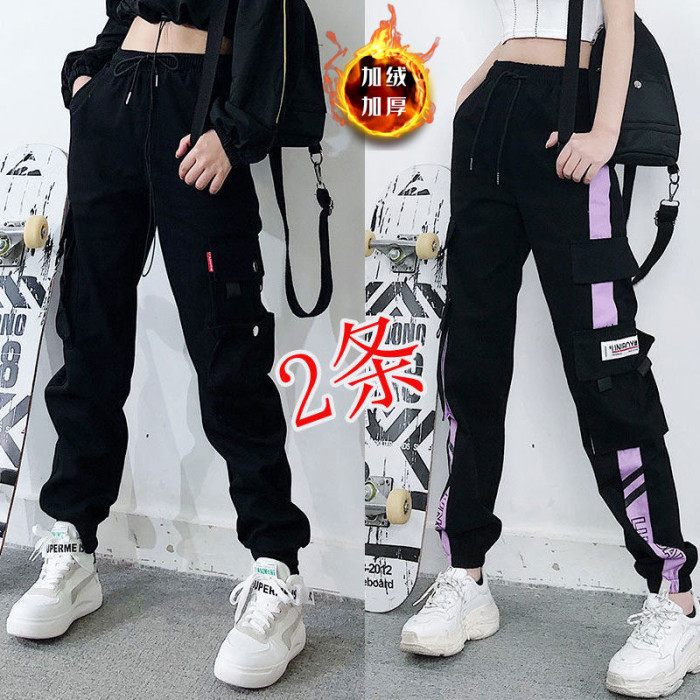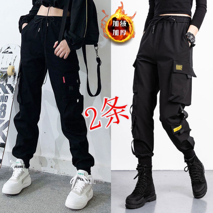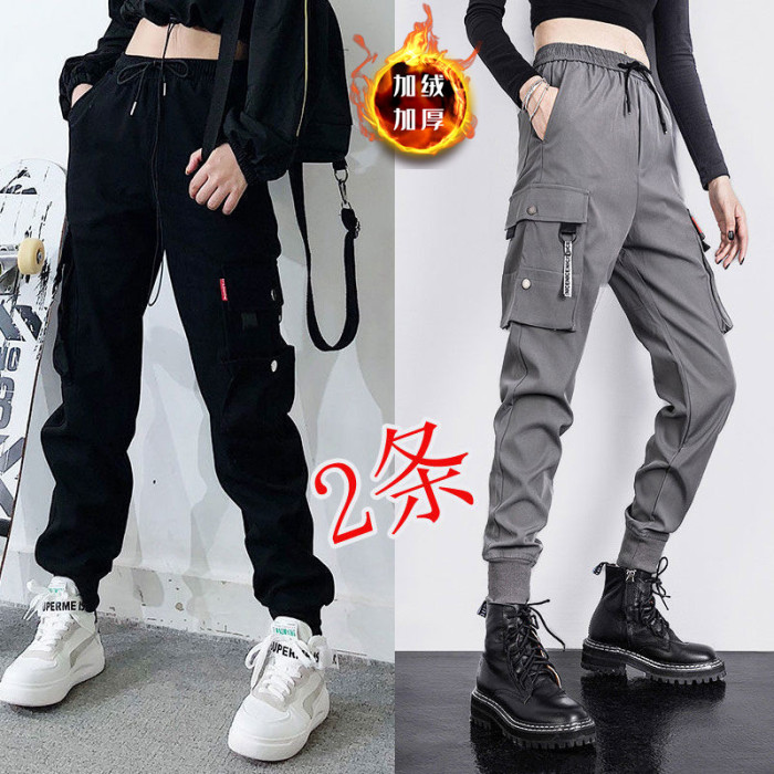 2件裝】多口袋秋冬加絨百搭工裝褲顯瘦高腰韓版女胖妹妹大碼ins潮