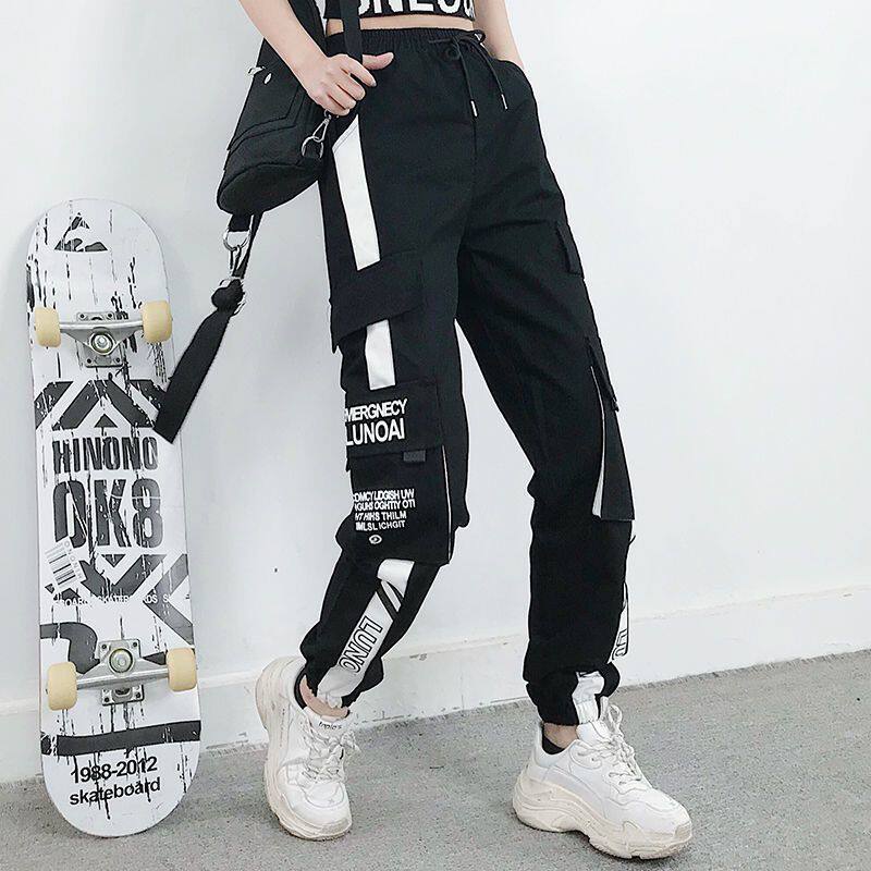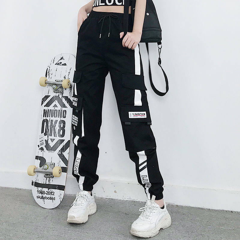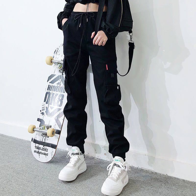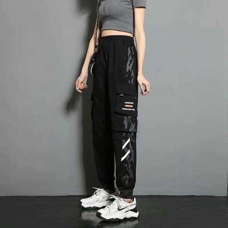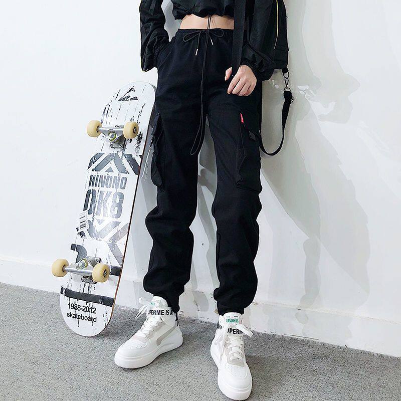 2件裝】多口袋秋冬加絨百搭工裝褲顯瘦高腰韓版女胖妹妹大碼ins潮