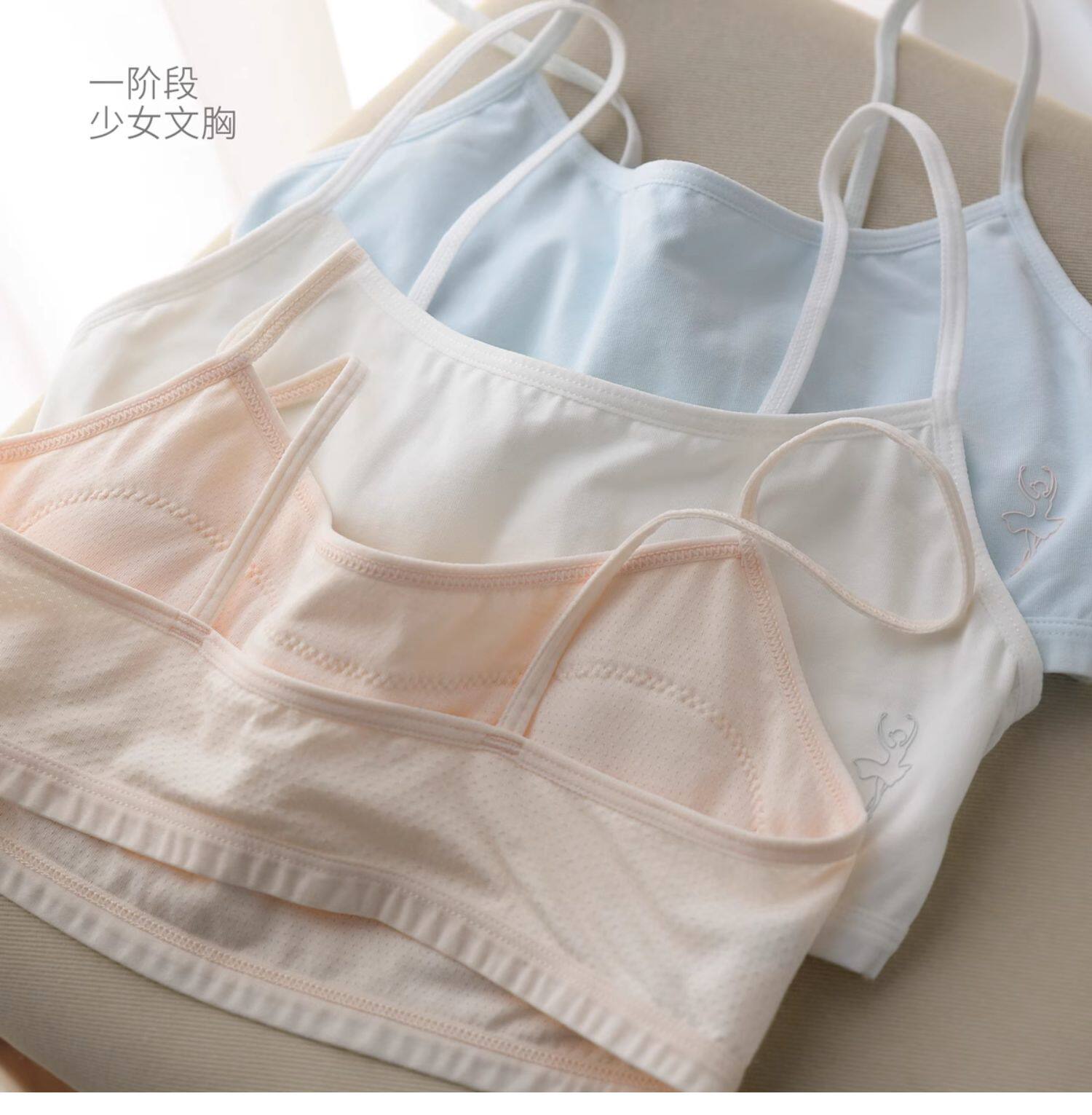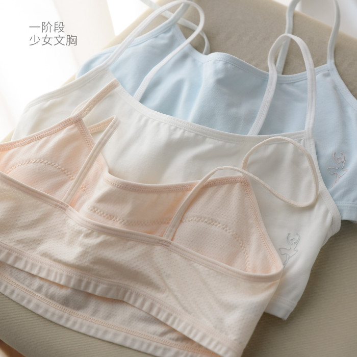 女童一階段少女文胸 發育期一體式內衣 防凸點薄款吊帶背心四季款