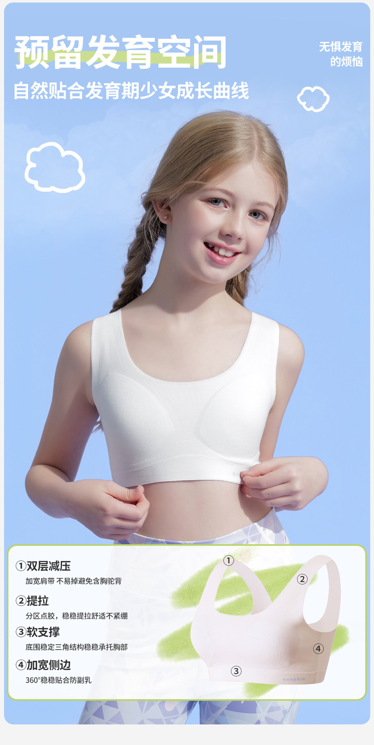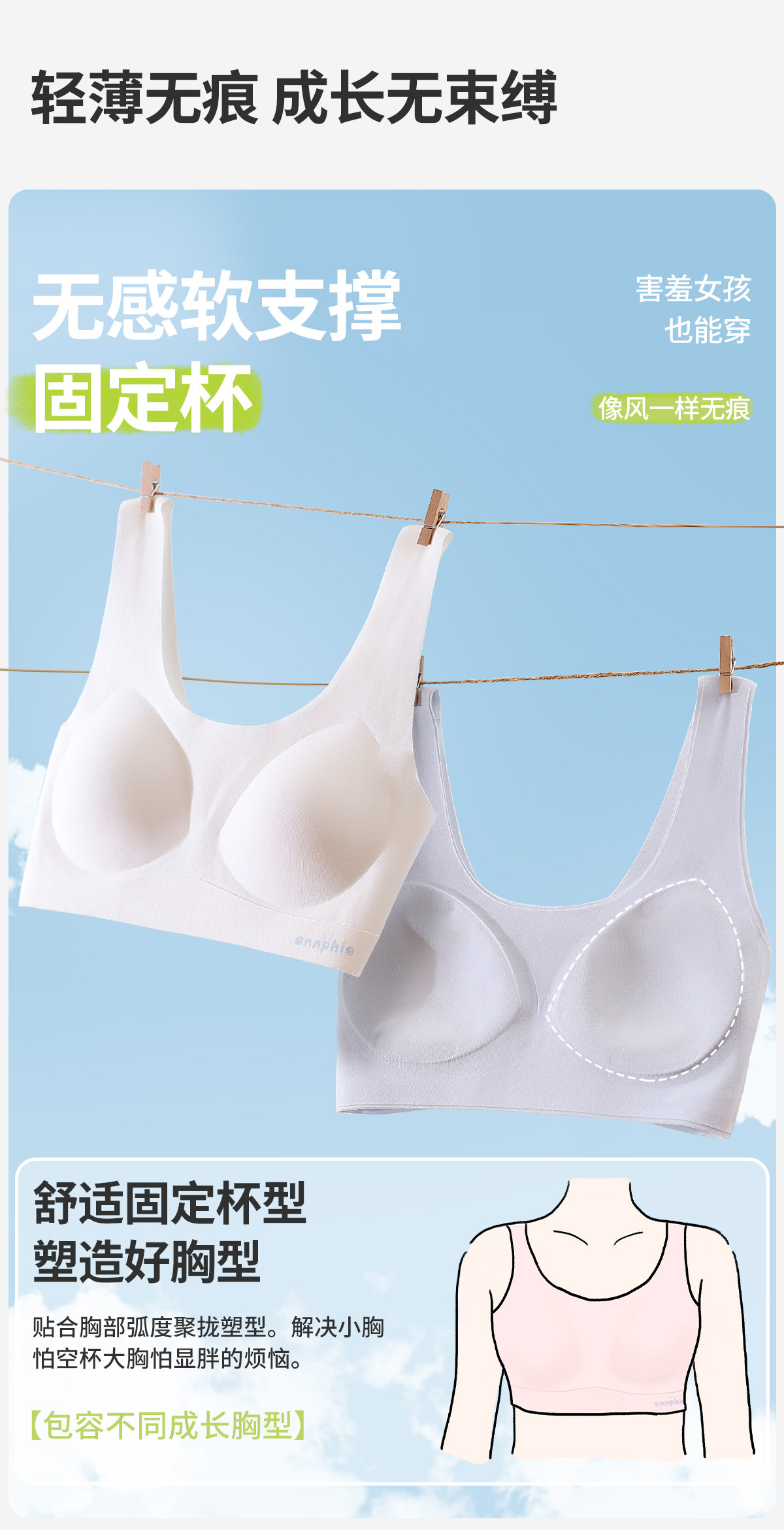 少女內衣初中高中學生二三階段青春發育期背心蠶絲少女運動文胸