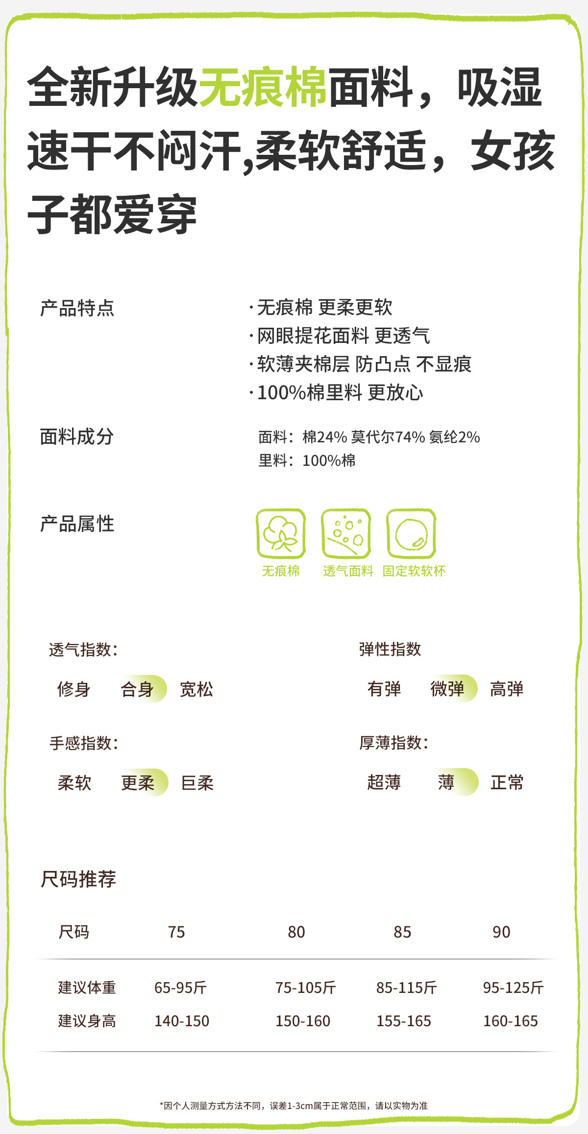 | 罩杯厚度 | 薄棉杯 |