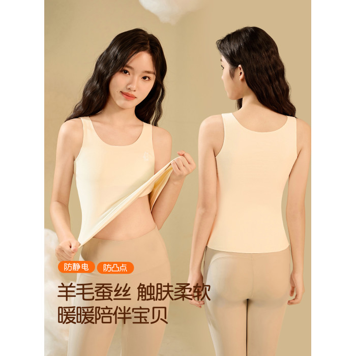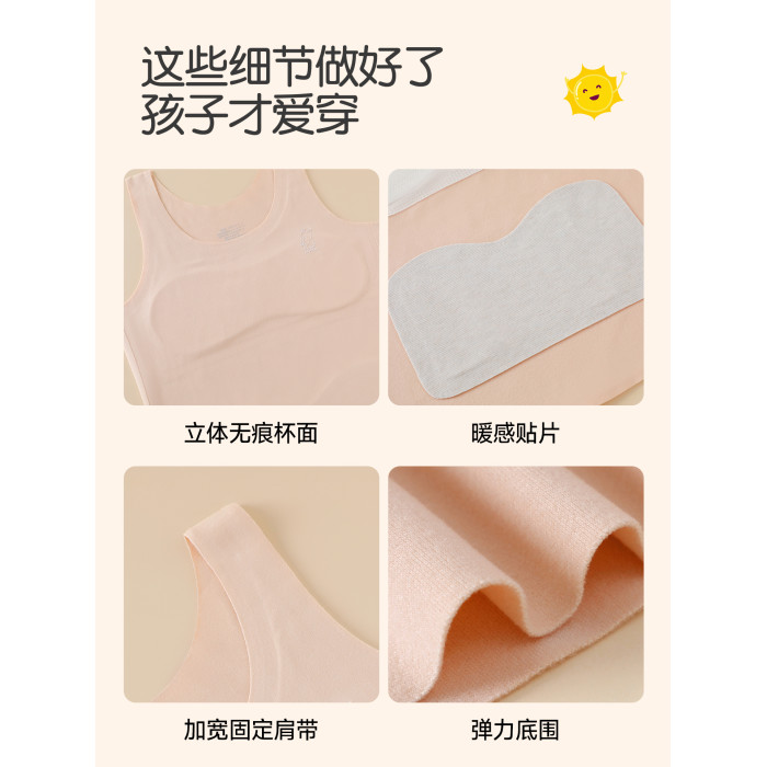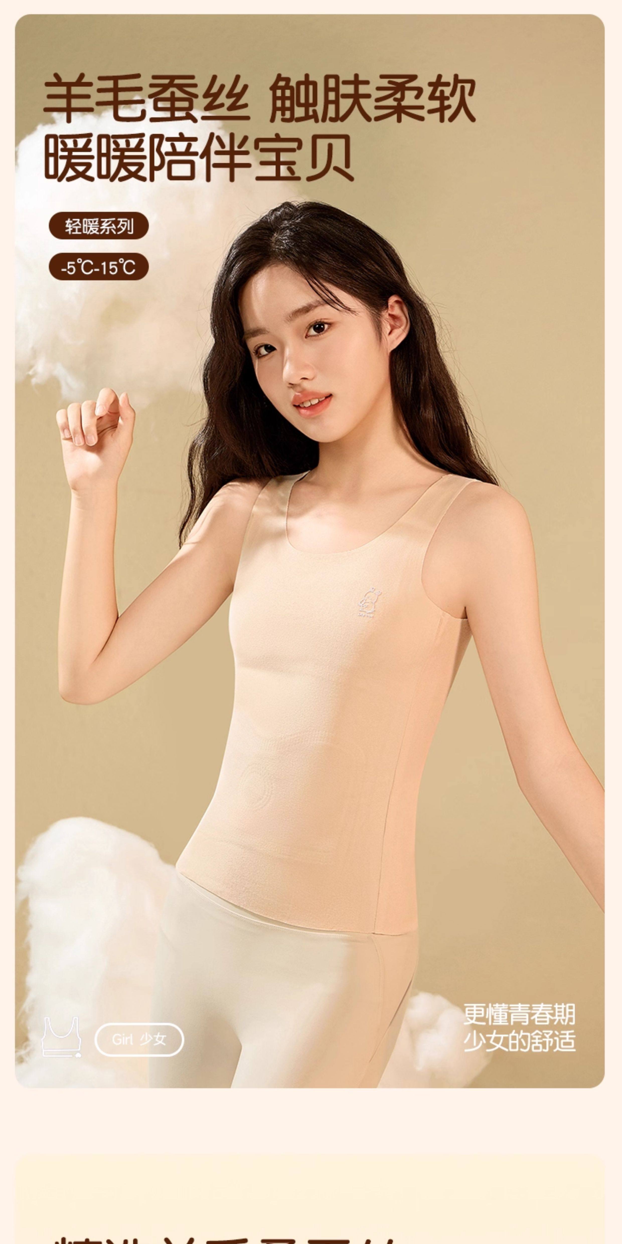 貓人秋冬兒童保暖背心內衣女生內穿羊毛蠶絲發熱護肚不凸點發育期