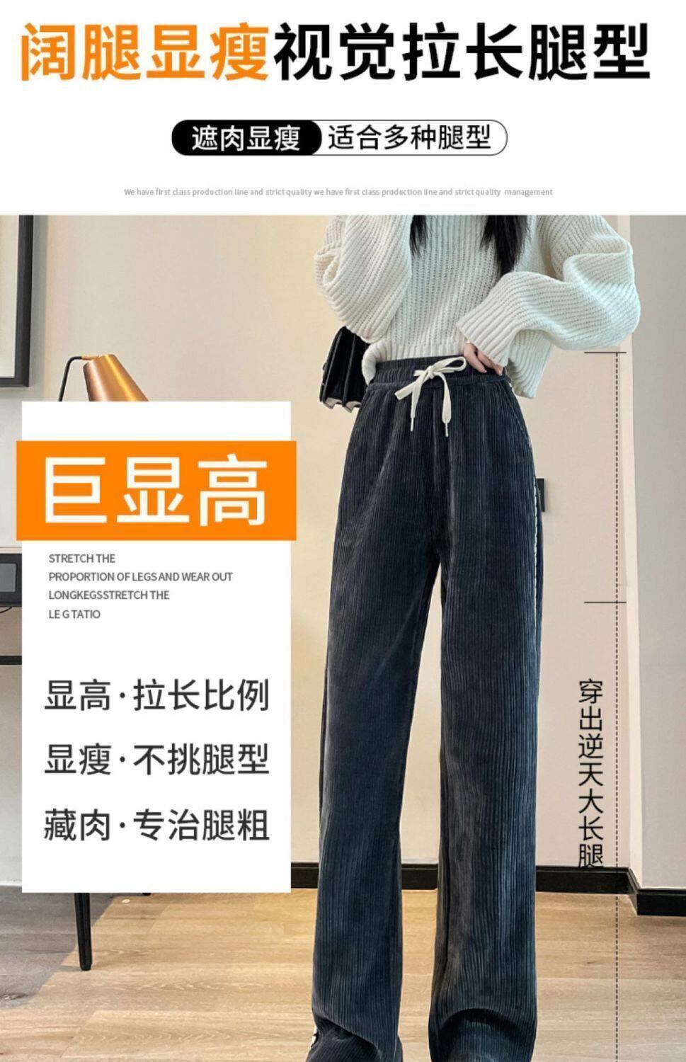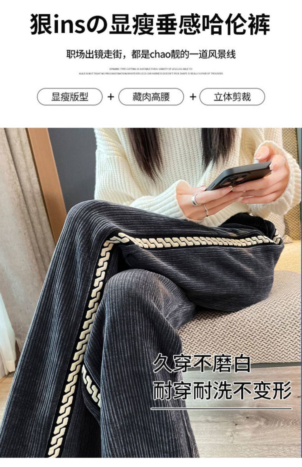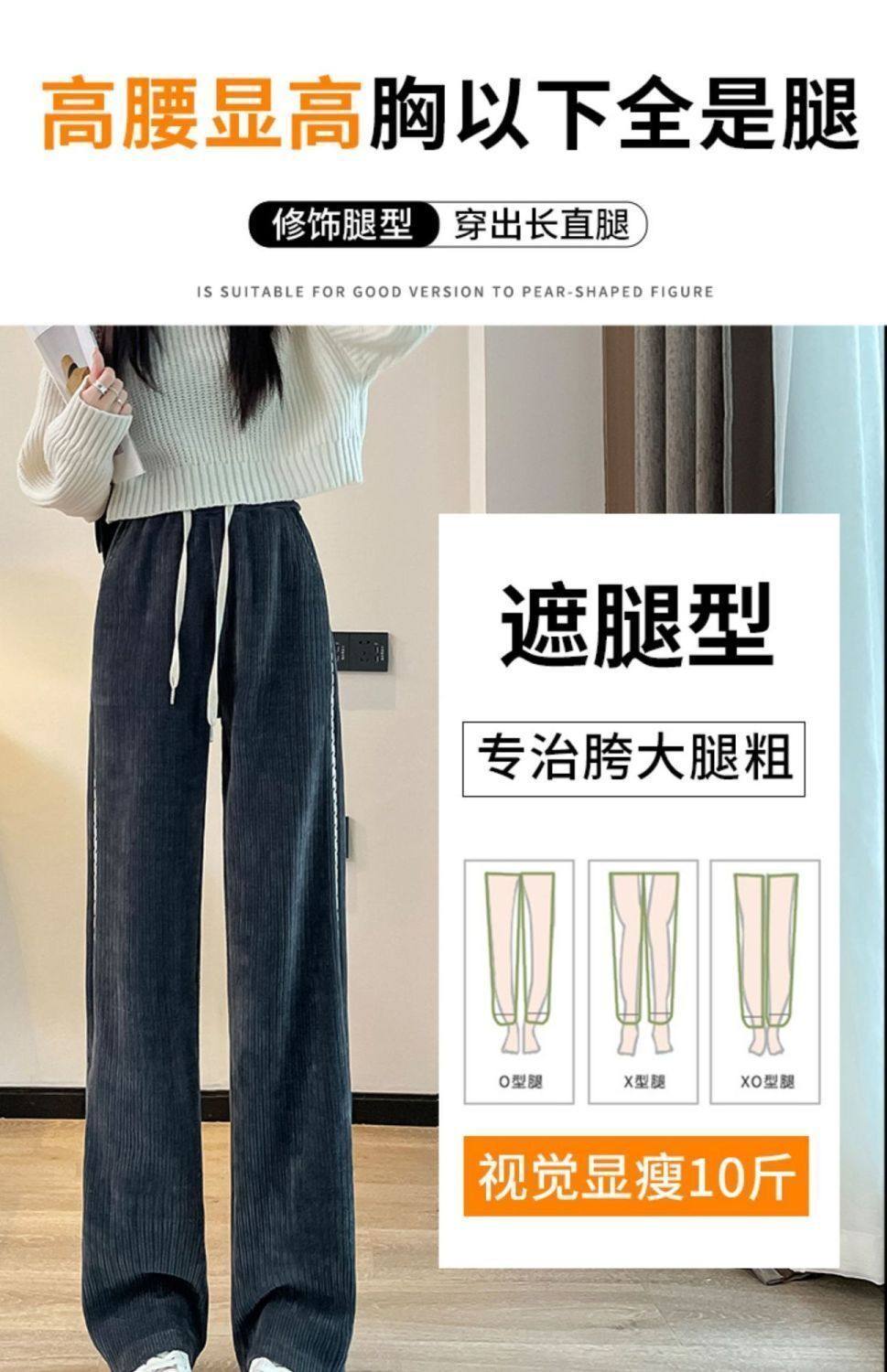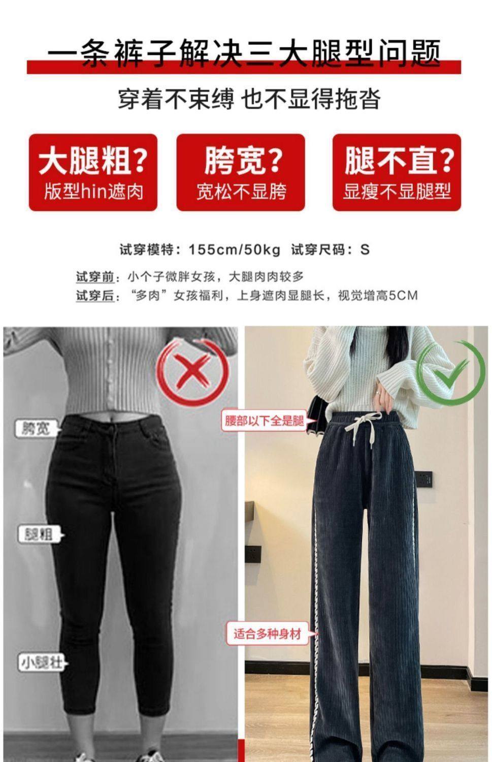 300斤胖mm特大碼雪尼爾濶腿褲女秋冬高腰窄版加絨直筒顯瘦休閒褲2