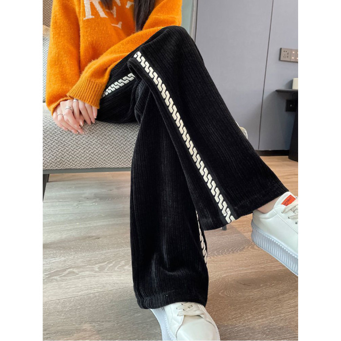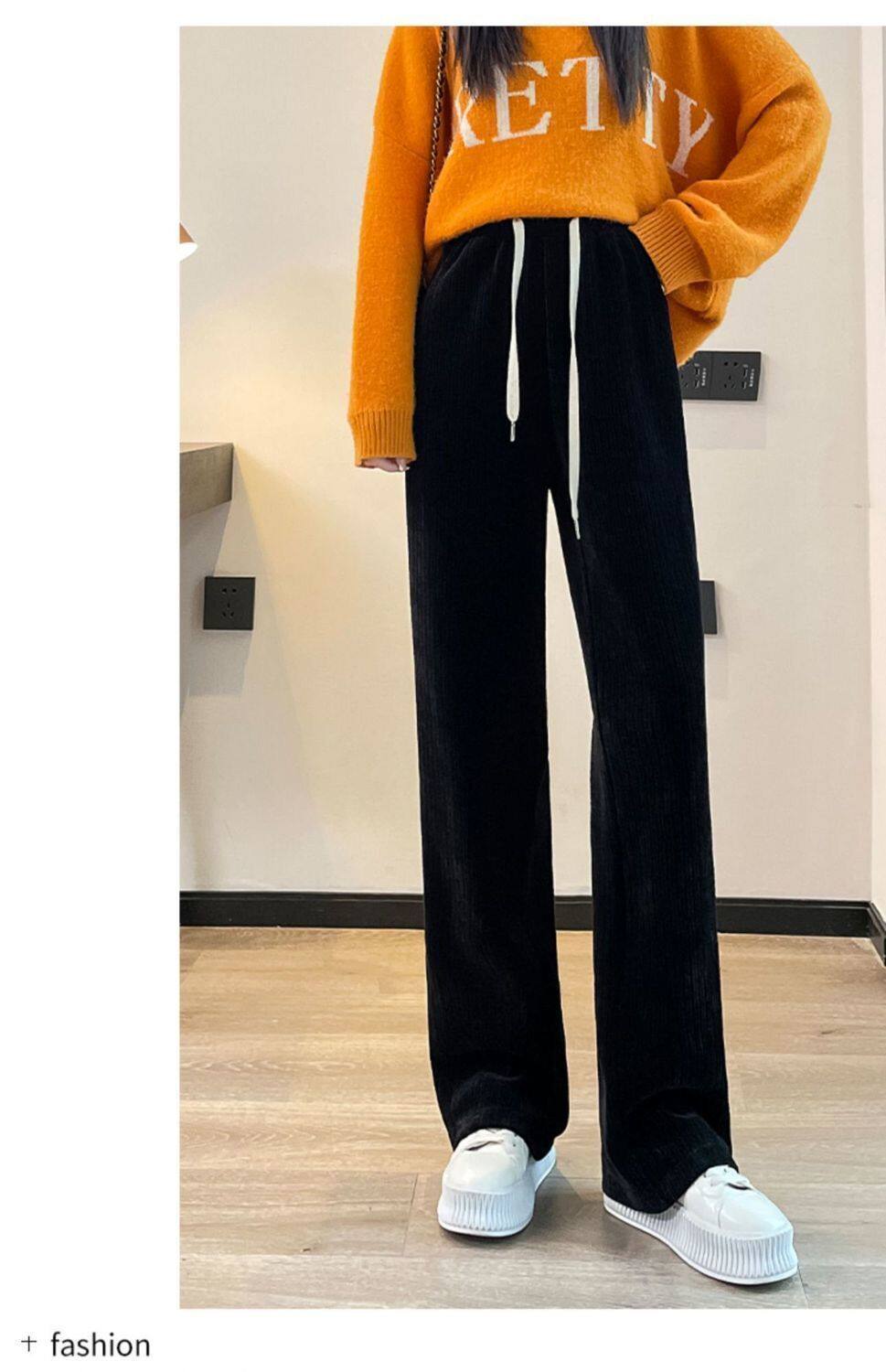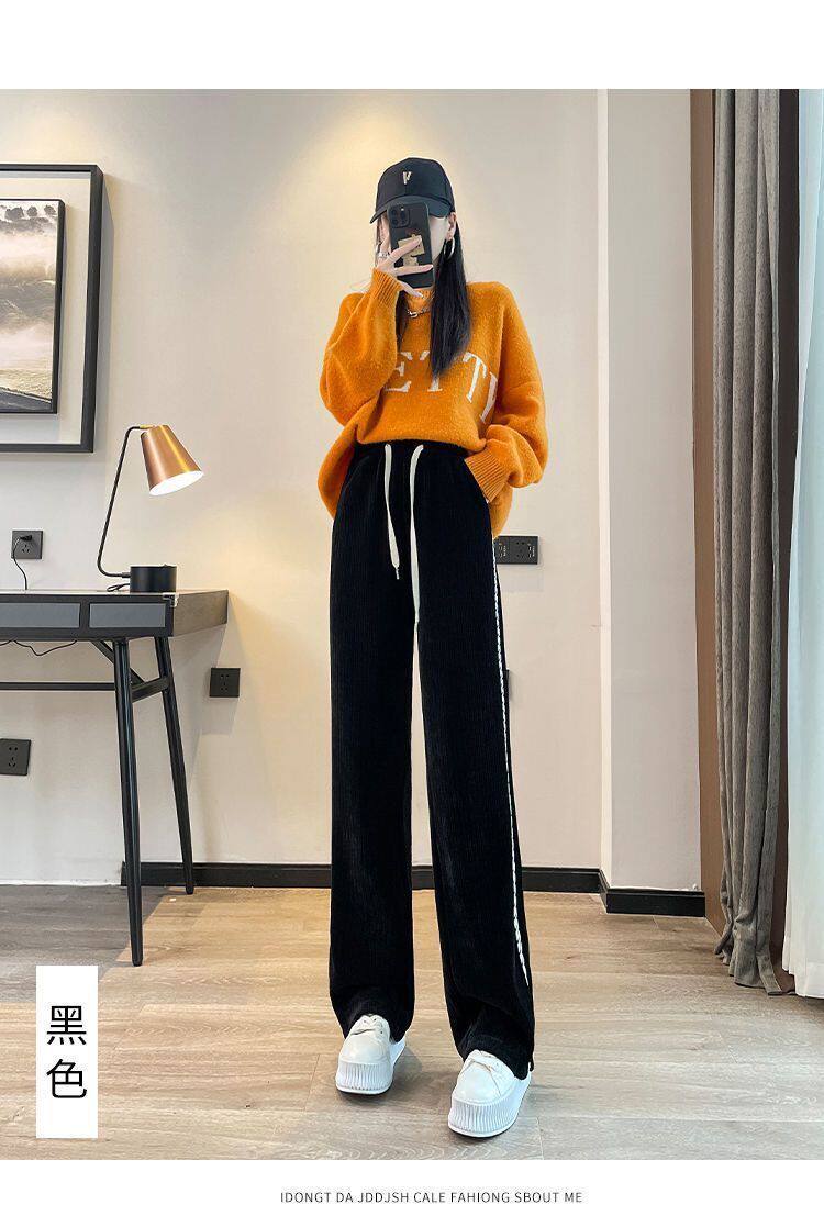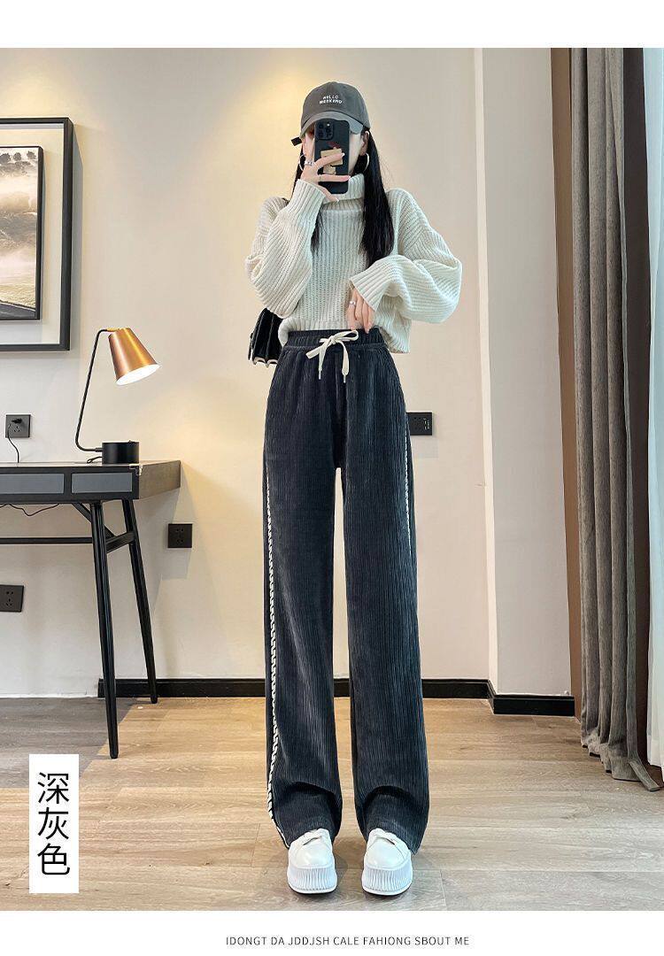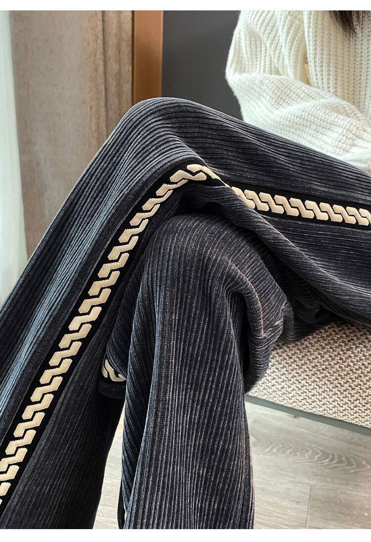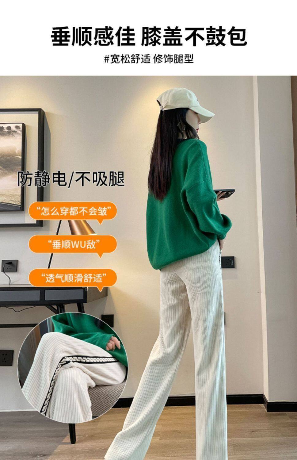 300斤胖mm特大碼雪尼爾濶腿褲女秋冬高腰窄版加絨直筒顯瘦休閒褲2