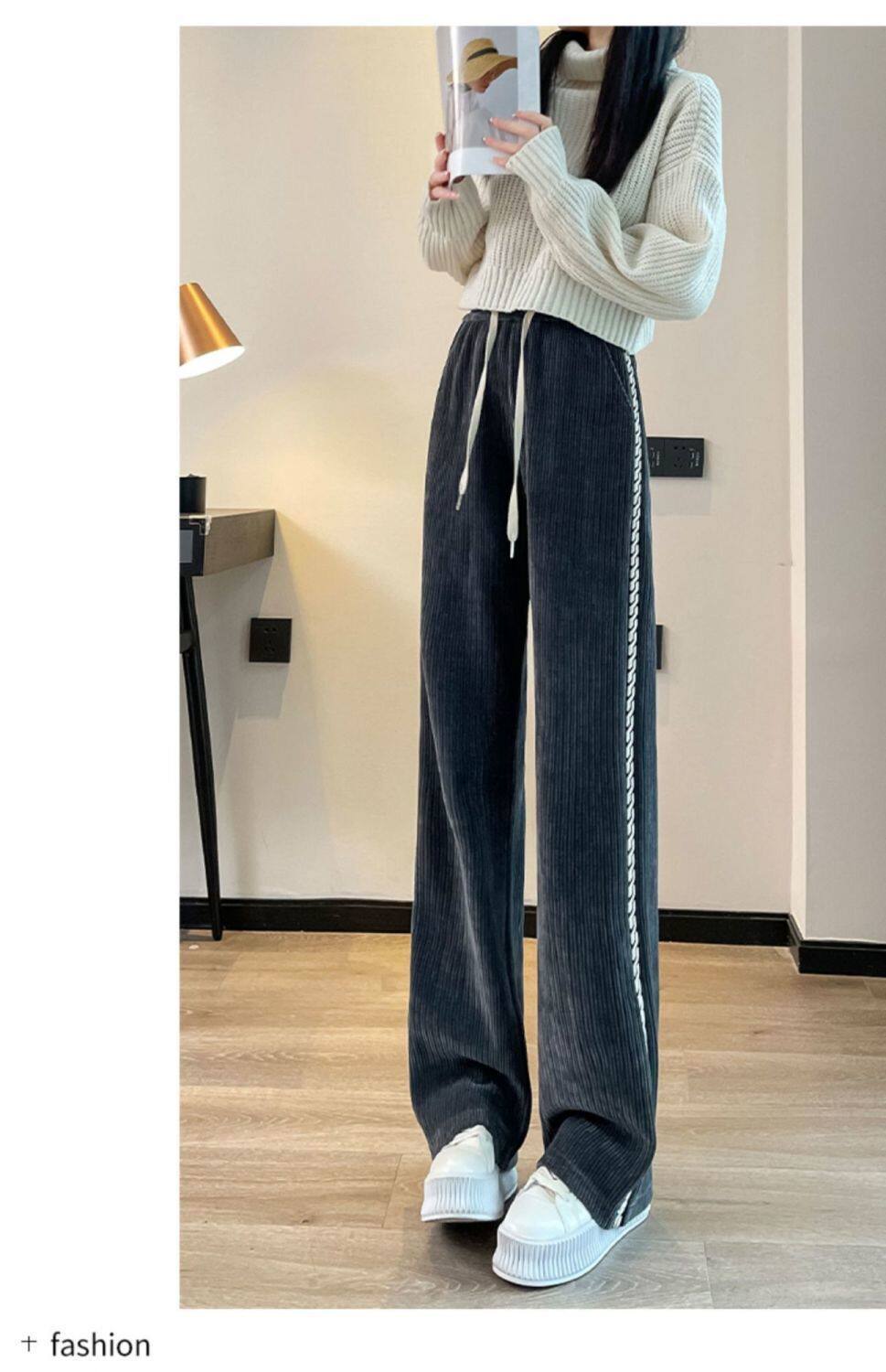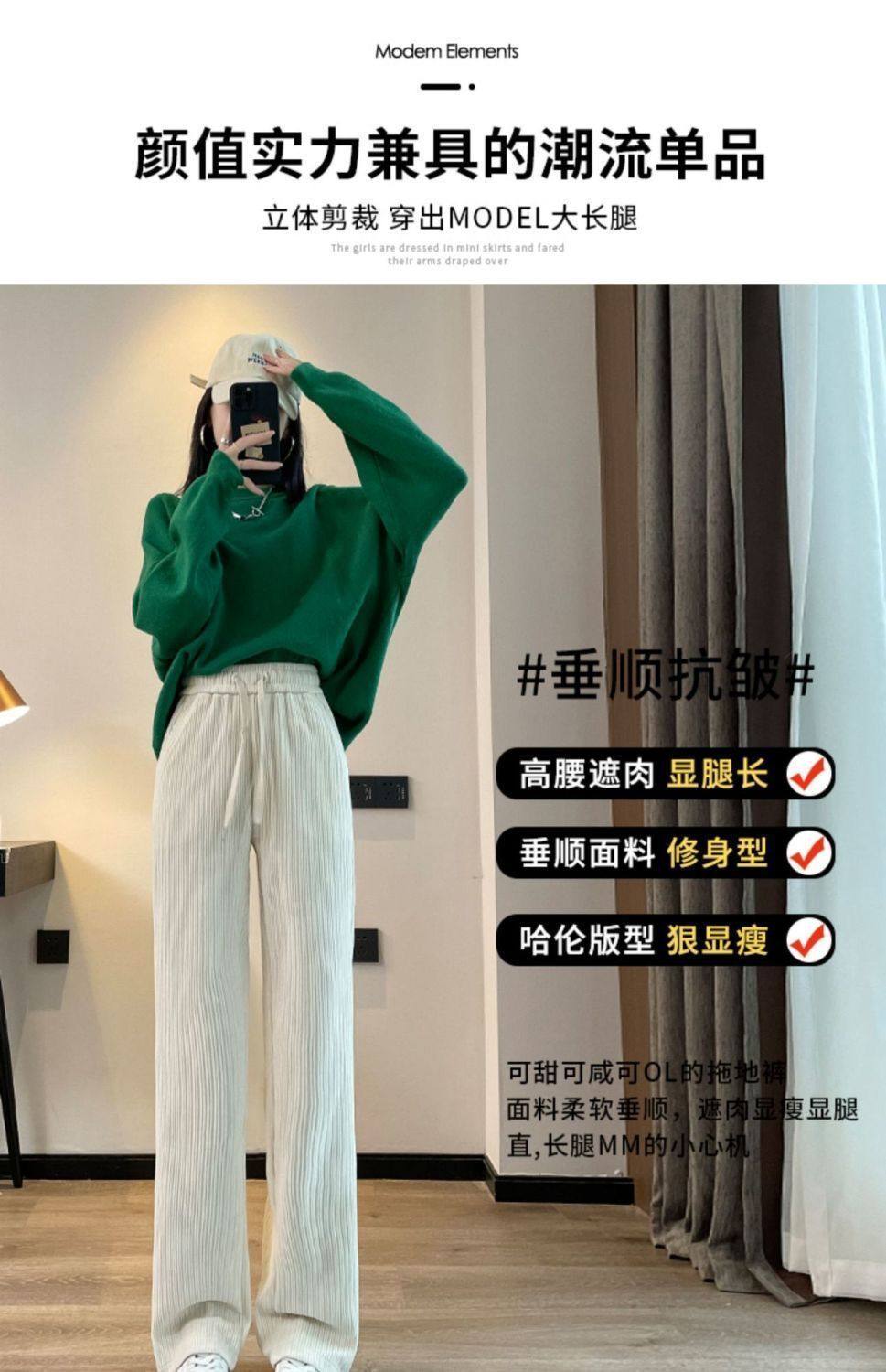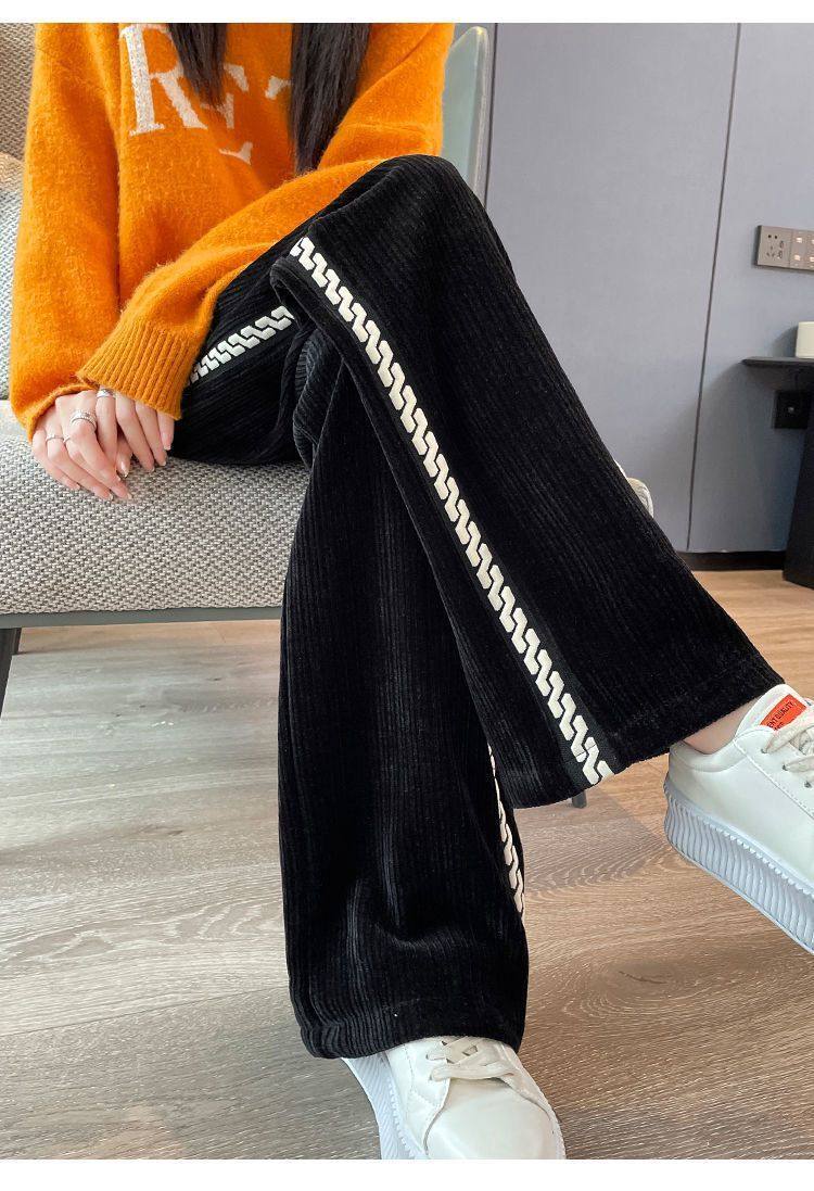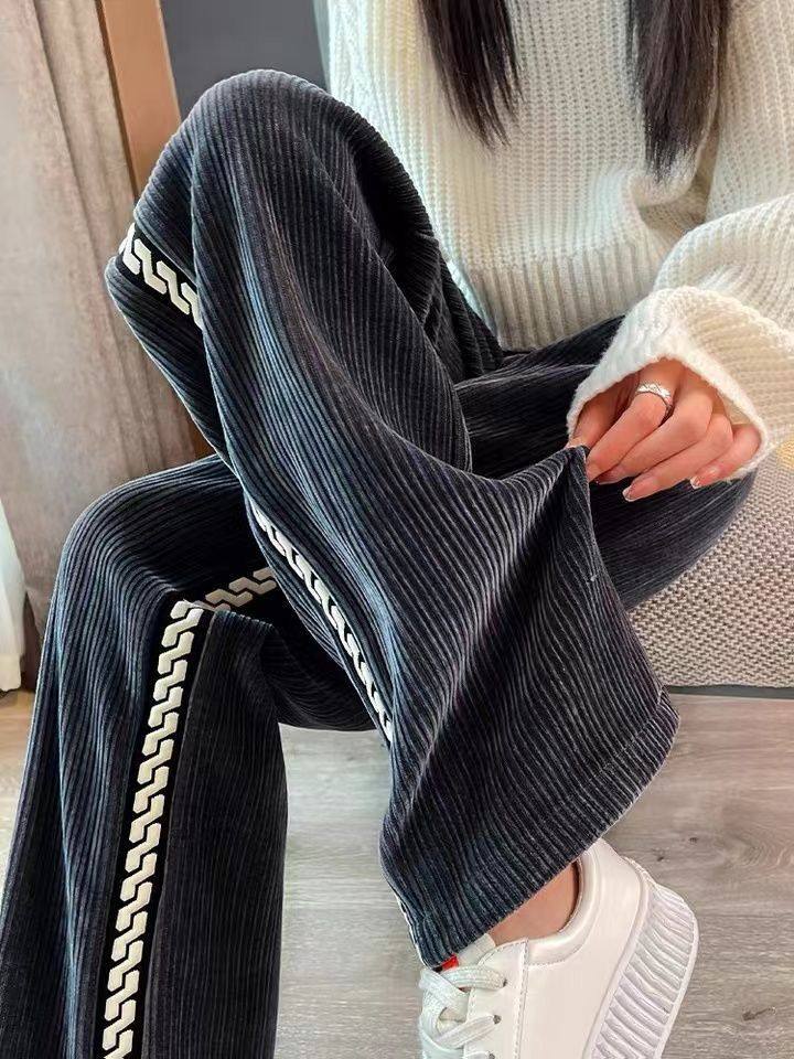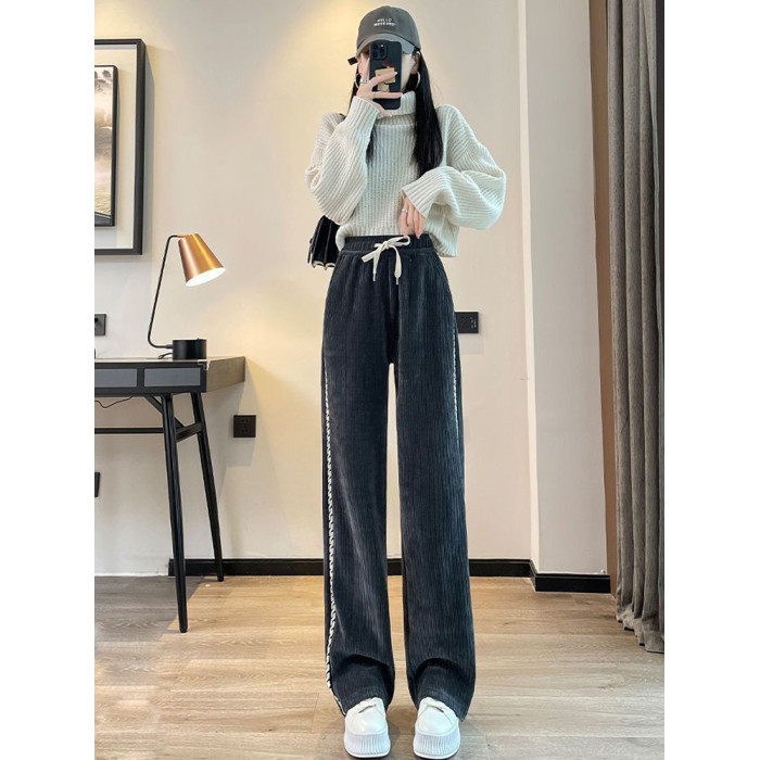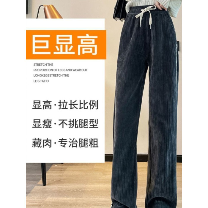 300斤胖mm特大碼雪尼爾濶腿褲女秋冬高腰窄版加絨直筒顯瘦休閒褲2