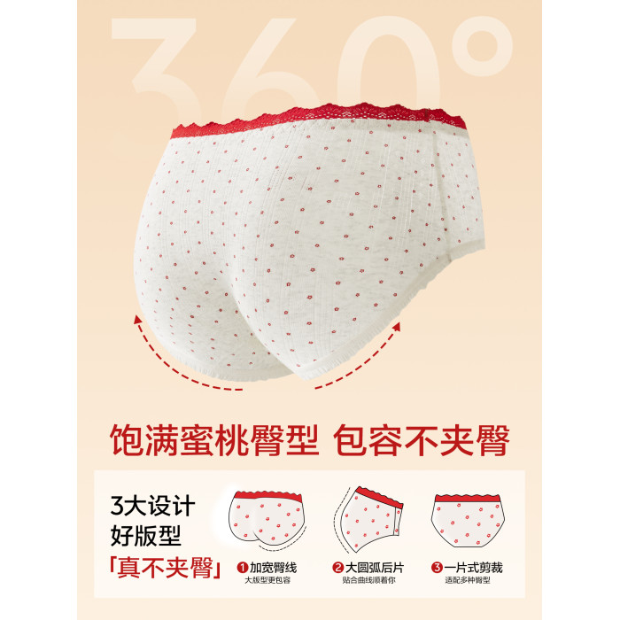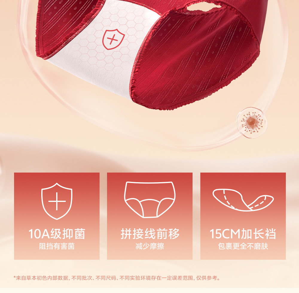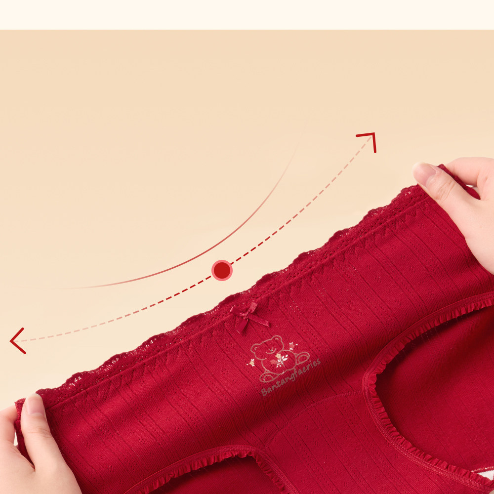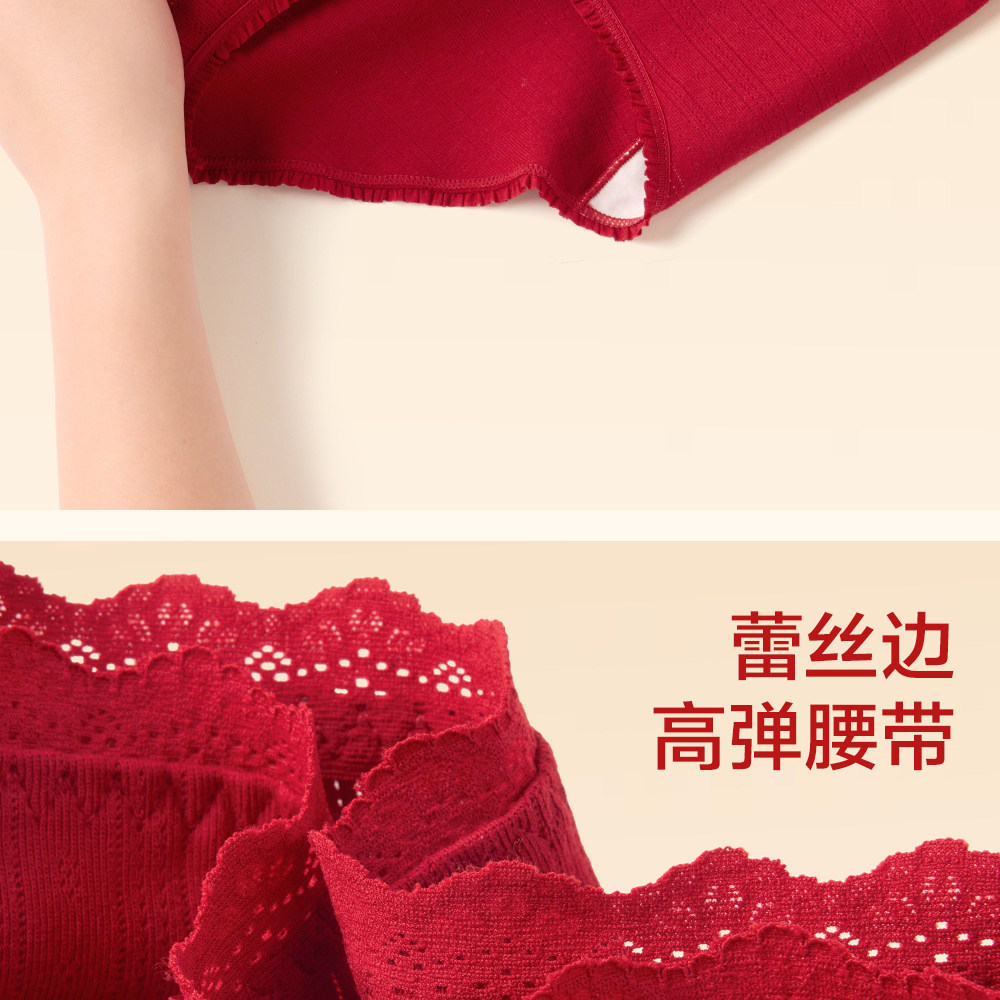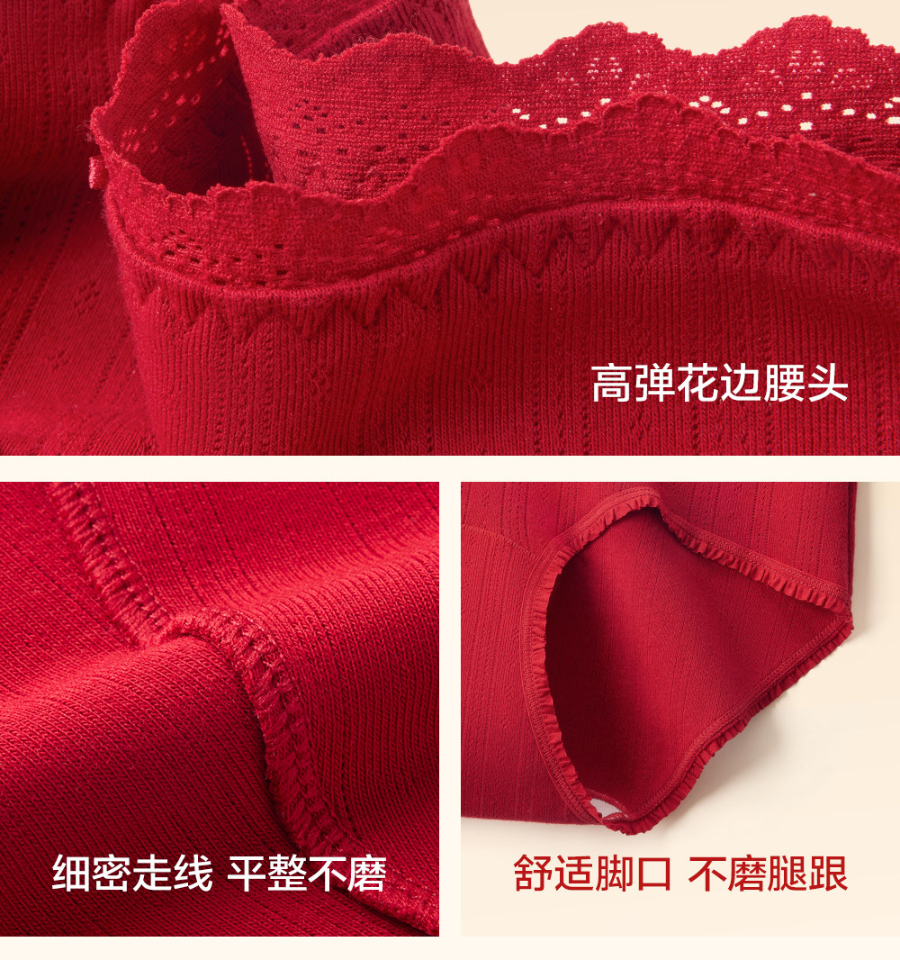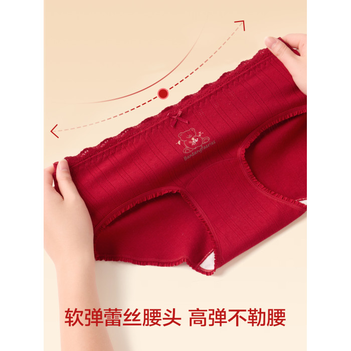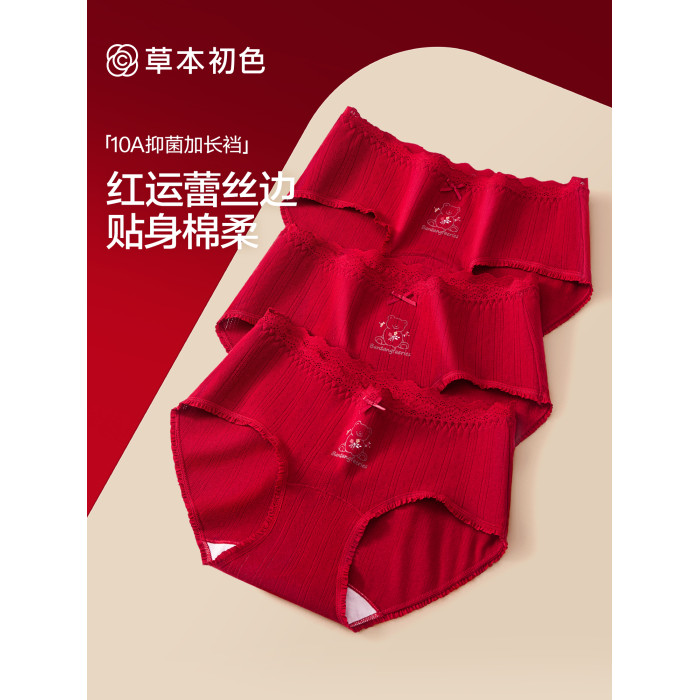 草本初色內褲女本命年紅純棉抑菌襠新款中腰蕾絲邊結婚馬年三角褲
