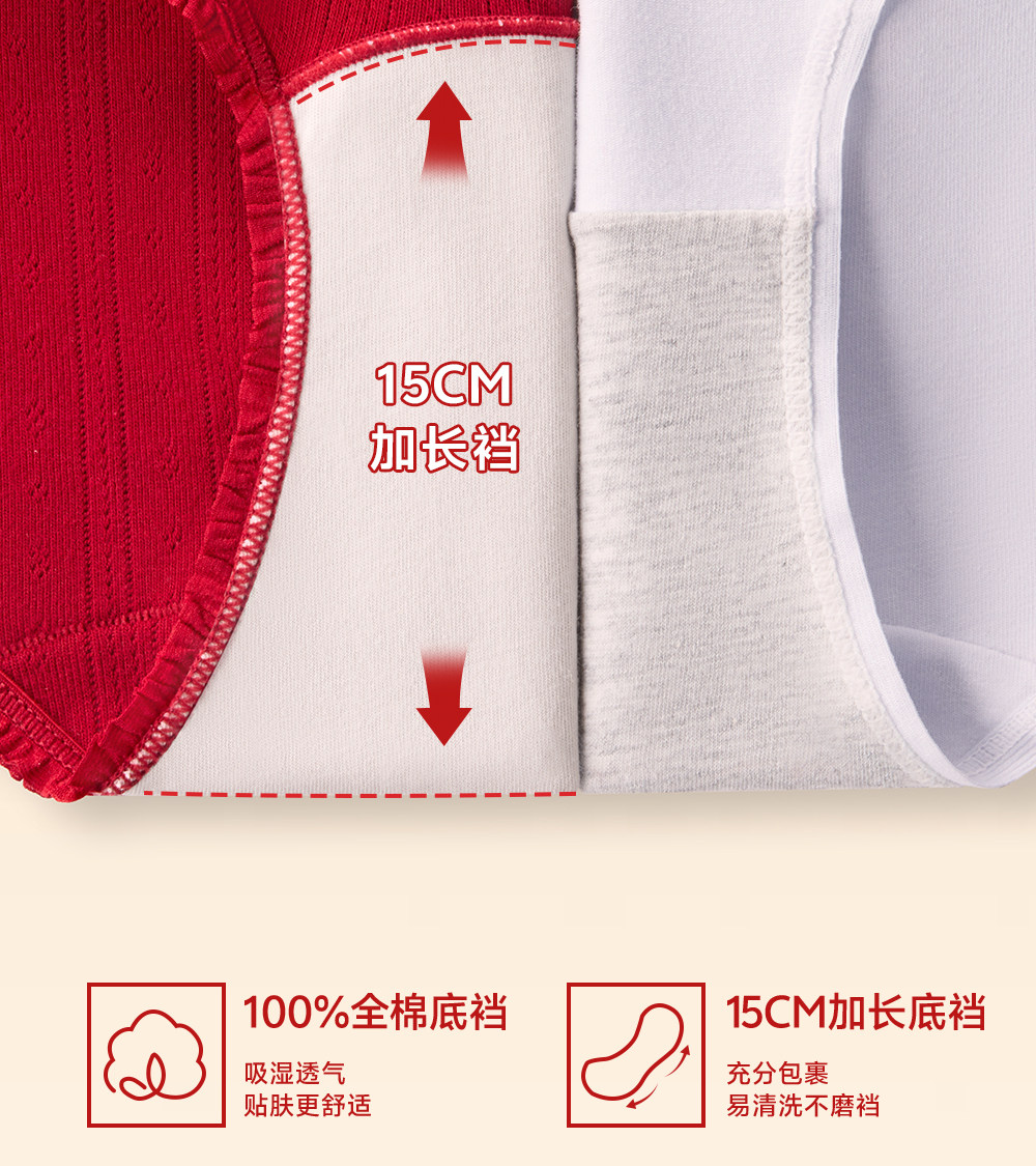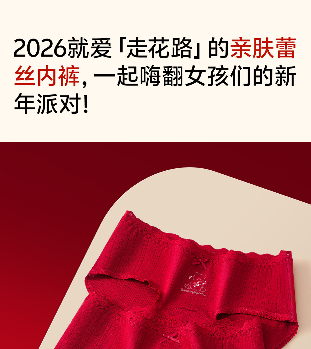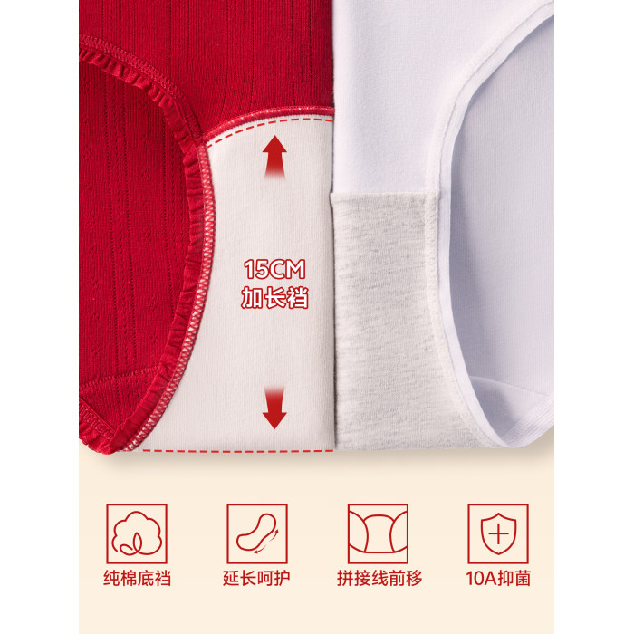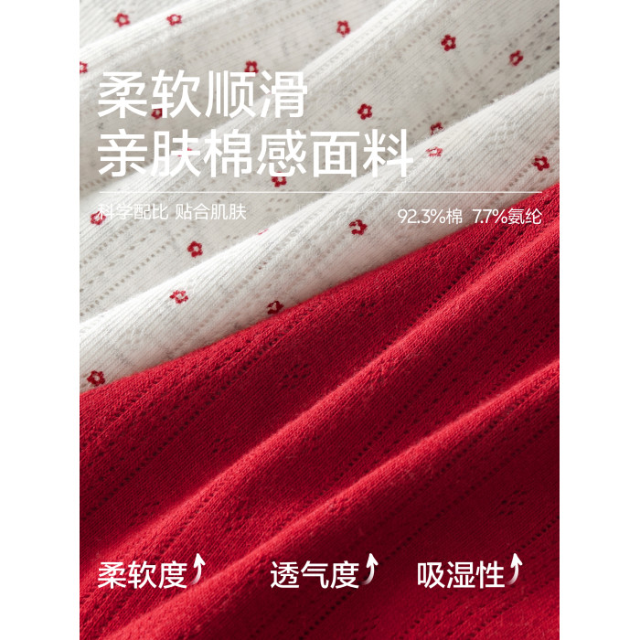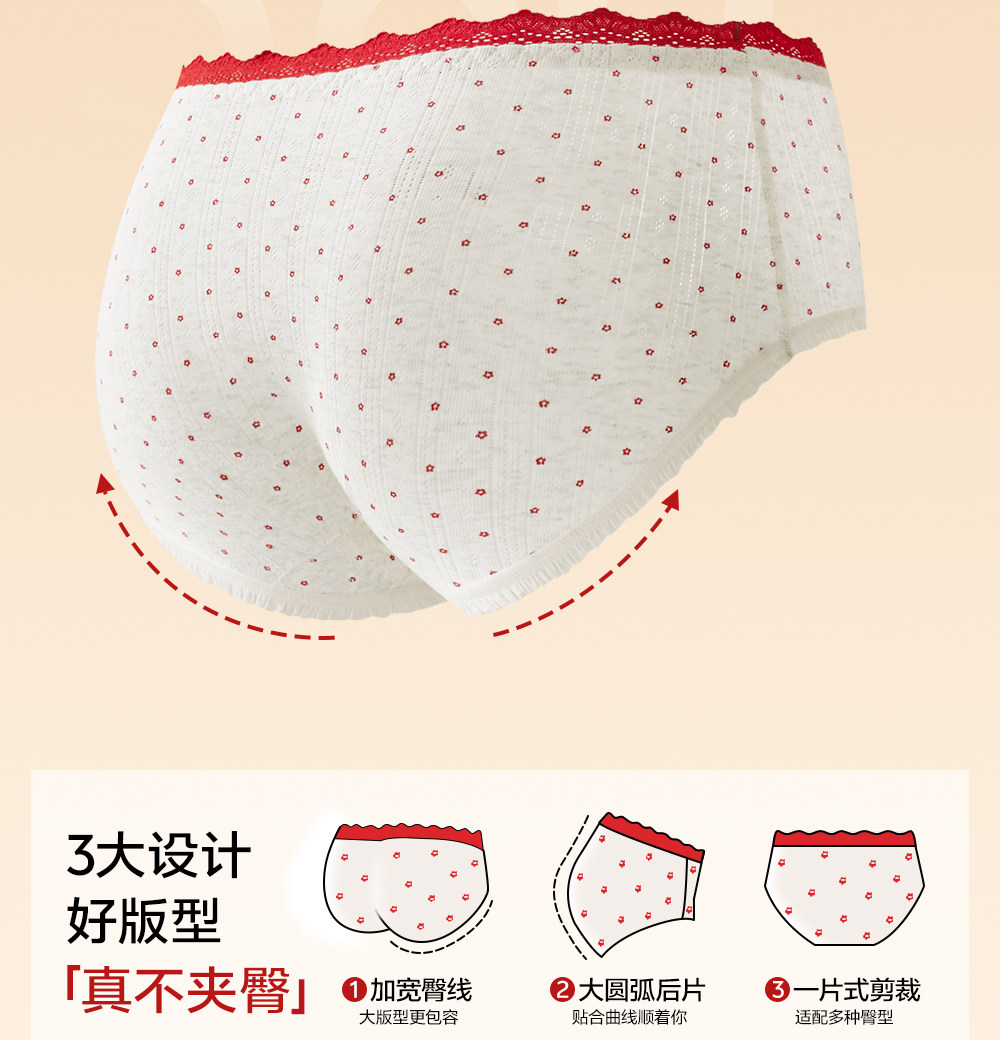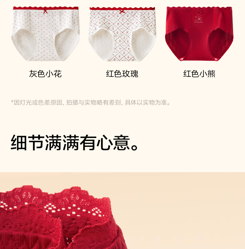 草本初色內褲女本命年紅純棉抑菌襠新款中腰蕾絲邊結婚馬年三角褲