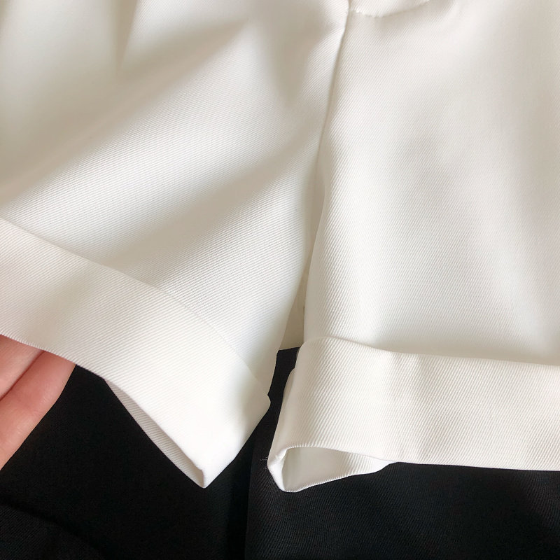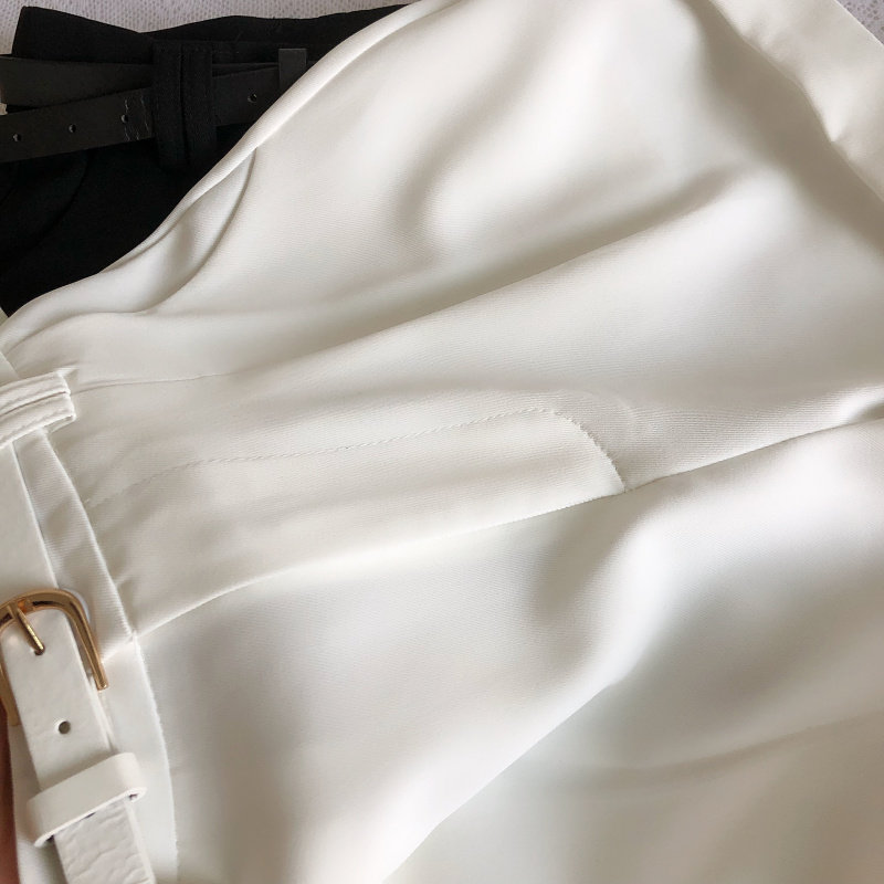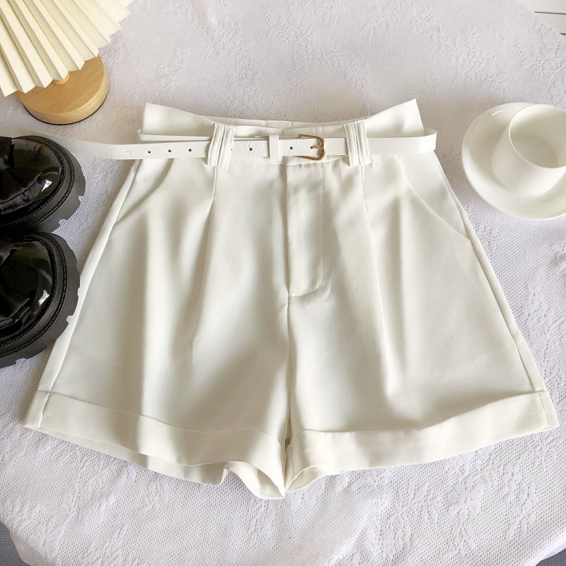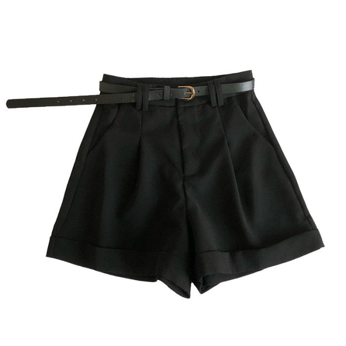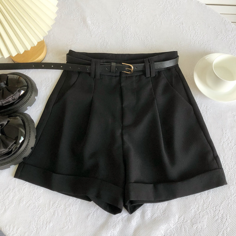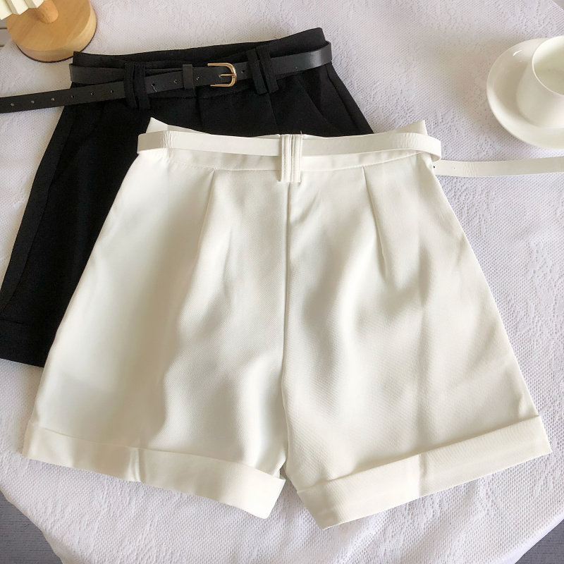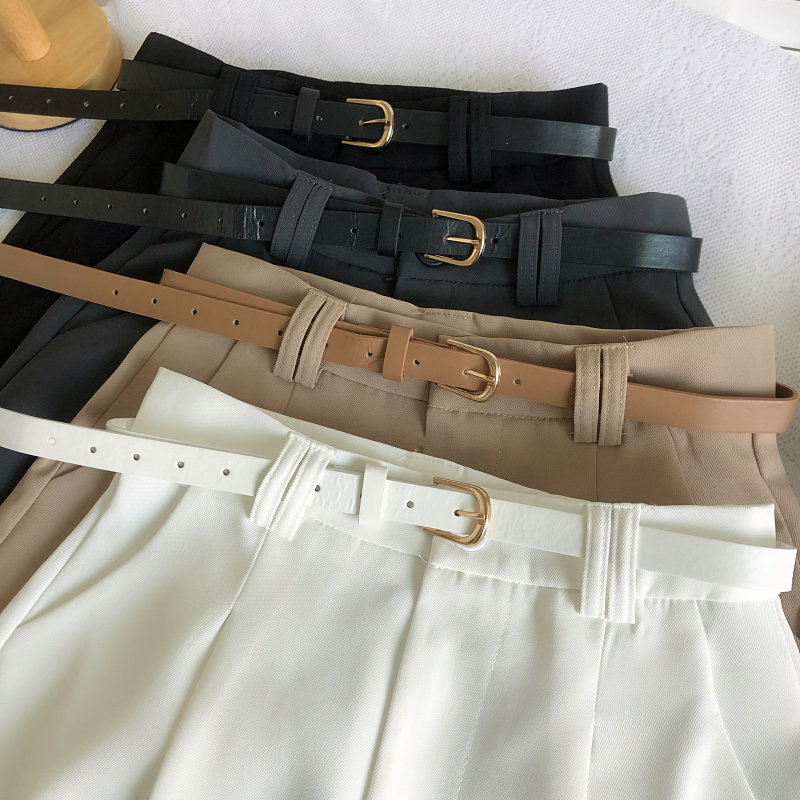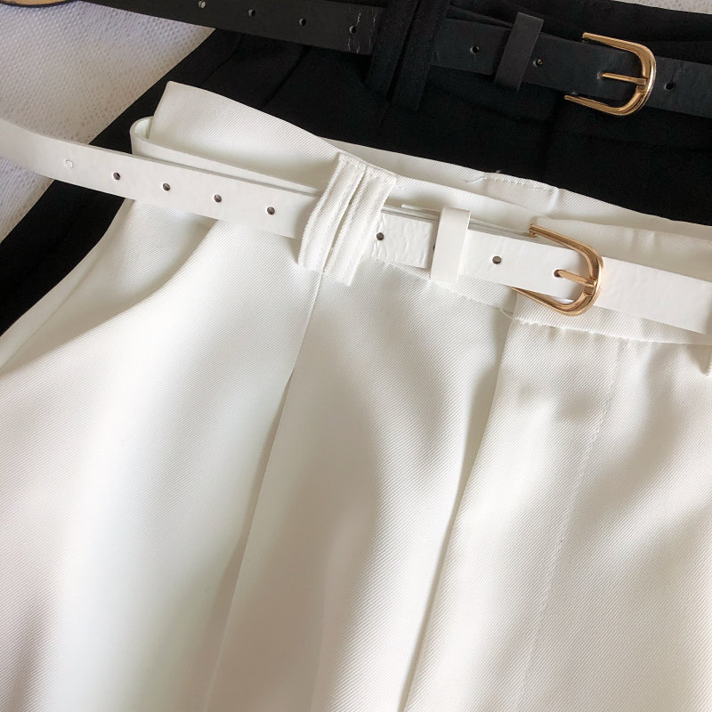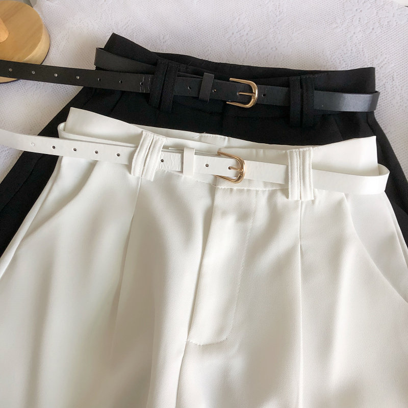 春夏韓版新款簡約百搭高腰顯瘦濶腿褲休閒褲a字褲短褲女配皮帶