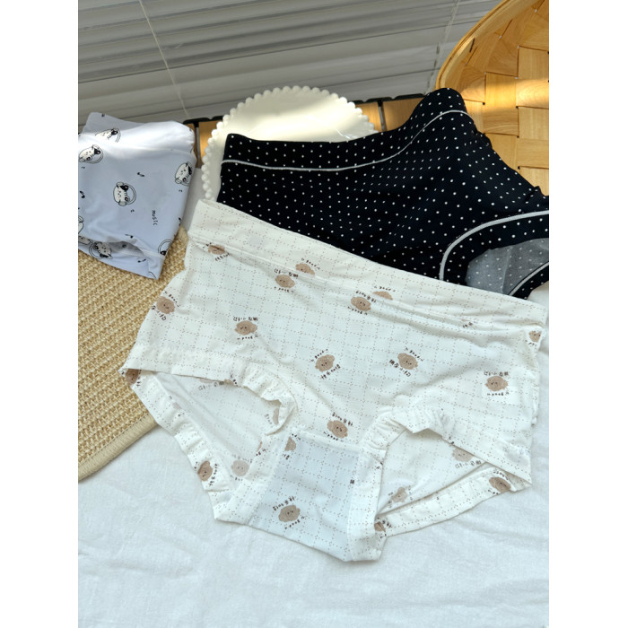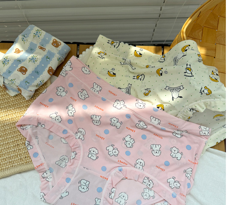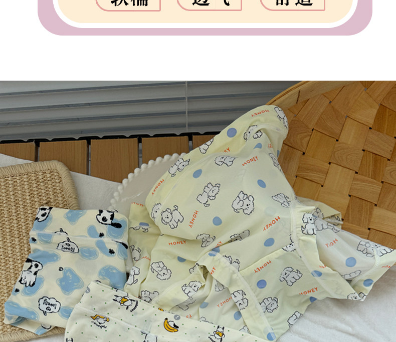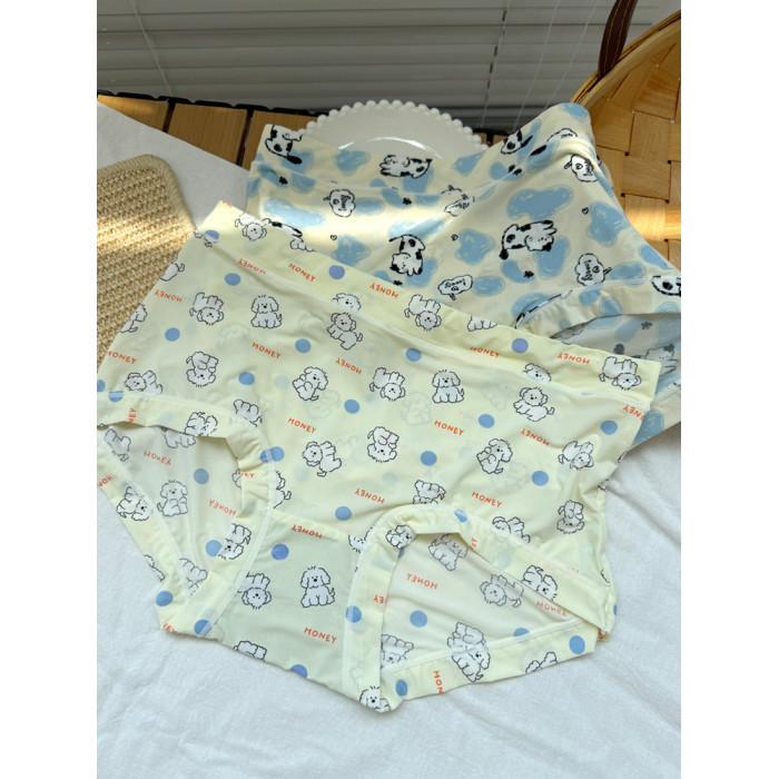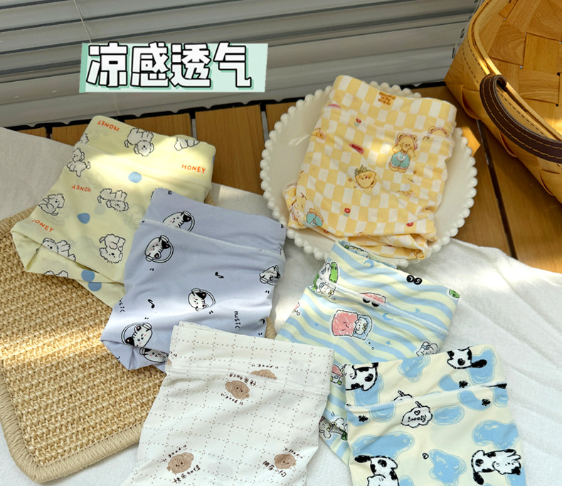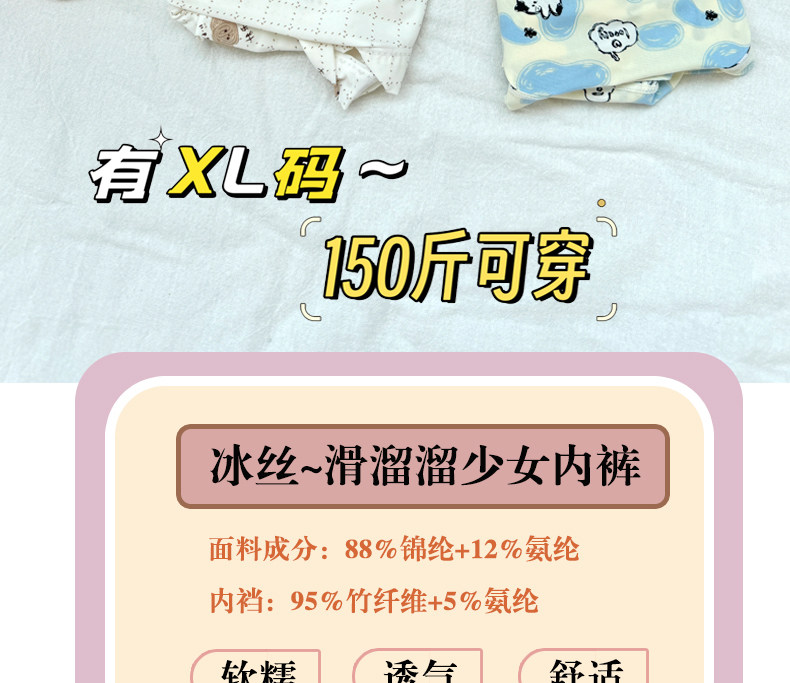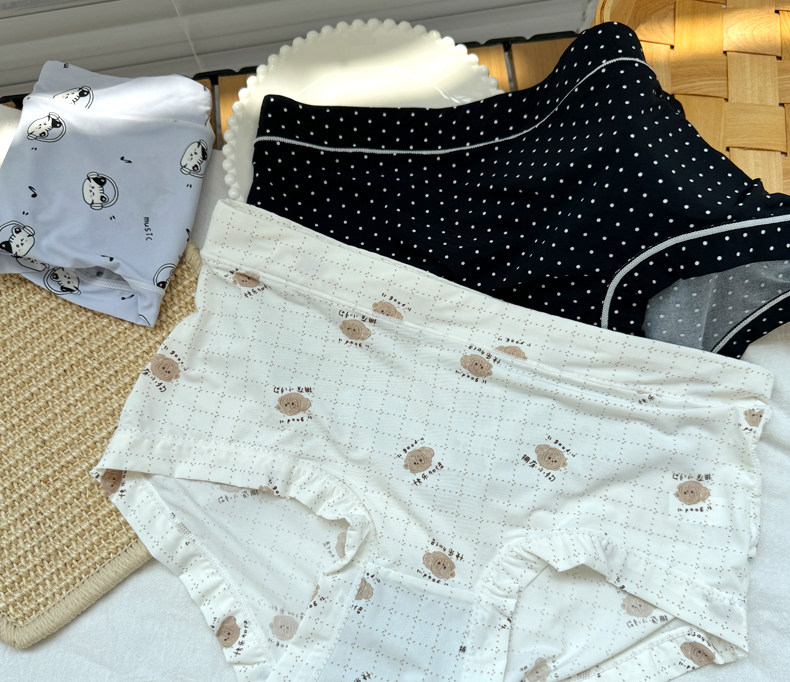 大碼冰絲內褲女牛奶絲滑霤霤中腰日系可愛不夾屁股薄款胖mm三角褲