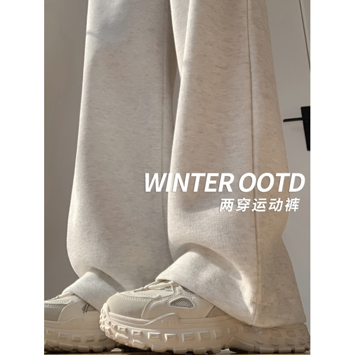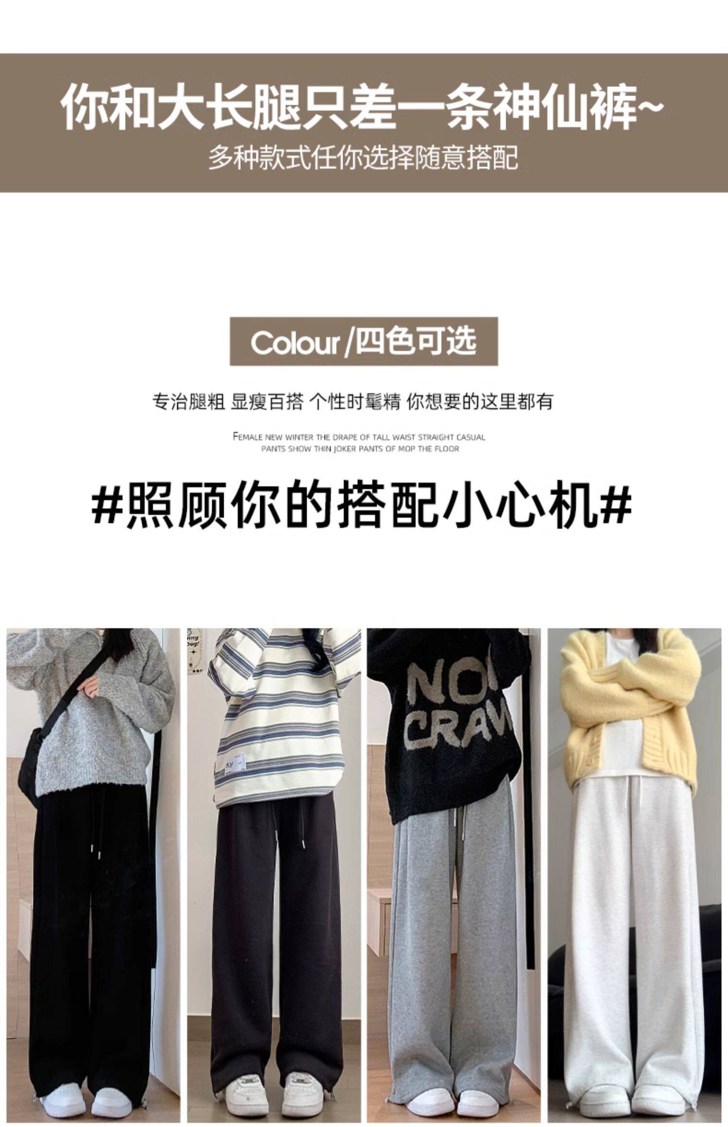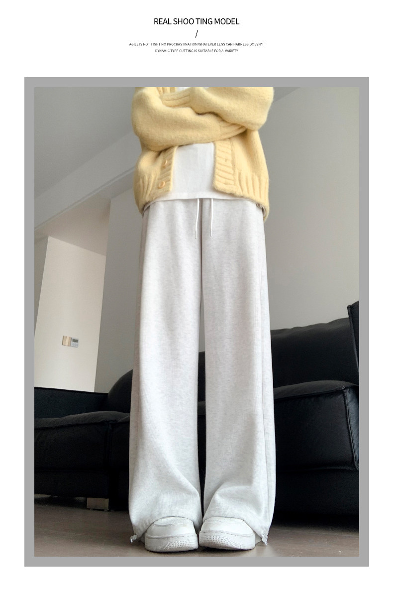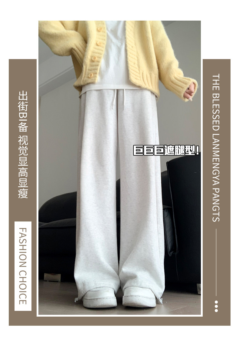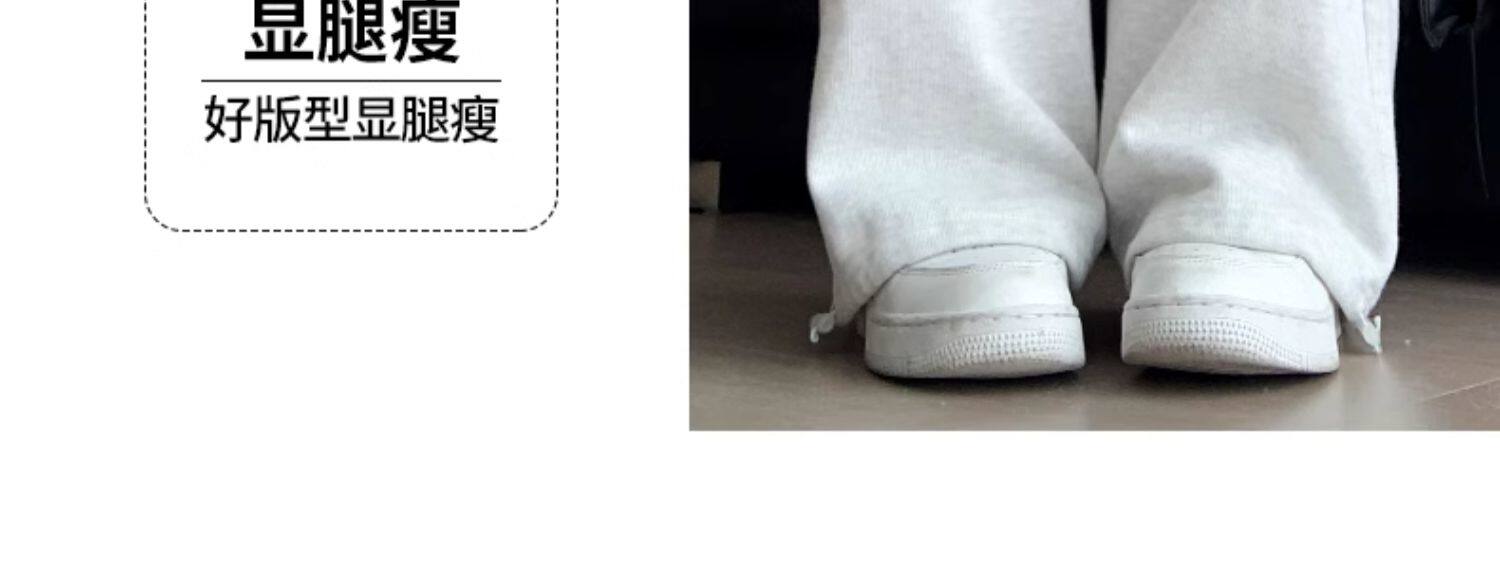 灰色運動褲女秋季2026新款高腰垂感加絨濶腿褲小個子休閒寬鬆衛褲