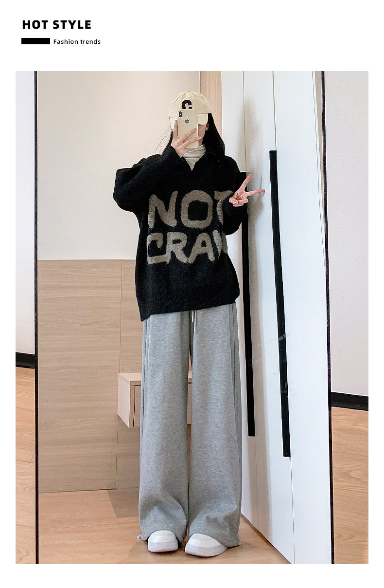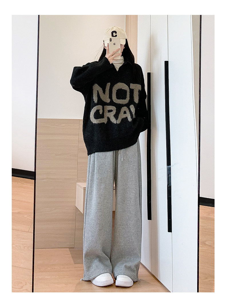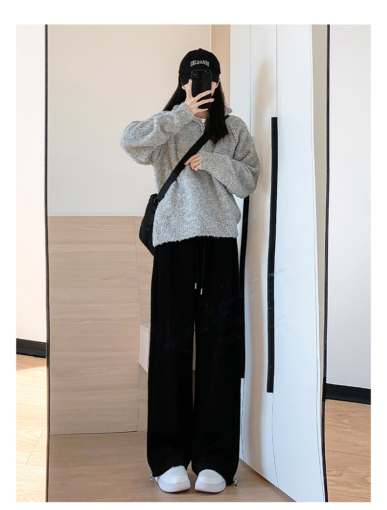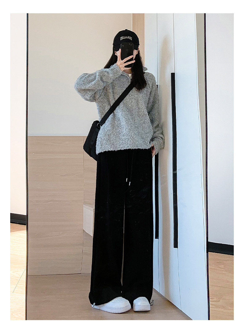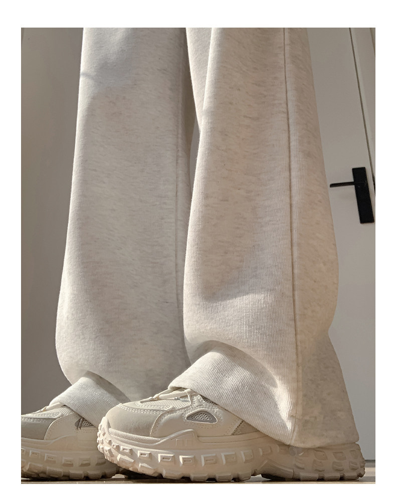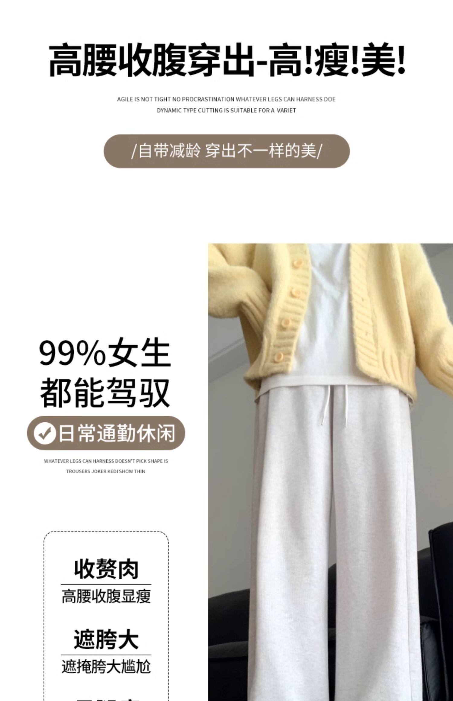 灰色運動褲女秋季2026新款高腰垂感加絨濶腿褲小個子休閒寬鬆衛褲