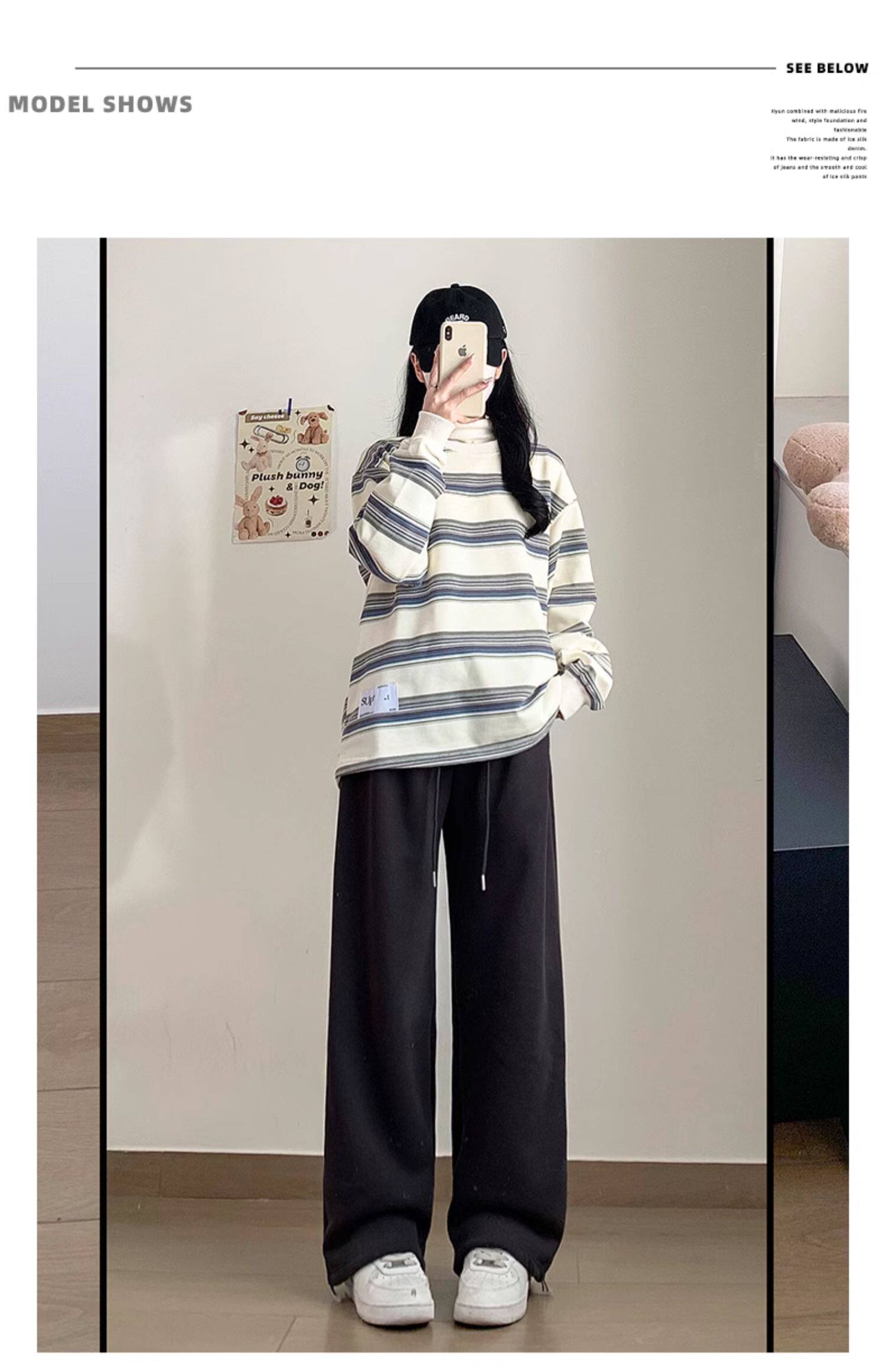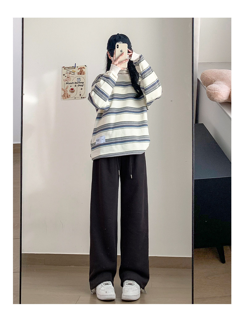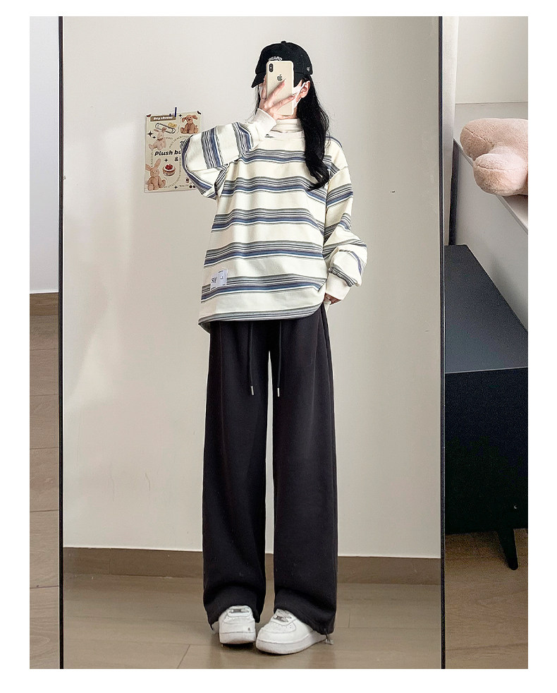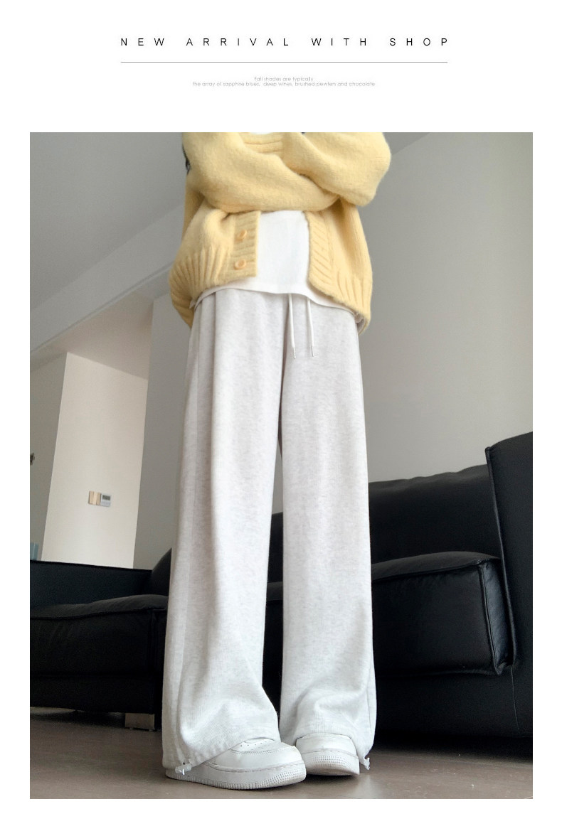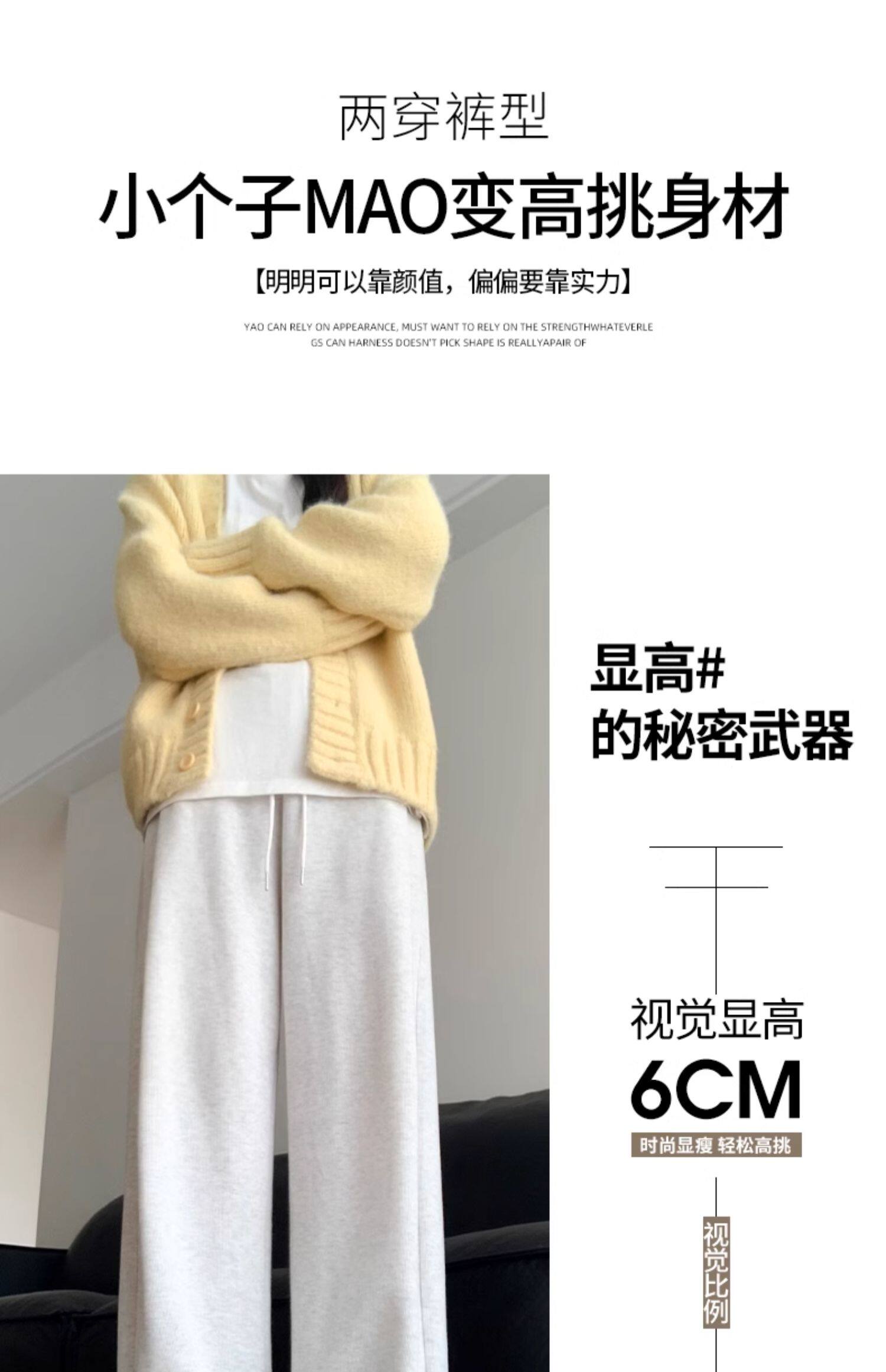 灰色運動褲女秋季2026新款高腰垂感加絨濶腿褲小個子休閒寬鬆衛褲