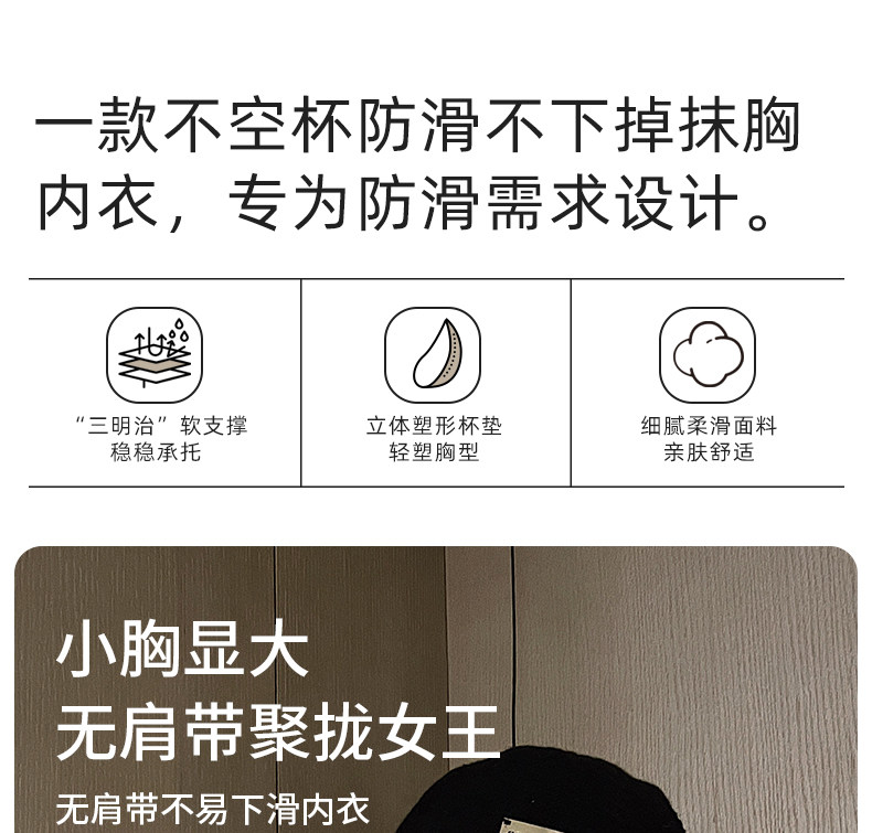 無肩帶內衣女聚攏小胸顯大防滑無痕軟支撐防下垂抹胸隱形裹胸文胸
